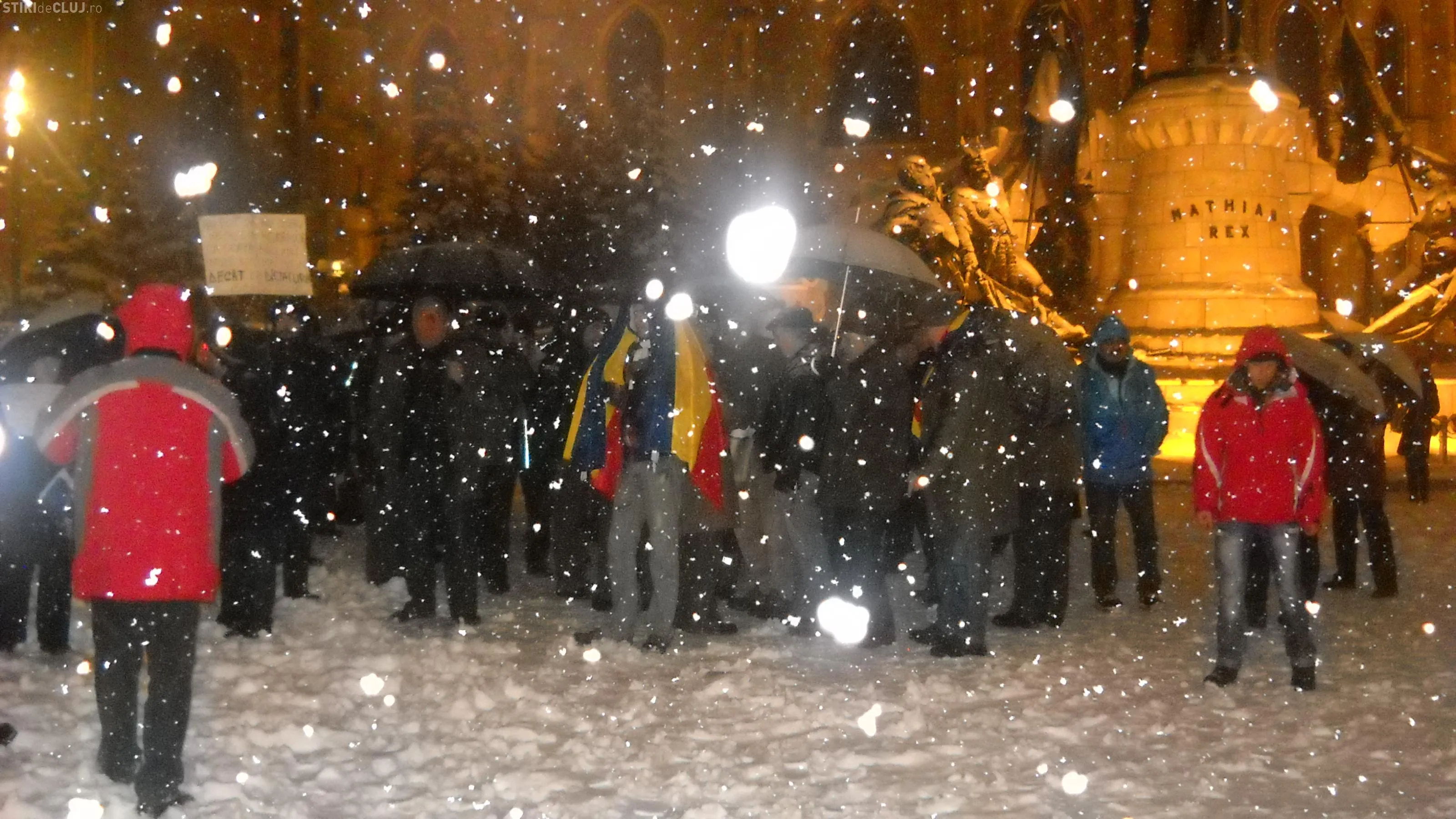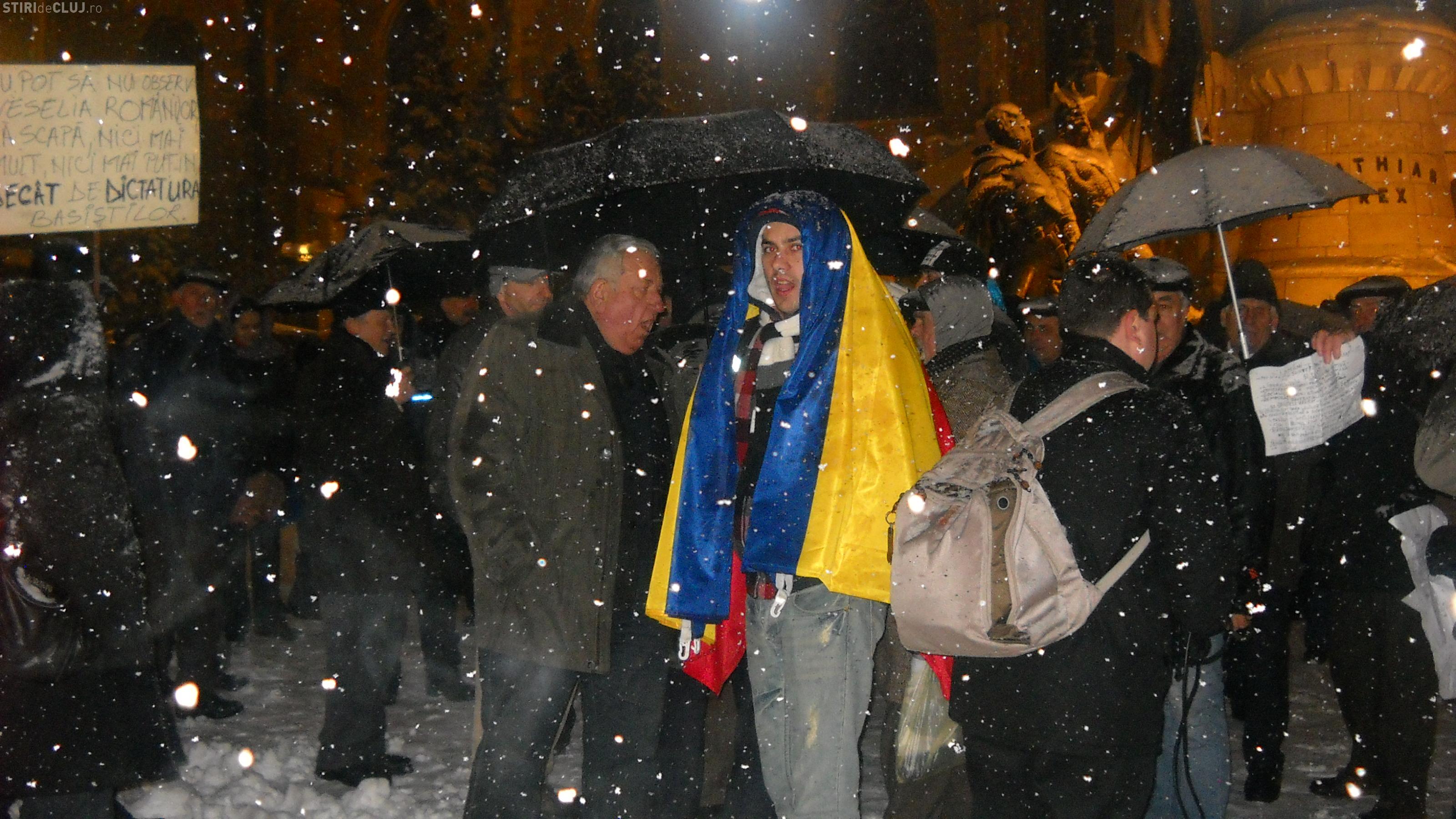 Clujenii au inceput sa se adune in Piata Unirii din centrul orasului pentru a protesta, insa acestia sunt mai putini decat in alte seri.