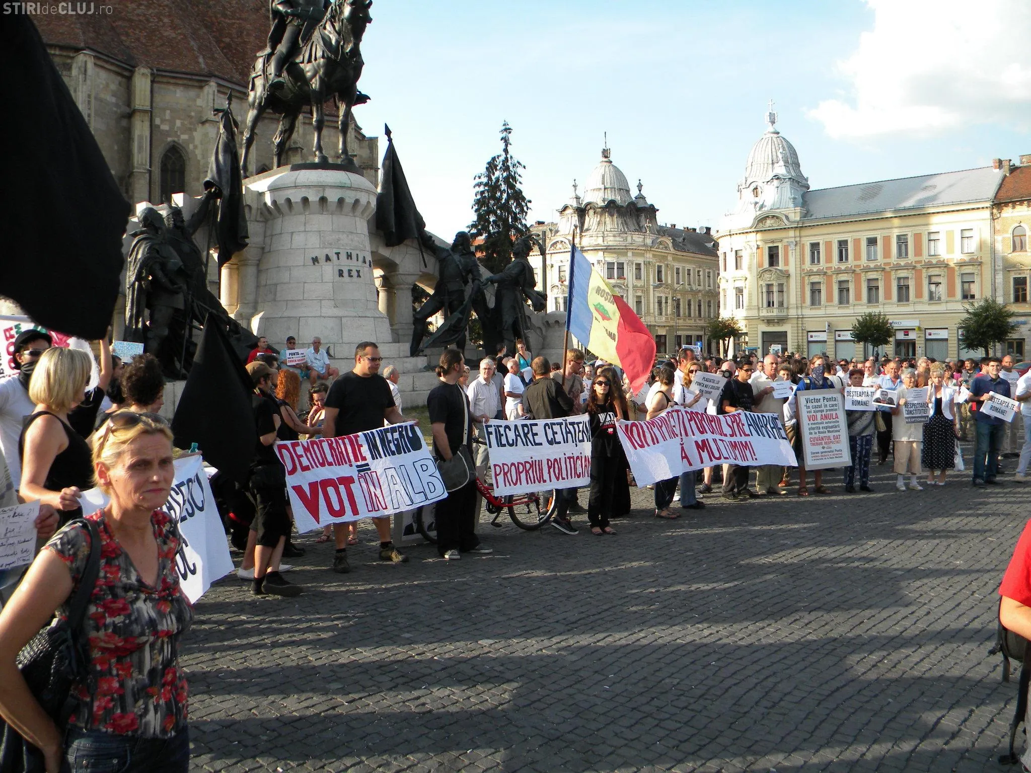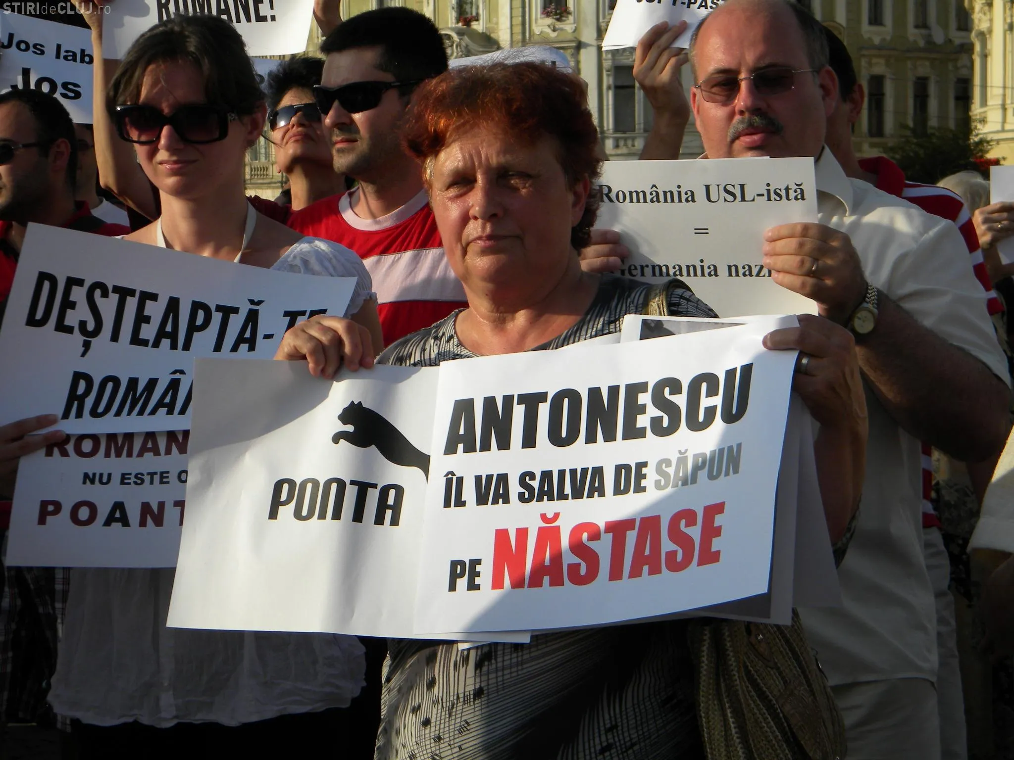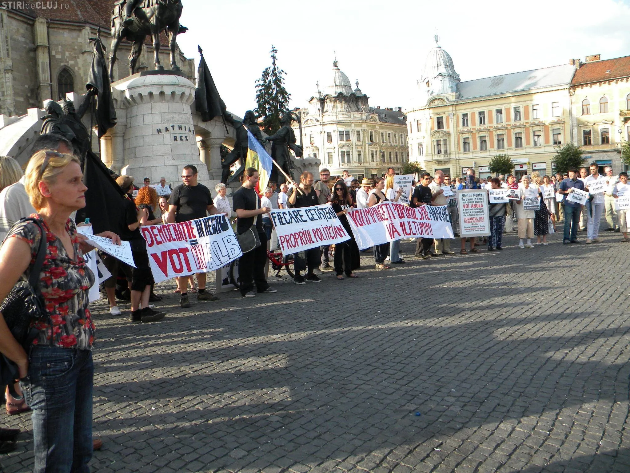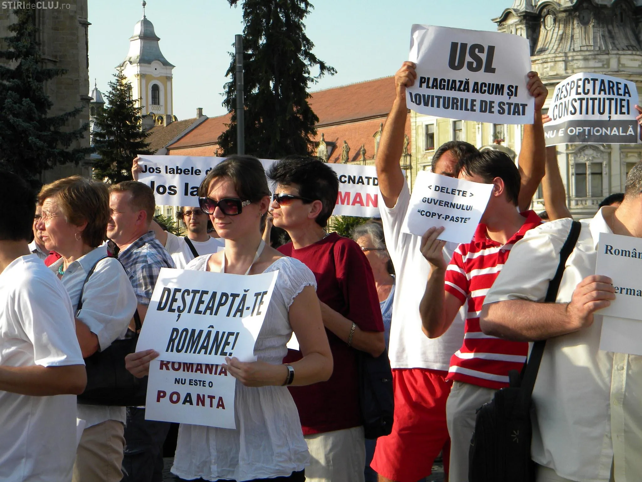 Mai mulţi clujeni au ieşit joi, de la ora 19:00 în Piaţa Unirii din Cluj-Napoca unde au protestat împotriva USL şi a lui Ponta.