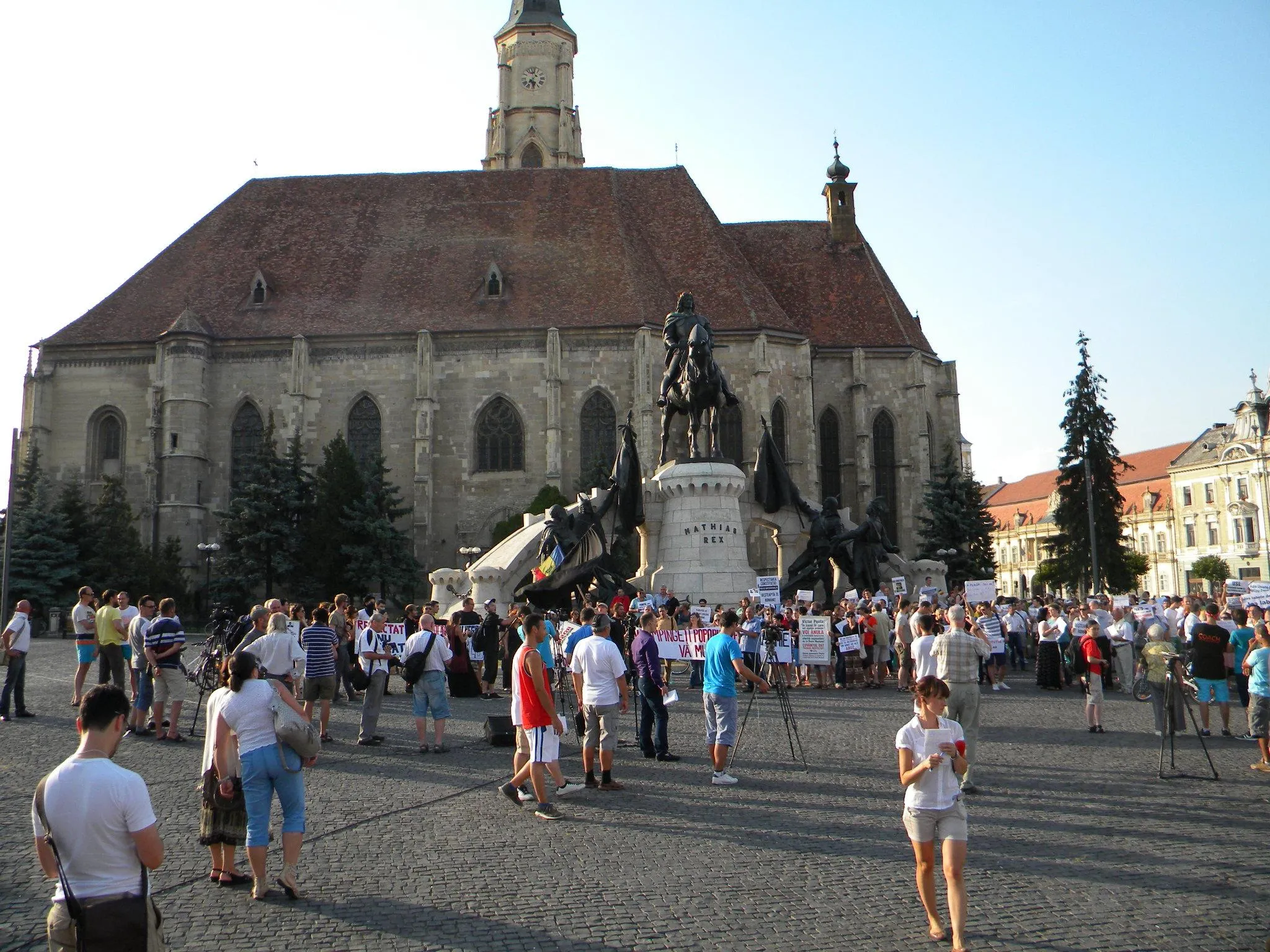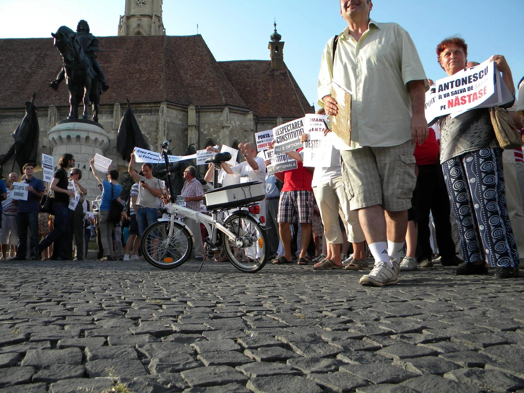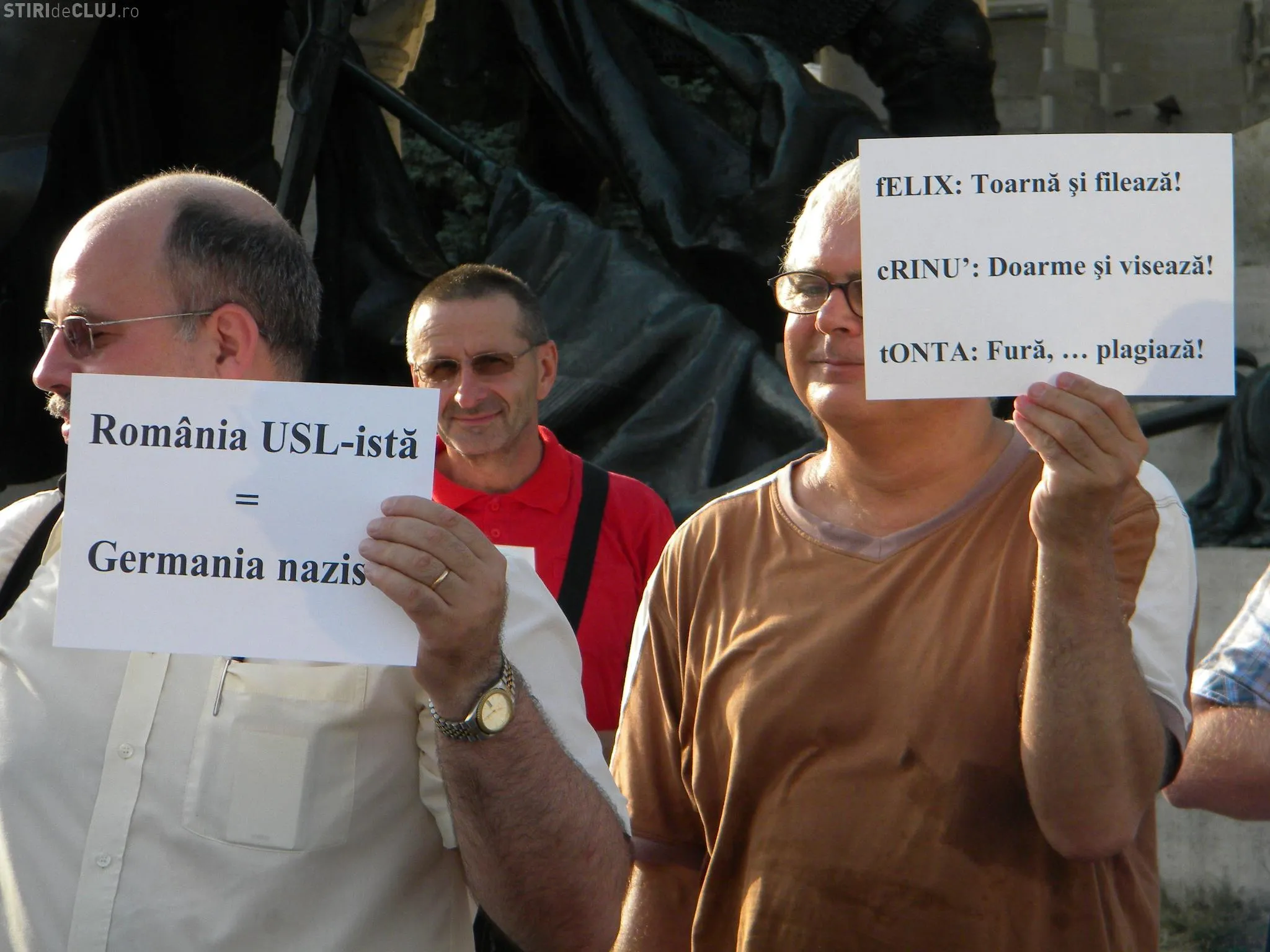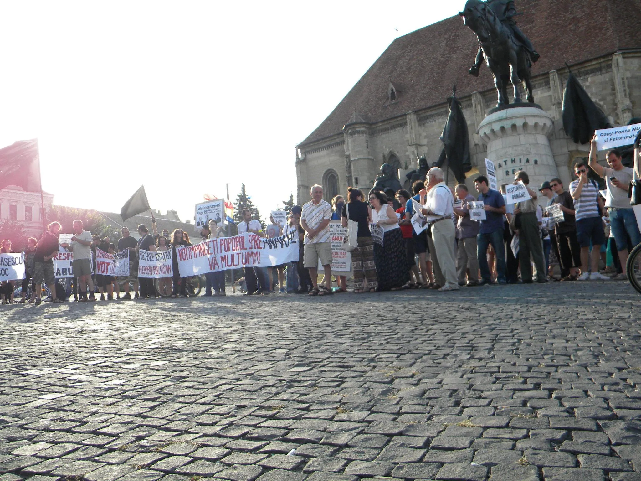 Mai mulţi clujeni au ieşit joi, de la ora 19:00 în Piaţa Unirii din Cluj-Napoca unde au protestat împotriva USL şi a lui Ponta.