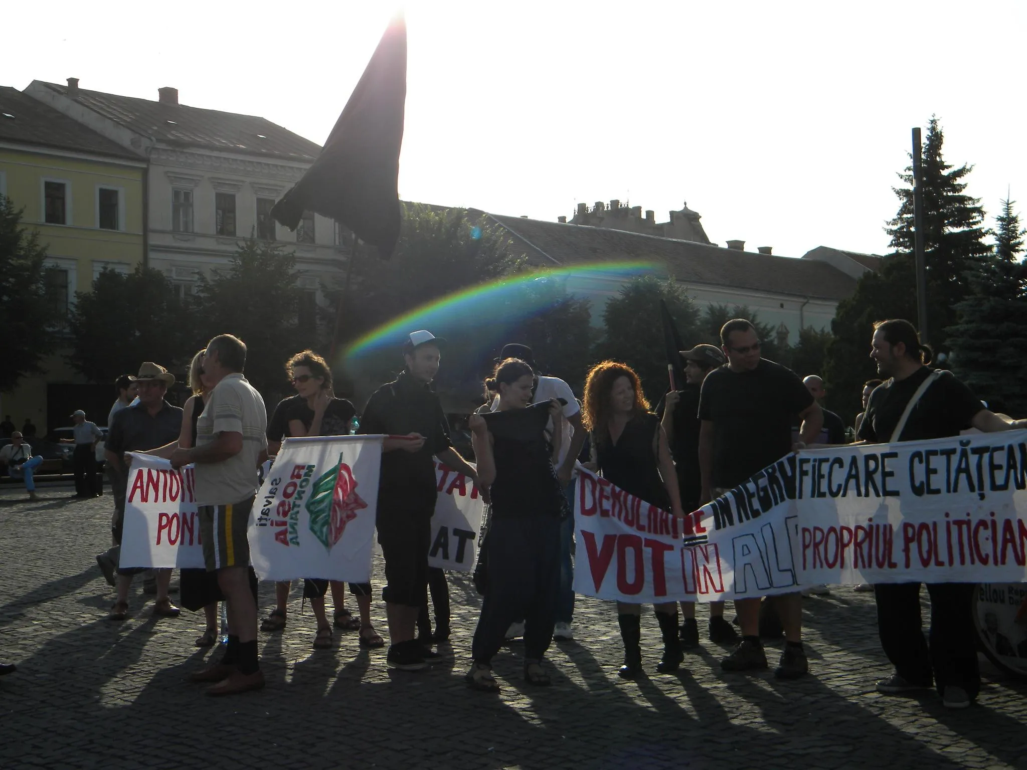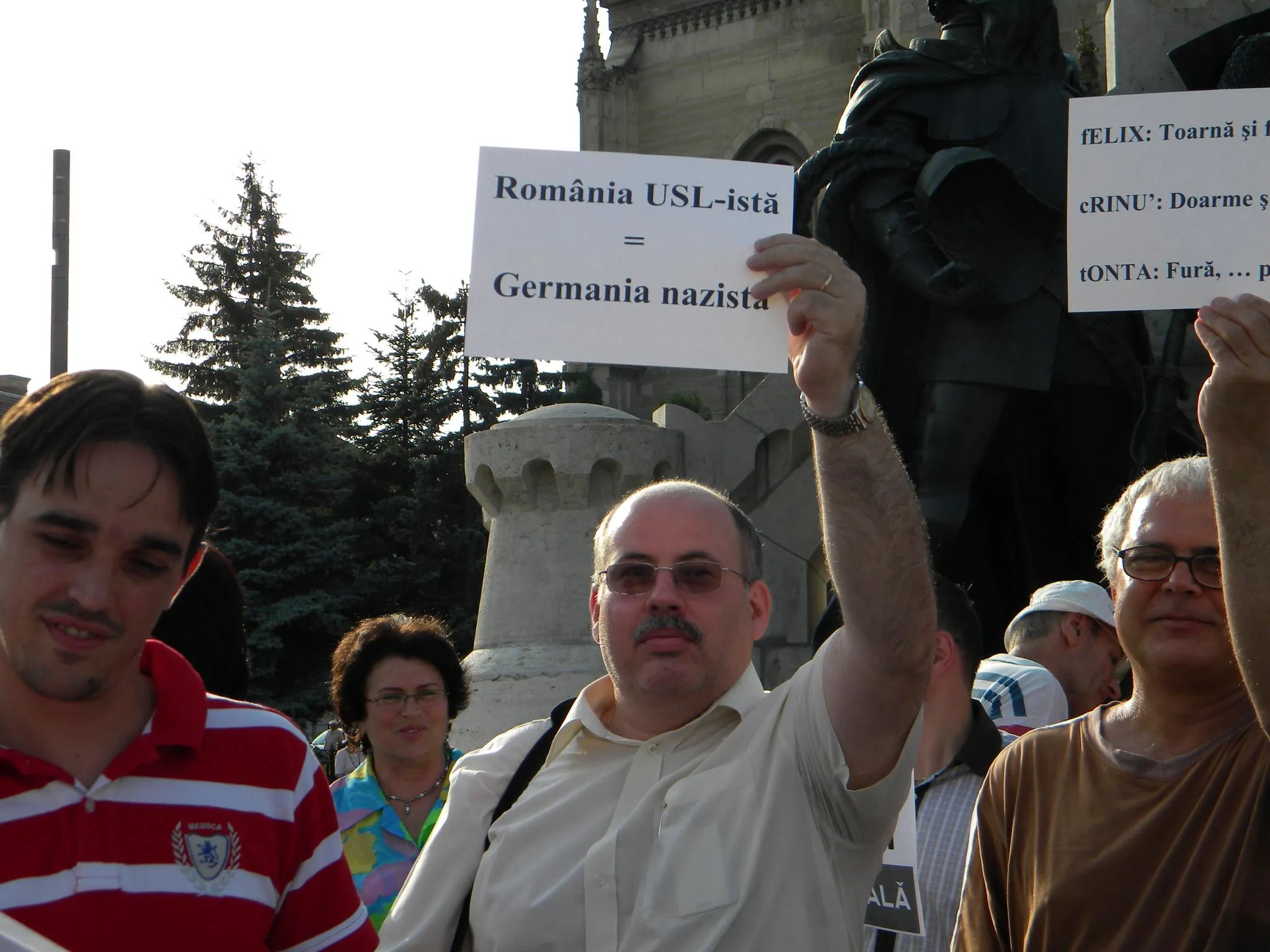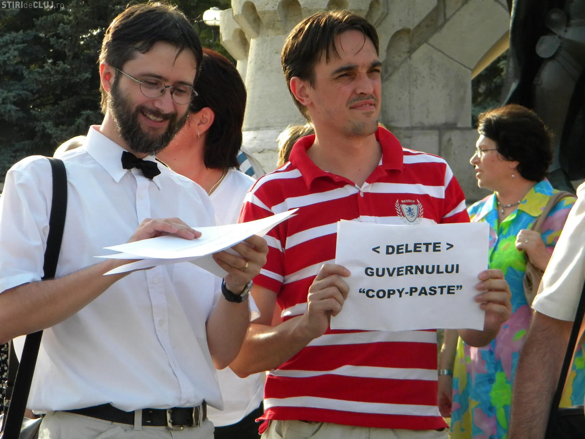 Lozincile au fost numeroase: "Antonescu îl va salva de săpun pe Năstase", "Deşteaptă-te române", "Delete - Guvernului Copy-Paste", "Voi împingeţi poporul spre anarhie. Vă mulţumim!" etc.