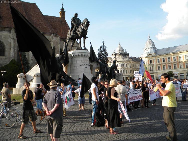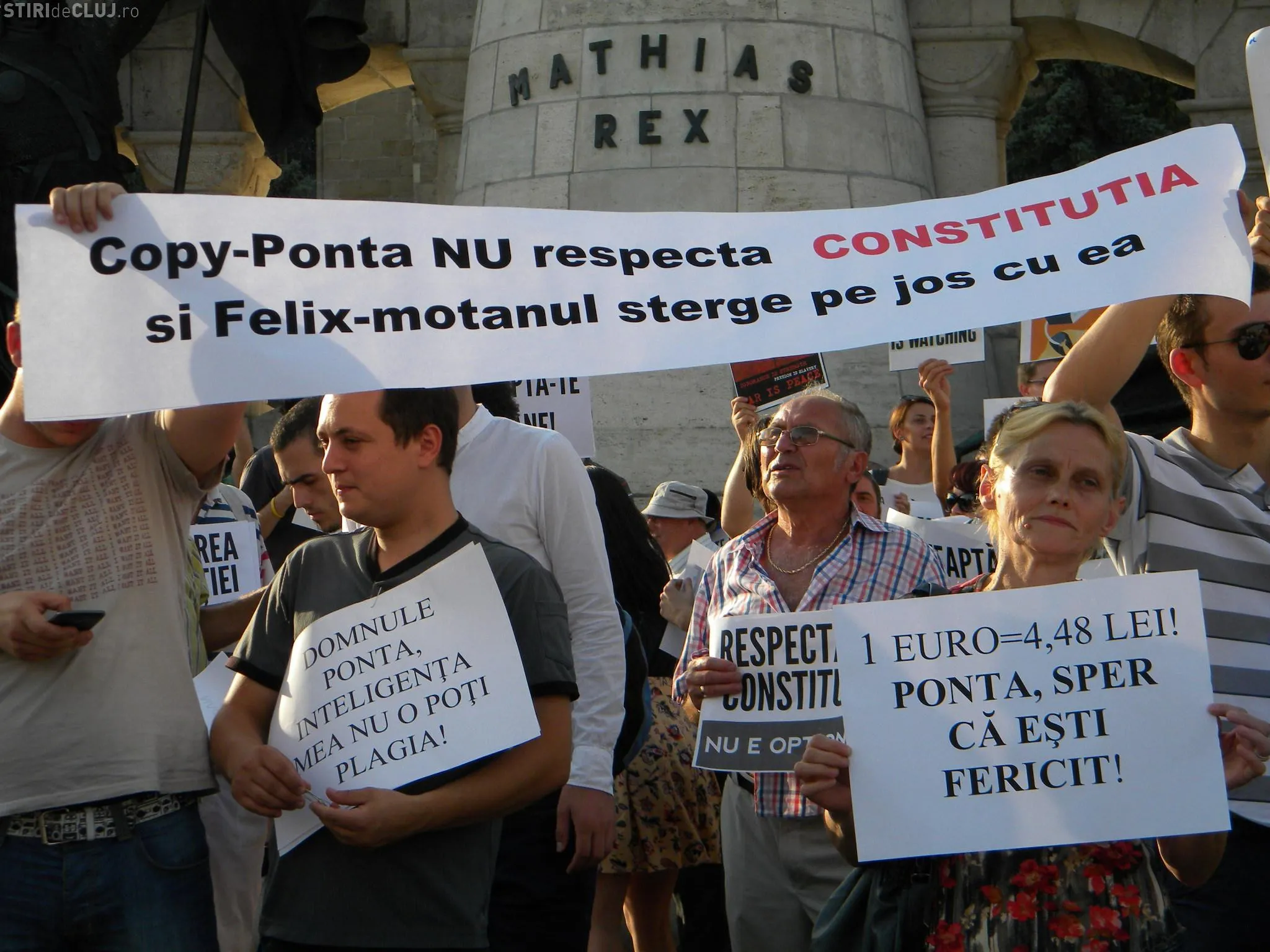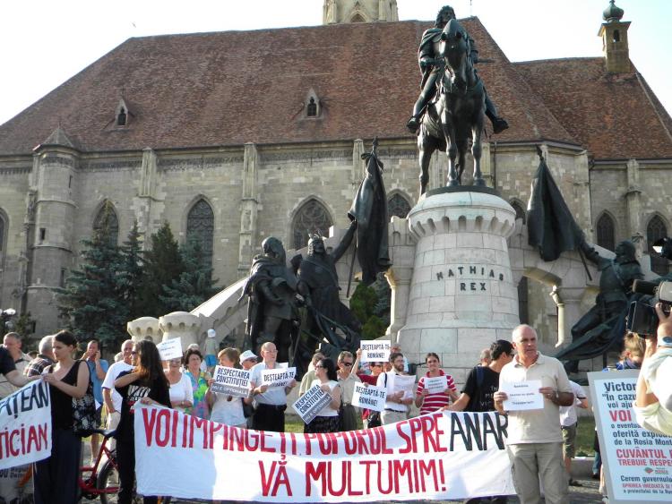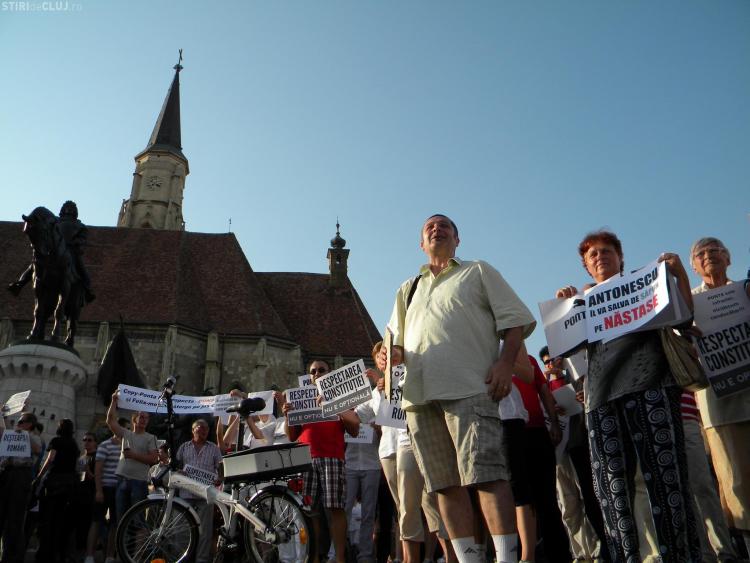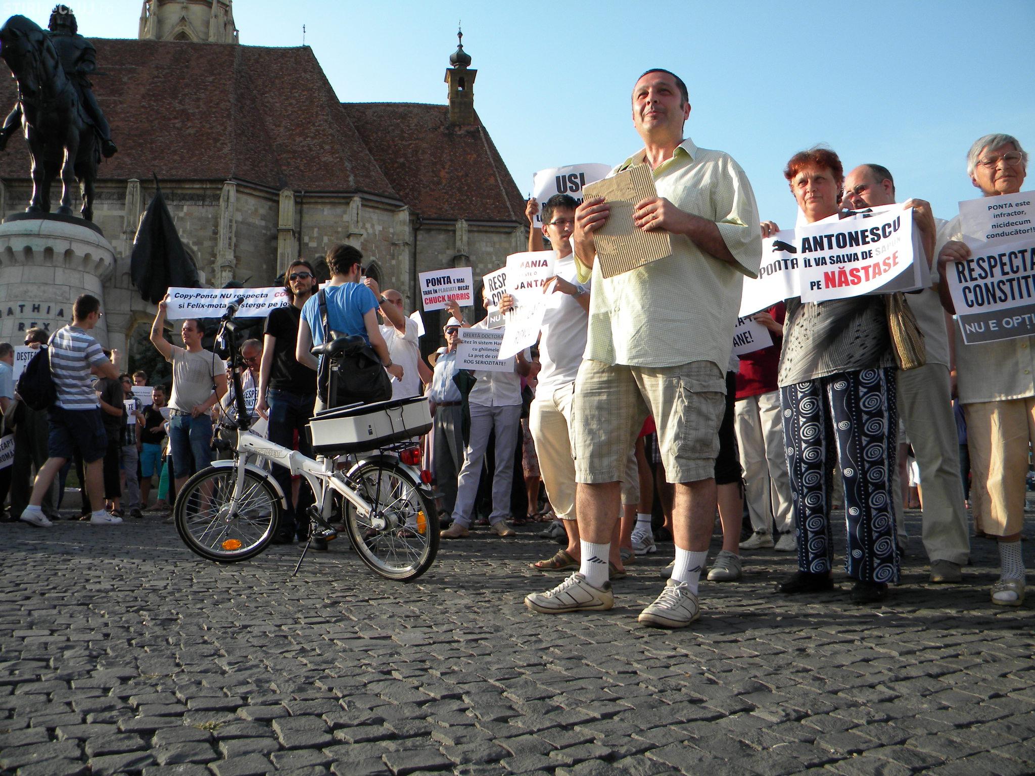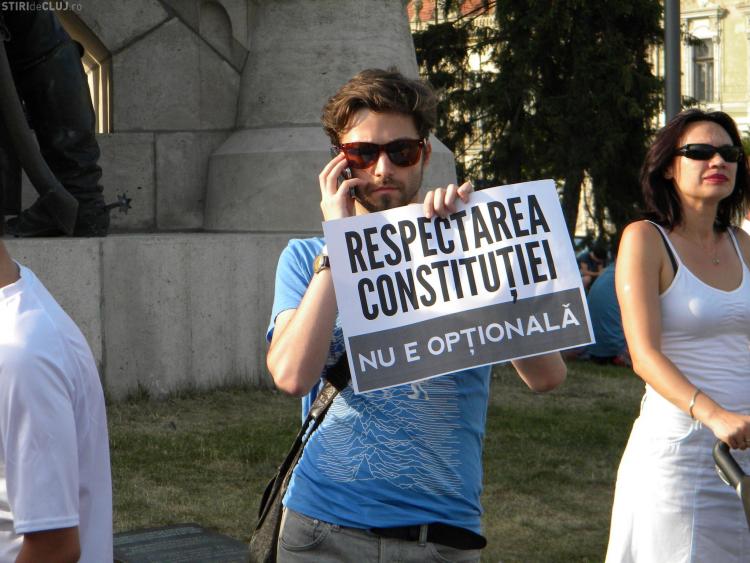Un număr de aproximativ 200 de clujeni au protestat pentru respectarea constituţiei şi împotriva actualului premier Victor Ponta.