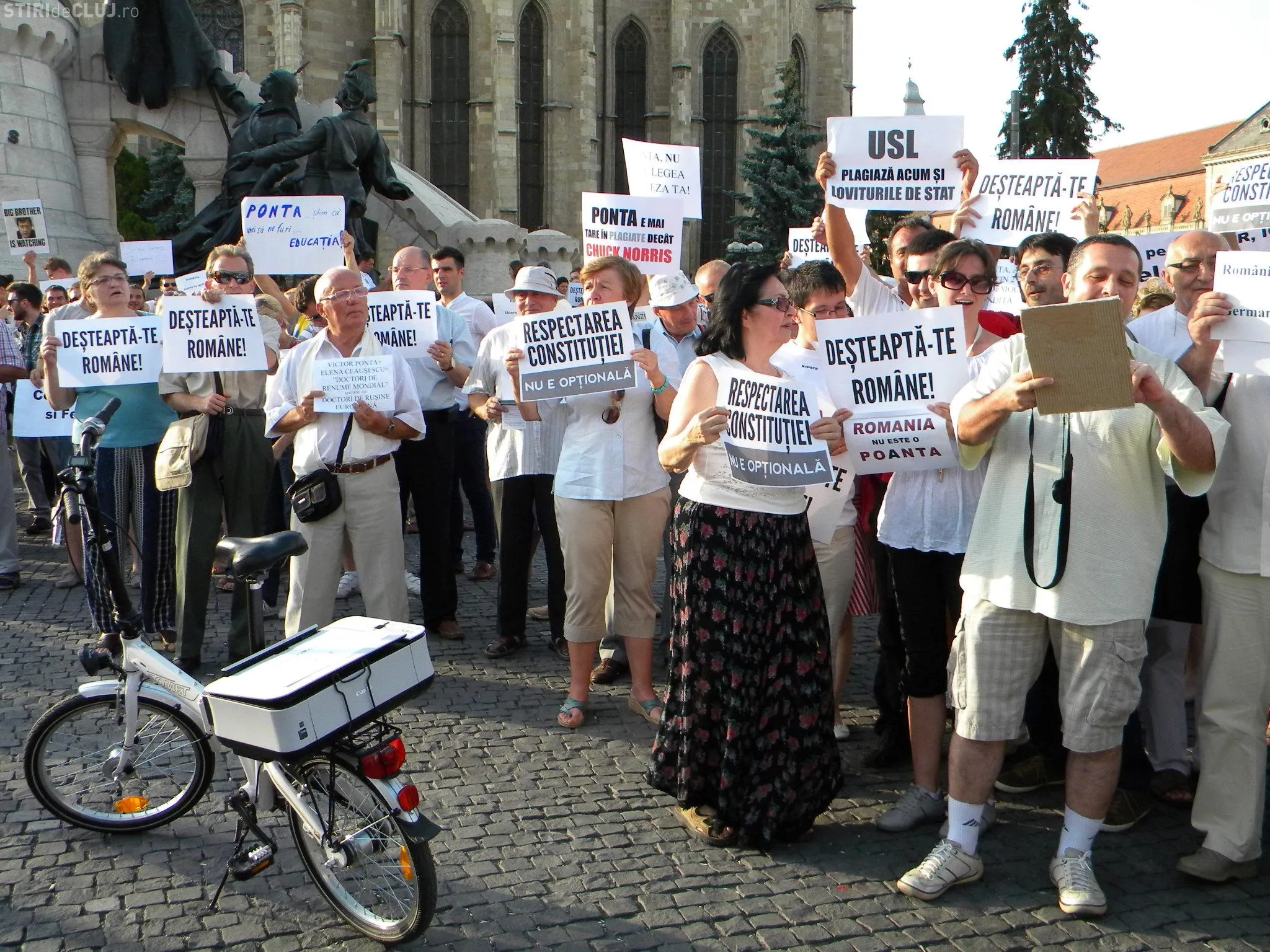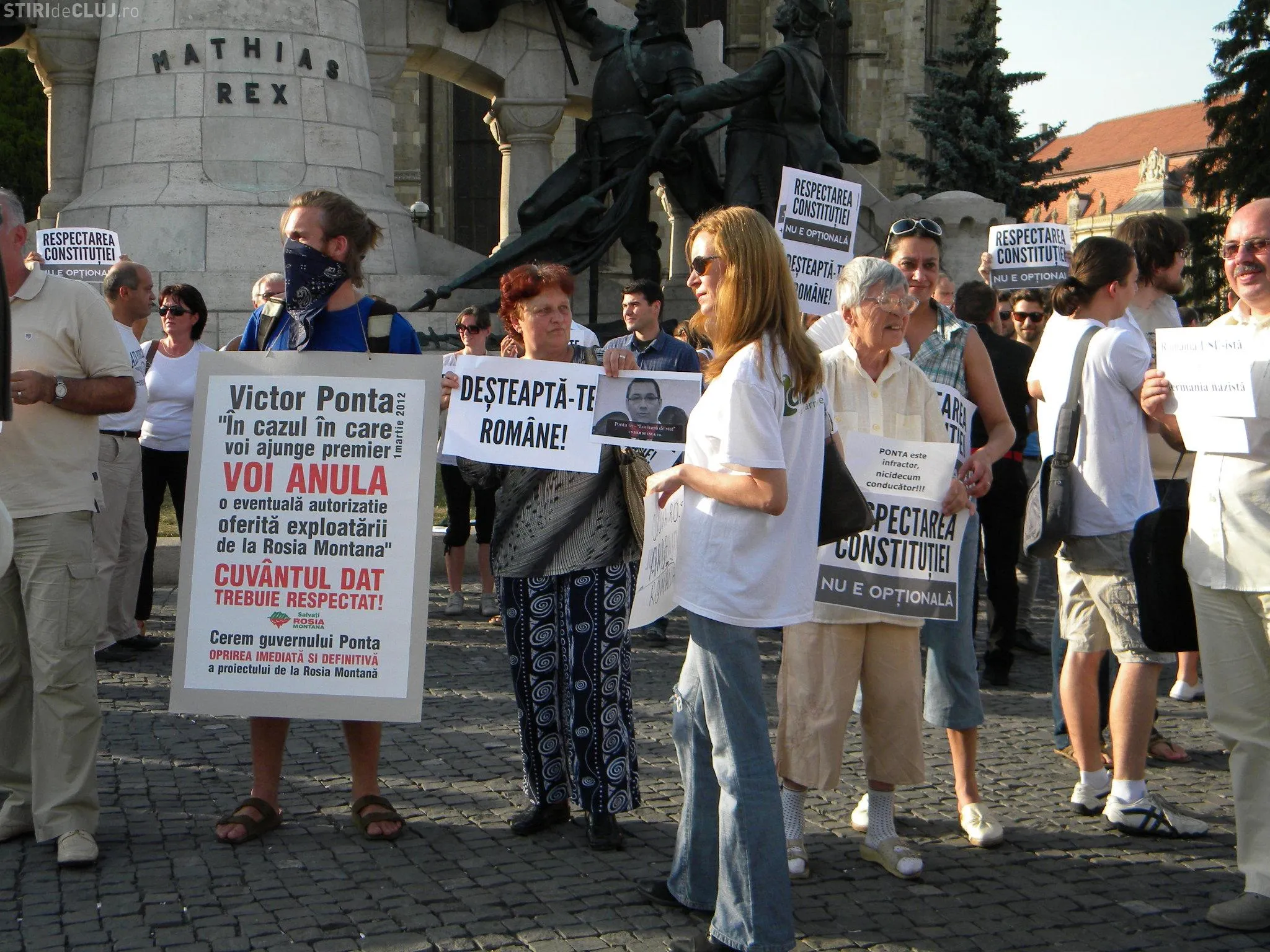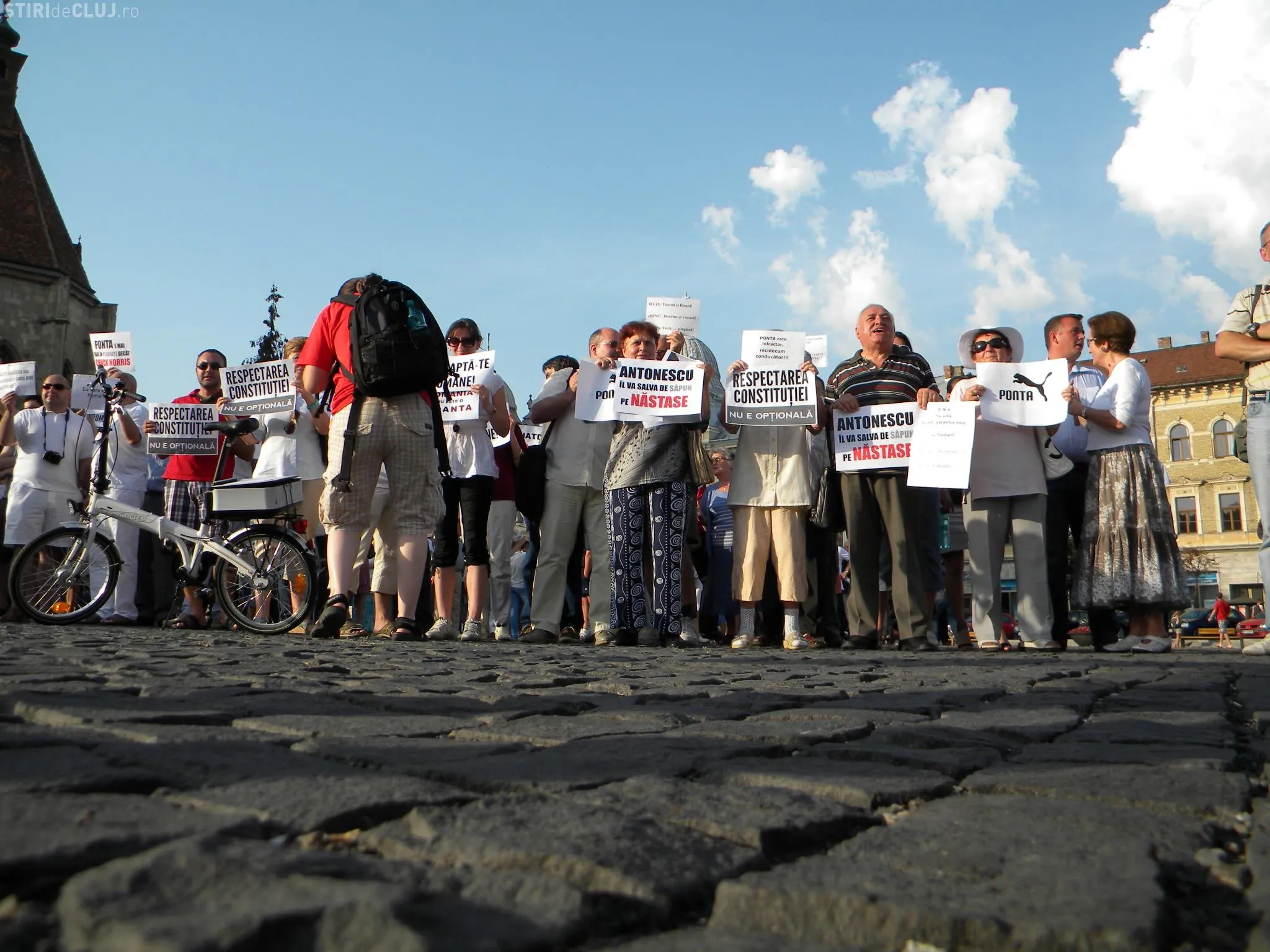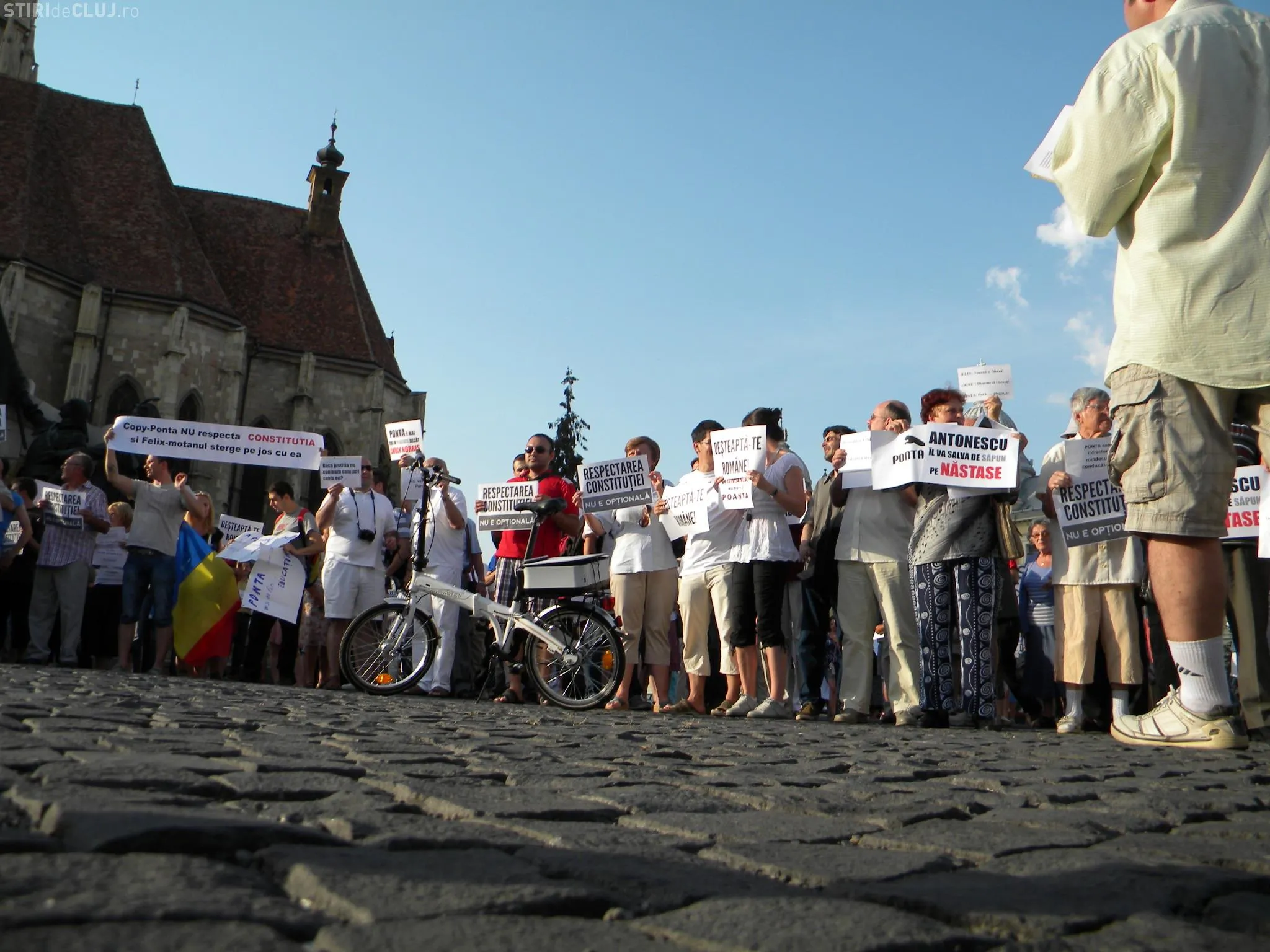Un număr de aproximativ 200 de clujeni au protestat pentru respectarea constituţiei şi împotriva actualului premier Victor Ponta.