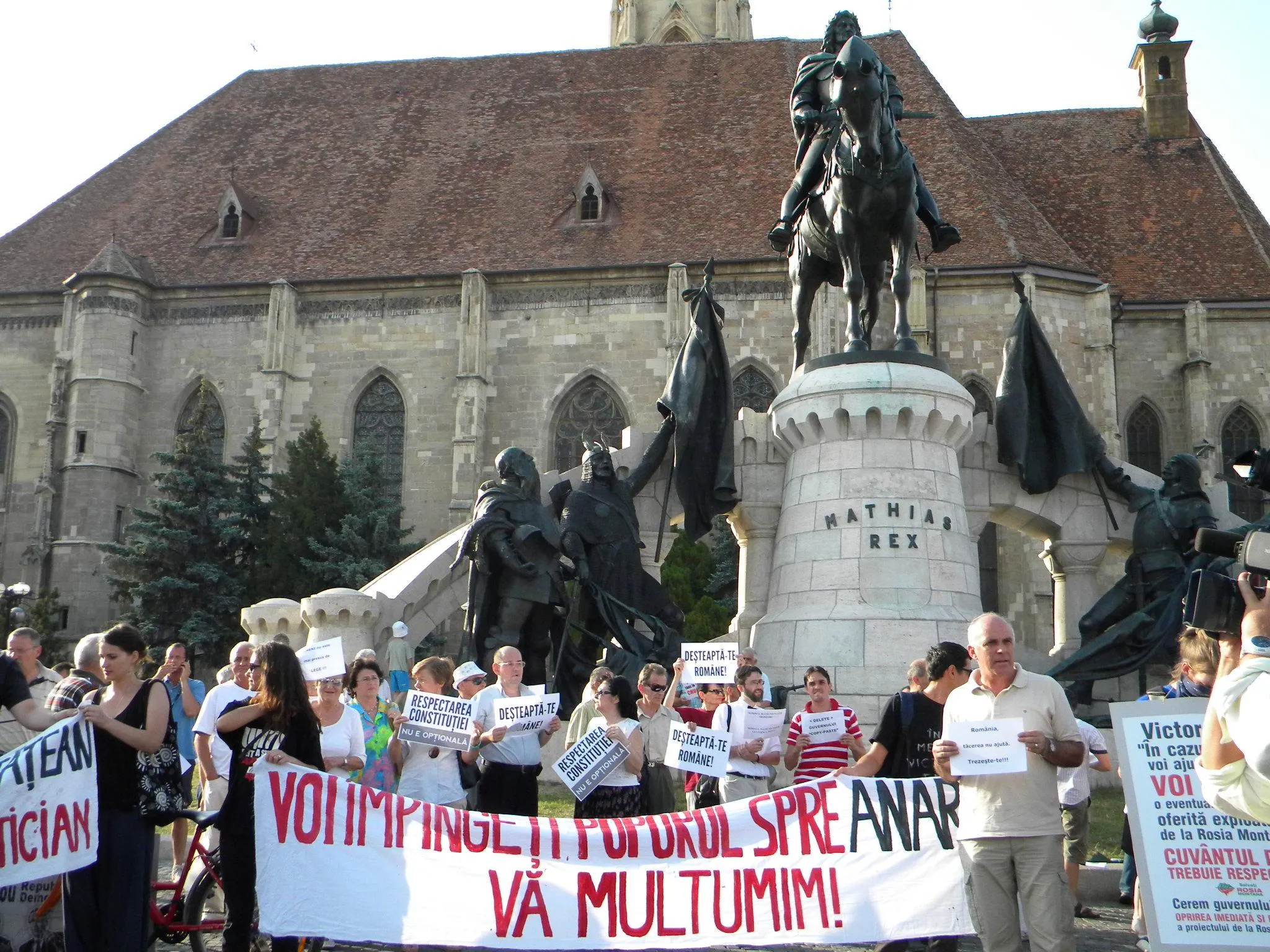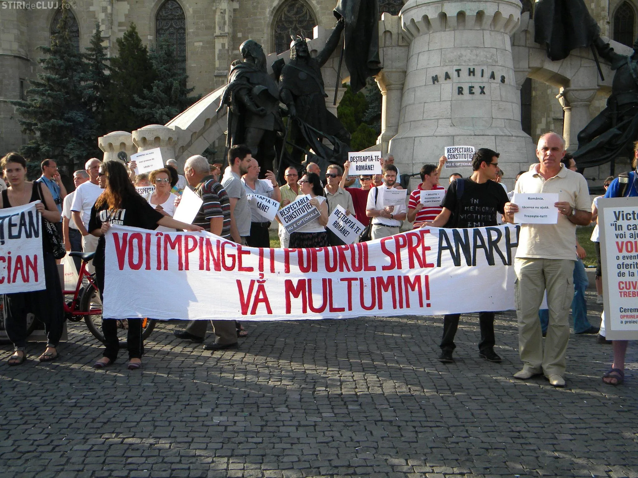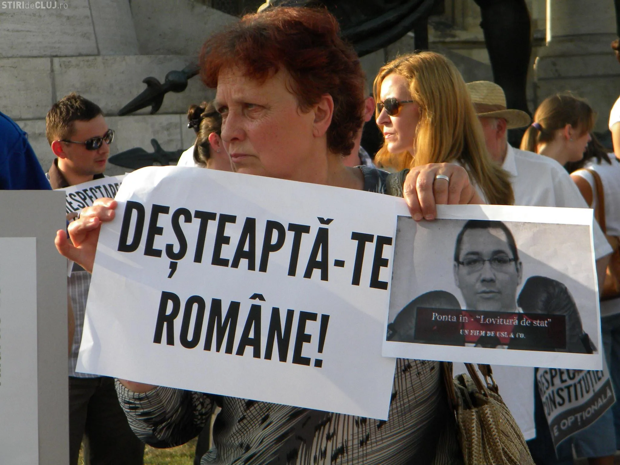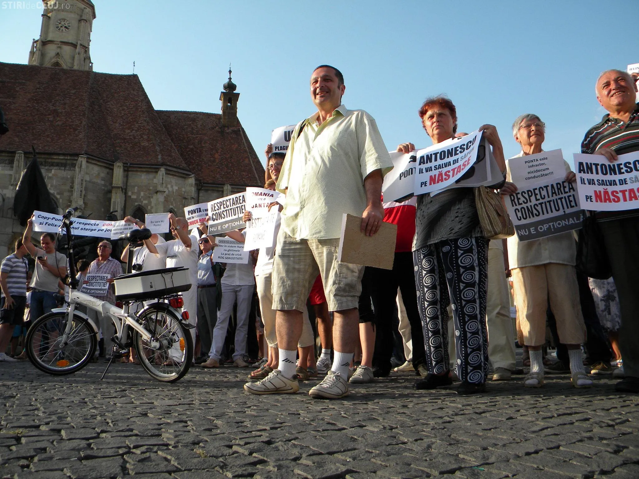 Un număr de aproximativ 200 de clujeni au protestat pentru respectarea constituţiei şi împotriva actualului premier Victor Ponta.