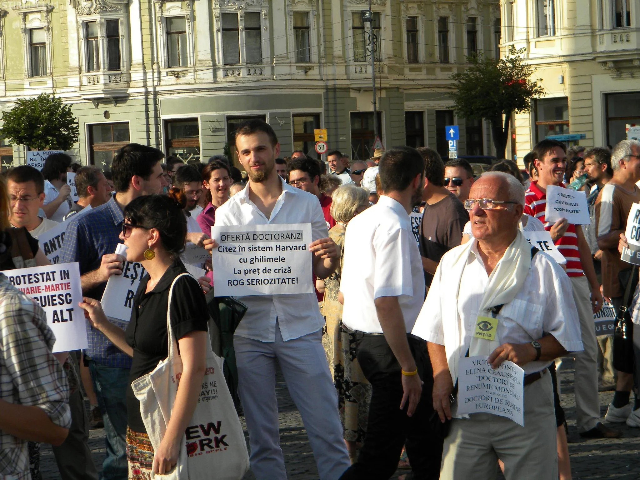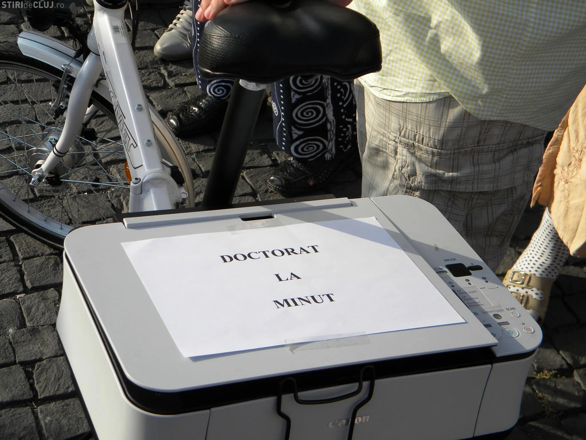 Clujenii s-au demilitat în două tabere. Roşia Montană şi cei veniţi la protestul ANTI-PONTA şi USL. Şi în această seară, clujenii au adus cu ei imprimanta minune, care face "doctorat la minut".