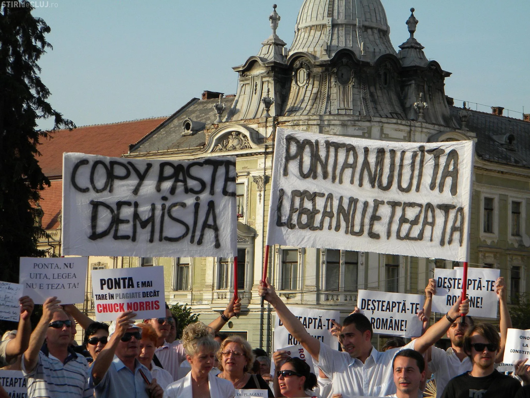 Protestatarii clujeni către Ponta: "Ponta nu uita, legea nu e teza ta" FOTO VIDEO