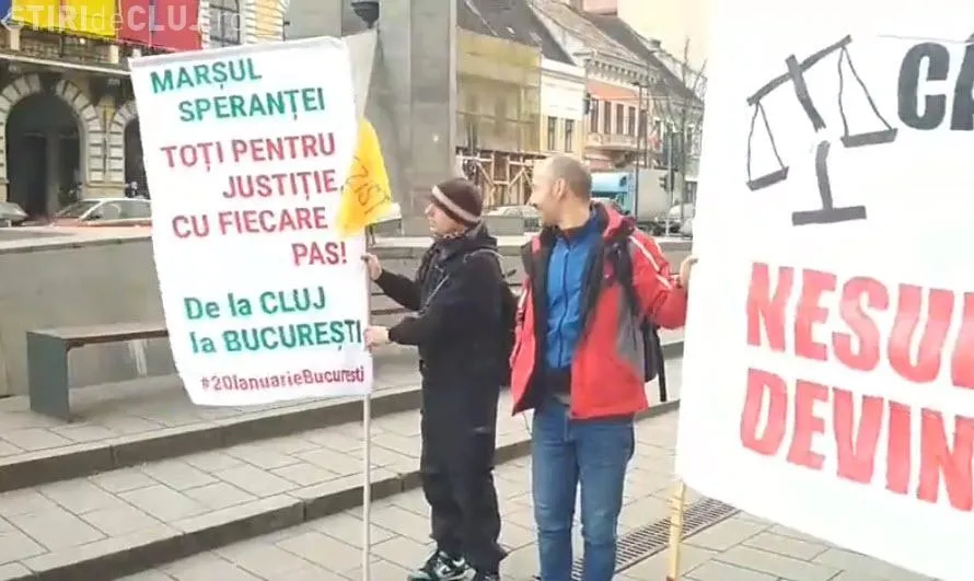 Câțiva dintre protestatarii de la Cluj au pornit într-un marș spre București, unde vor participa în 20 ianuarie la un miting împotriva modificărilor la Legile justiţiei.
