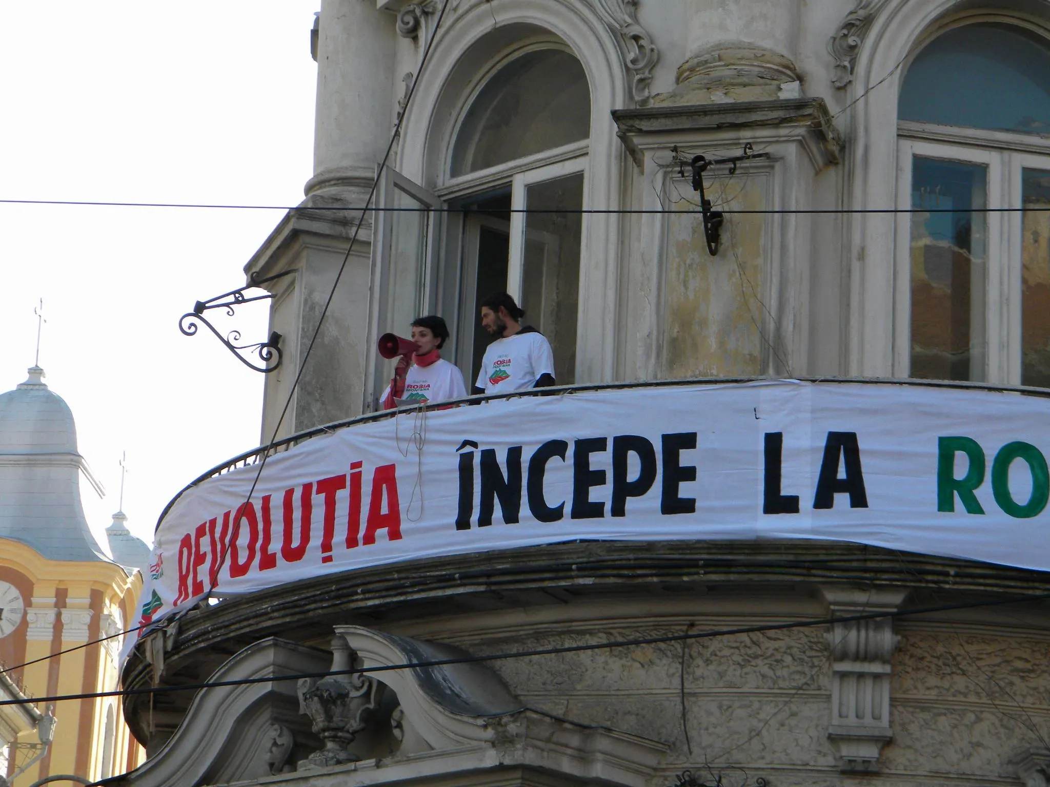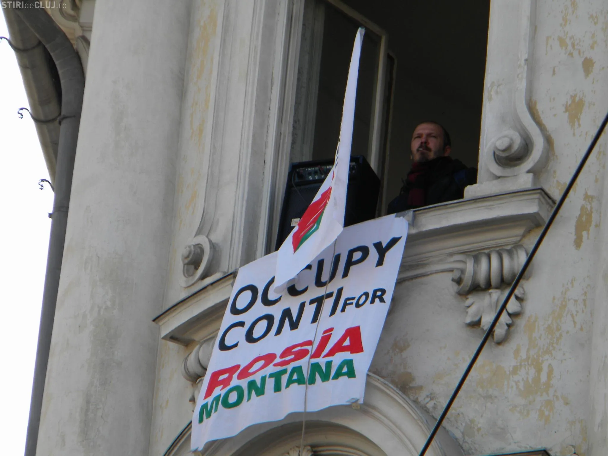 "Aici pe dreapta este un geam, care de luni de zile este spart. Si eu am fost acum cateva saptamani sa vad cum arata cladirea. Imobilul asta este in centrul orasului si este bine vizibil, de aceea a fost ales. A venit Politia si a luat un singur om. A fost fraiera si s-a lasat luata. E dreptul ei cetatenesc sa refuze, dar ea a acceptat sa urce in masina de politie. Colegii mei vor ramane in interior cat de mult. Pot ramane in cladire o saptamana", Istvan Szakats, unul dintre participantii la actiunea ecologista.