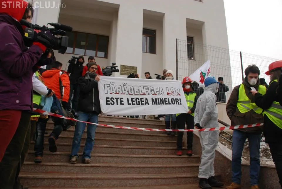 Ecologiștii care protestează față de proiectul de exploatare minieră de la Roșia Montană l-au întâmpinat pe premierul Victor Ponta la Cluj.