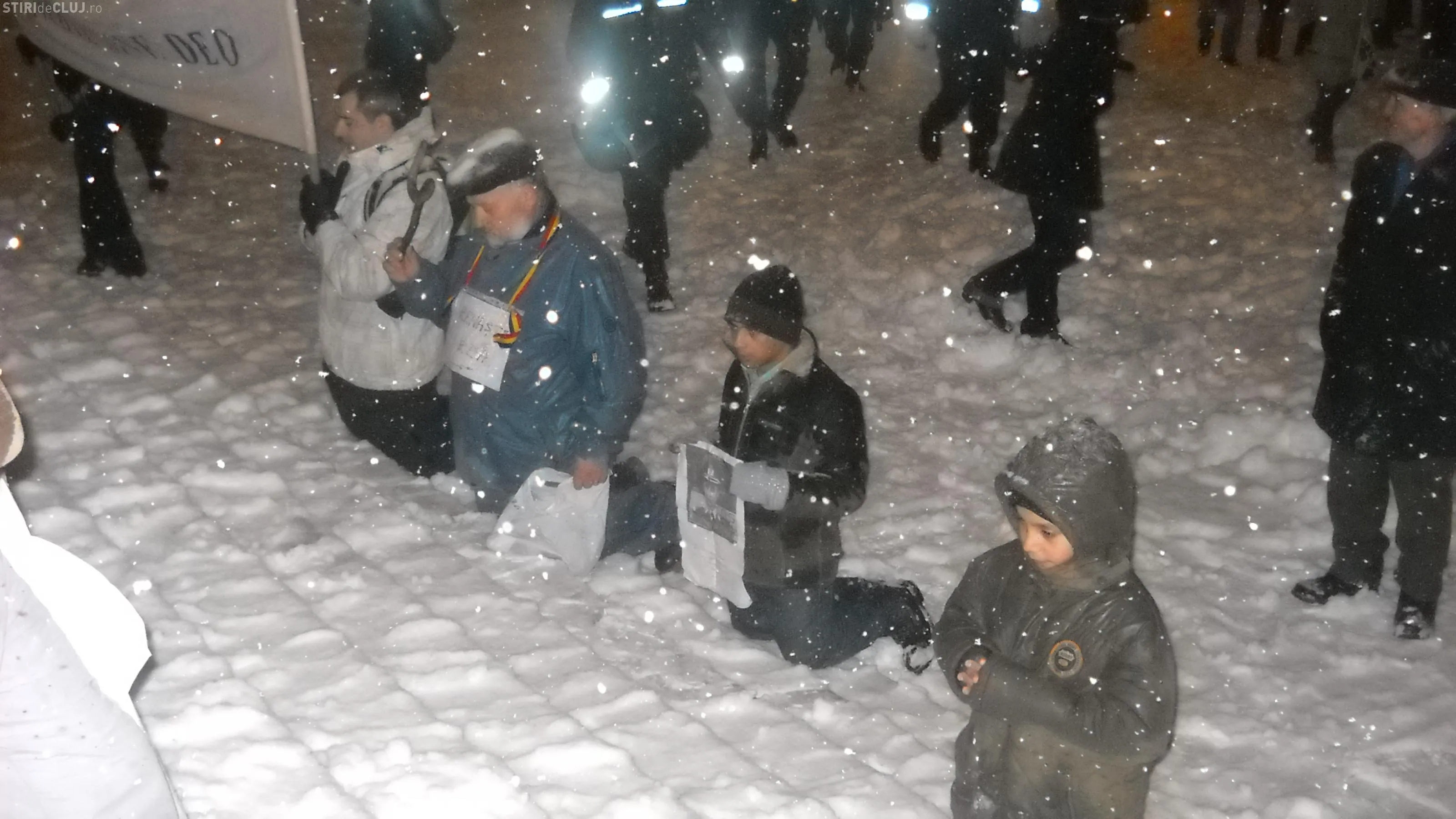 De aici au continuat marsul pe Bulevardul Eroilor pana in Piata Avram Iancu. Aici o parte dintre protestatari s-au pus in genunchi pe scarile Catedralei si s-au rugat.