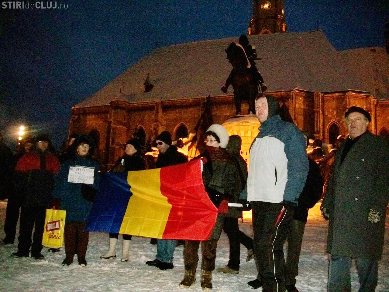 Protestatarii din Piata Unirii s-au strans si joi, 16 februarie, la ora 18:00, in centrul Clujului pentru a continua protestele.