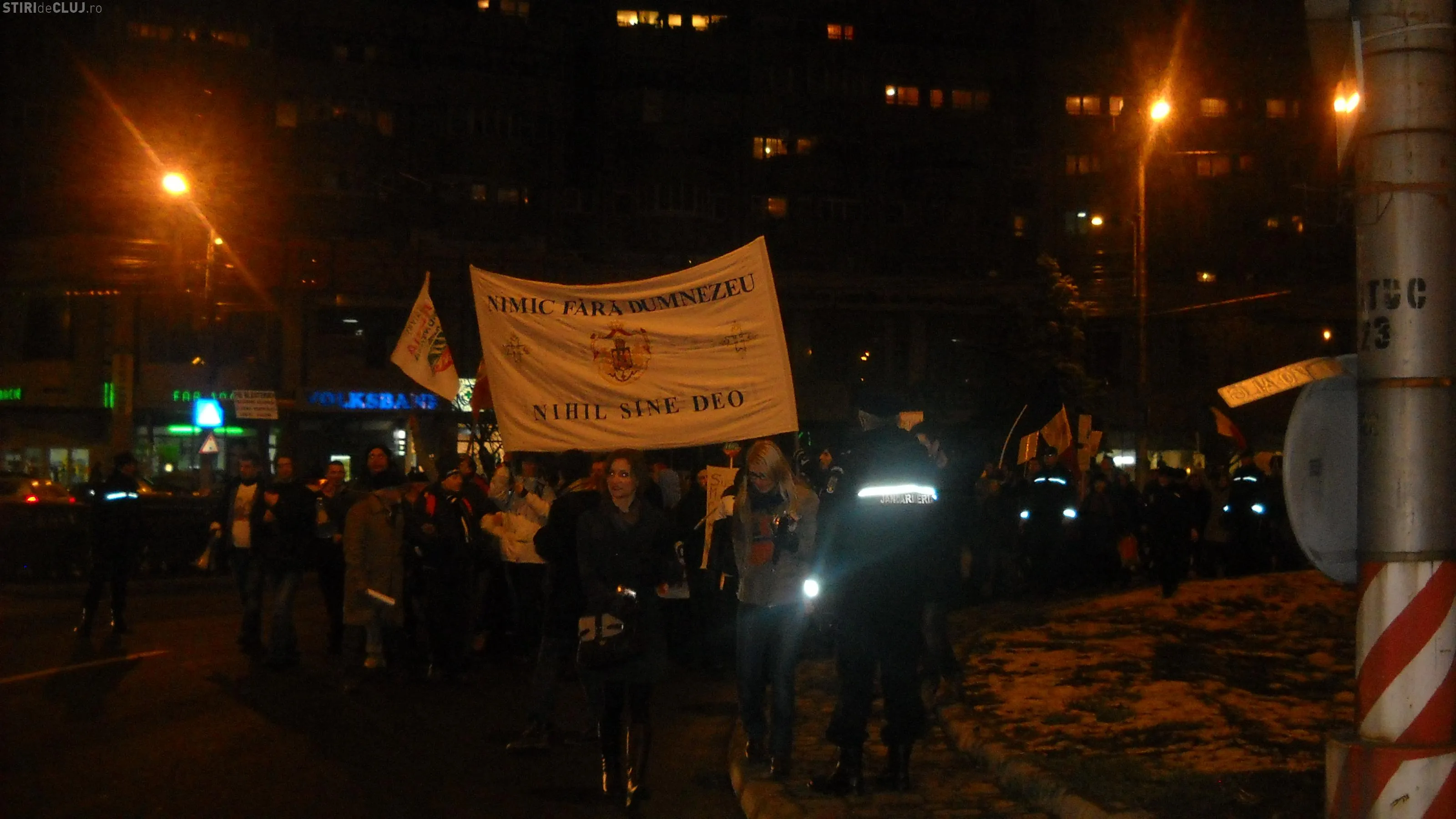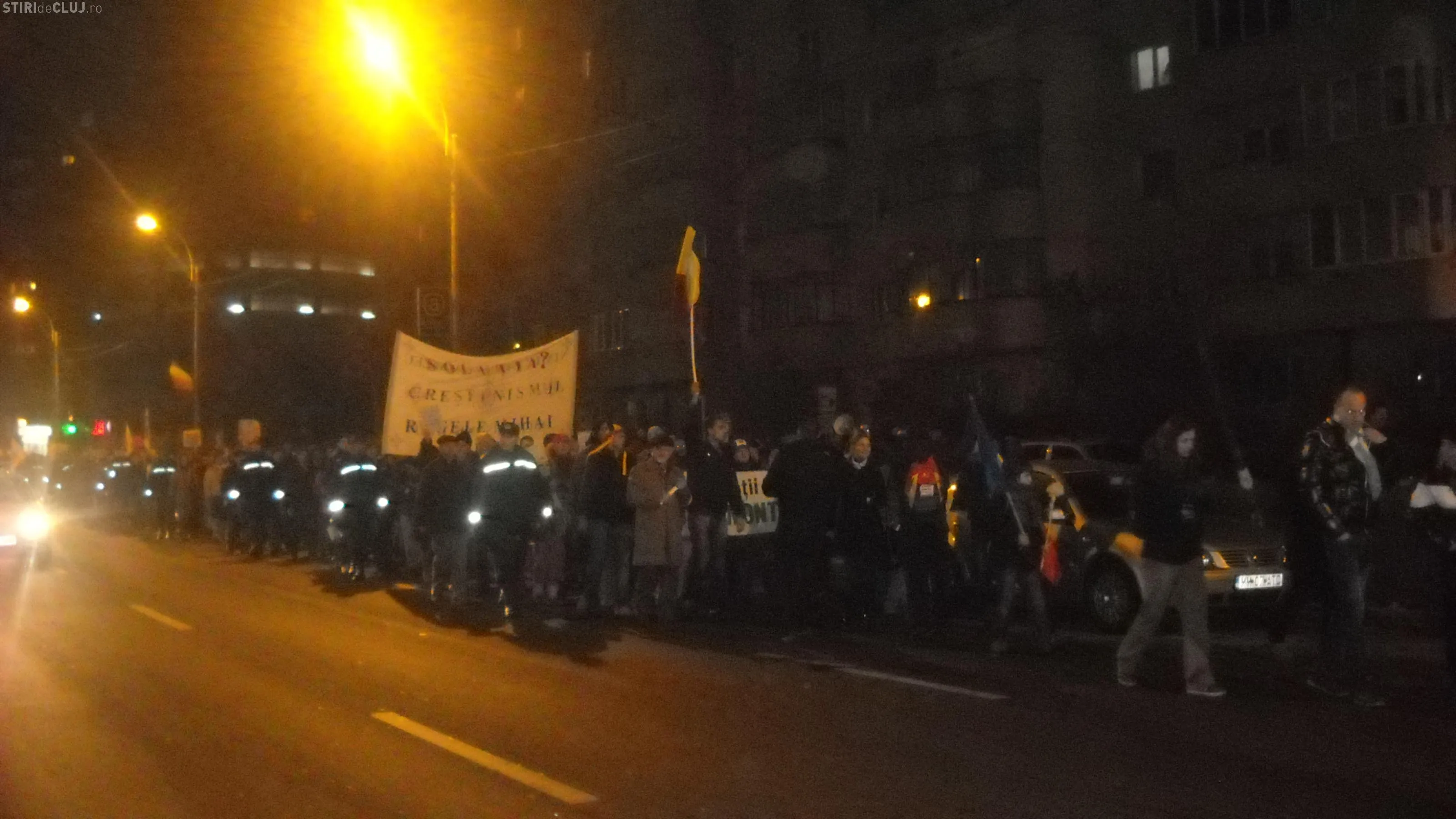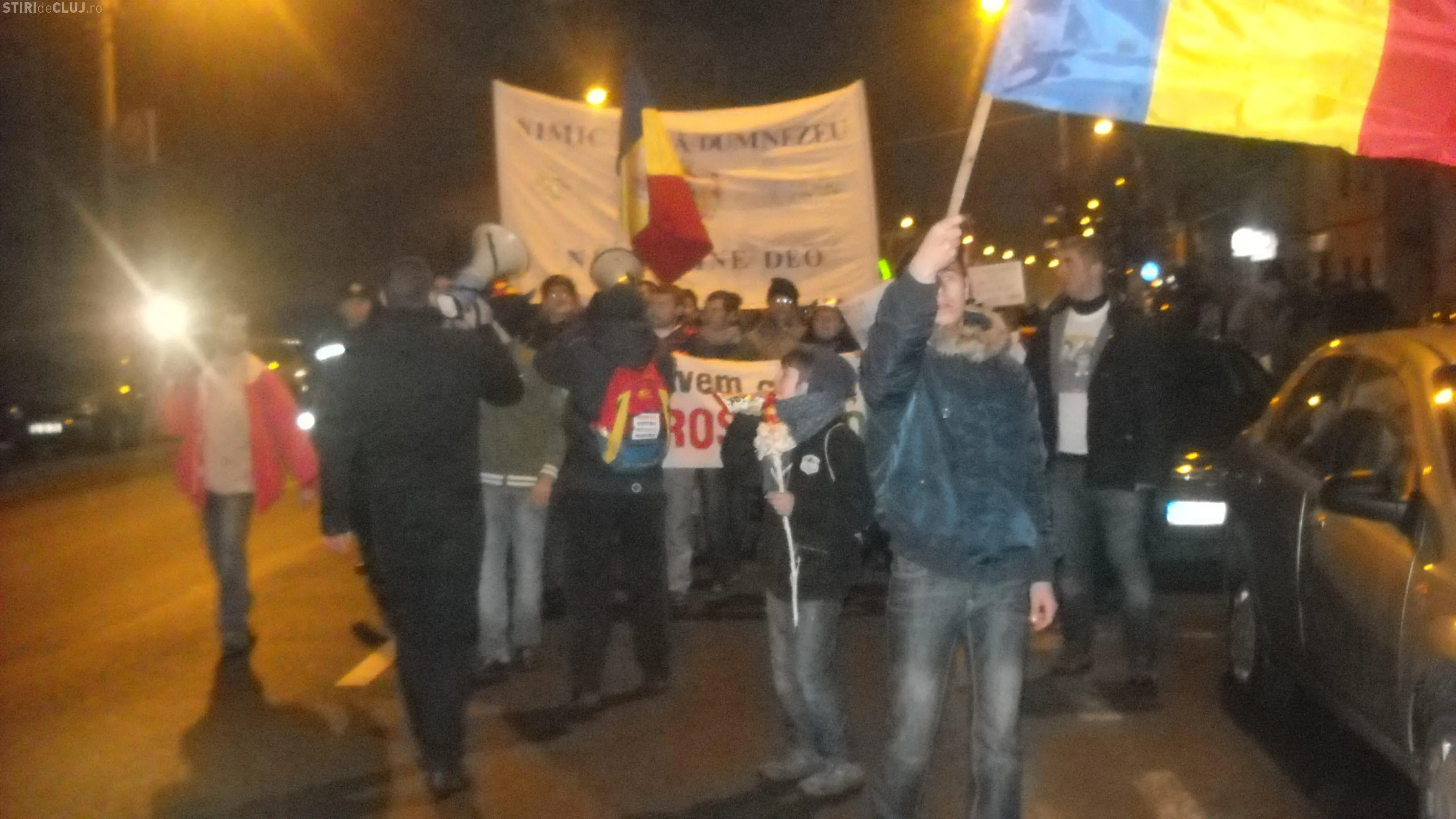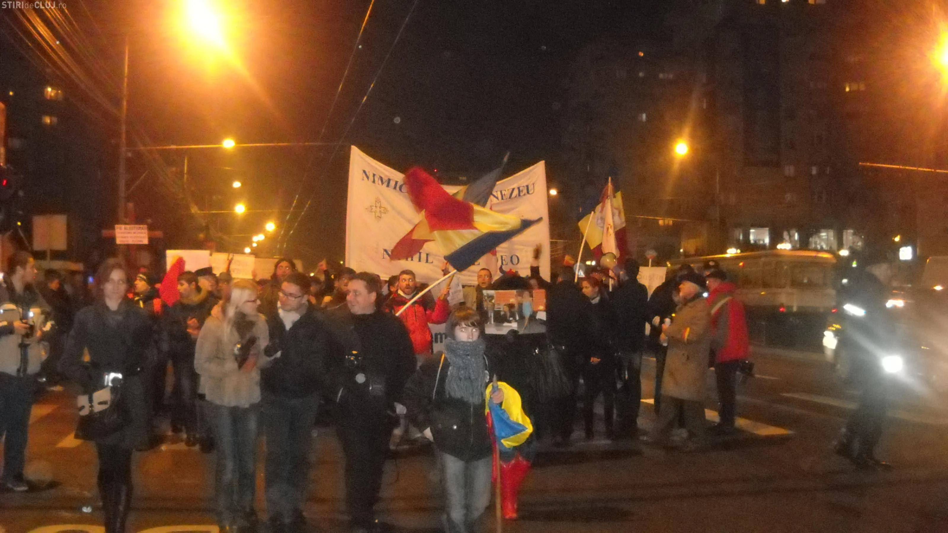 Protestatarii au pornit din Piata Unirii spre Piata Avram Iancu, unde au jucat hora Unirii, iar apoi au pornit spre cartierul Marasti pe Calea Dorobantilor. Cand au ajuns in dreptul Palatului de Justitie manifestantii au scandat "La puscarie, Basescu la puscarie", "PDL nu uita si Gherla este casa ta".