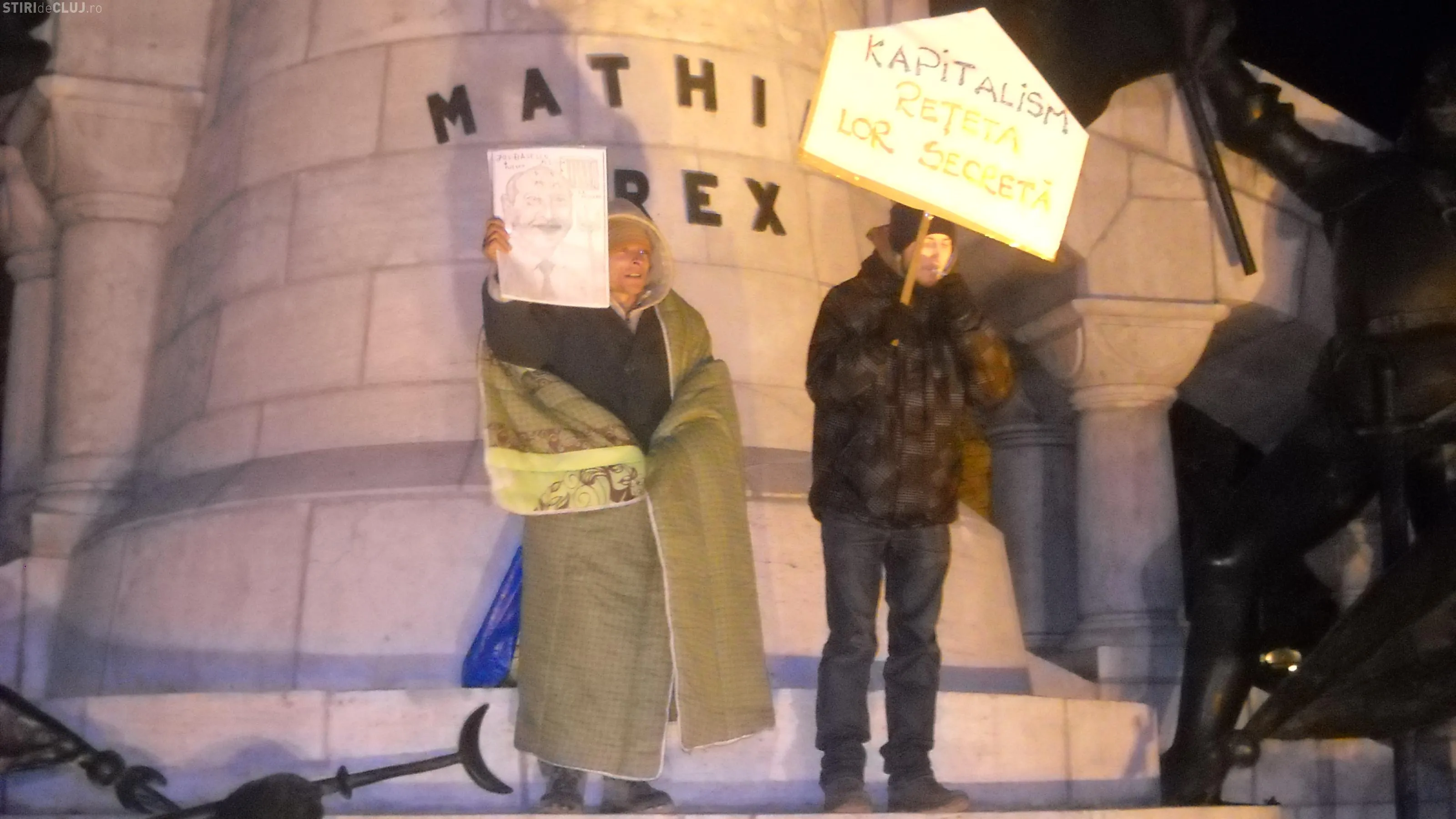 In fruntea manifestantilor, cu o statie, s-a aflat Viorel Luca, secretarul PSD Cluj, care a citit si o proclamatie.