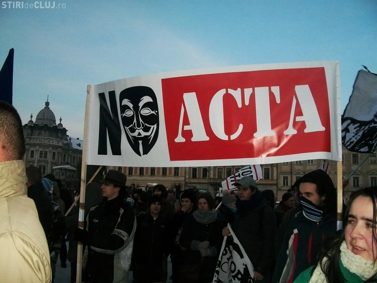 Clujenii s-au strans in Piata Unirii, de la ora 17.00, pentru a protesta fata de ACTA, legea care va duce la disparitia libertatii pe internet. Sute de oamenii participa la manifestatia care va dura pana la ora 22.00.