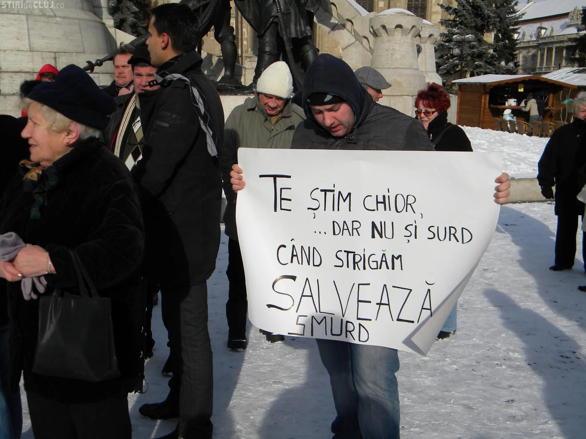 Protestul anti Basescu de la ora 12.00, din Piata Unirii, a adunat multi membri PSD si PNL Cluj VIDEO si FOTO