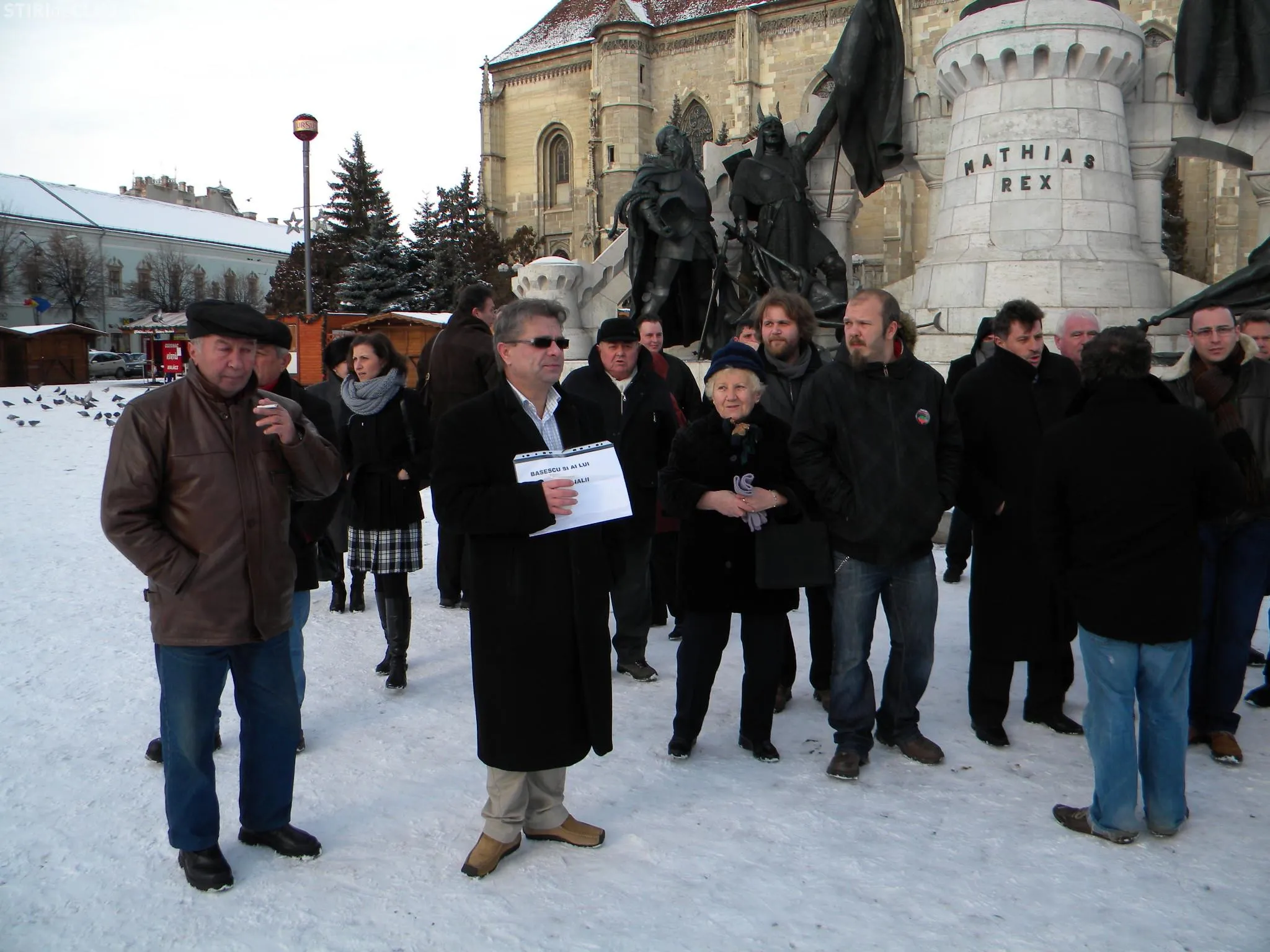 Organizatorii actiunii din Piata Unirii au declarat ca vor sta pe parcursul intregii zile in centrul Clujului si vor protesta.