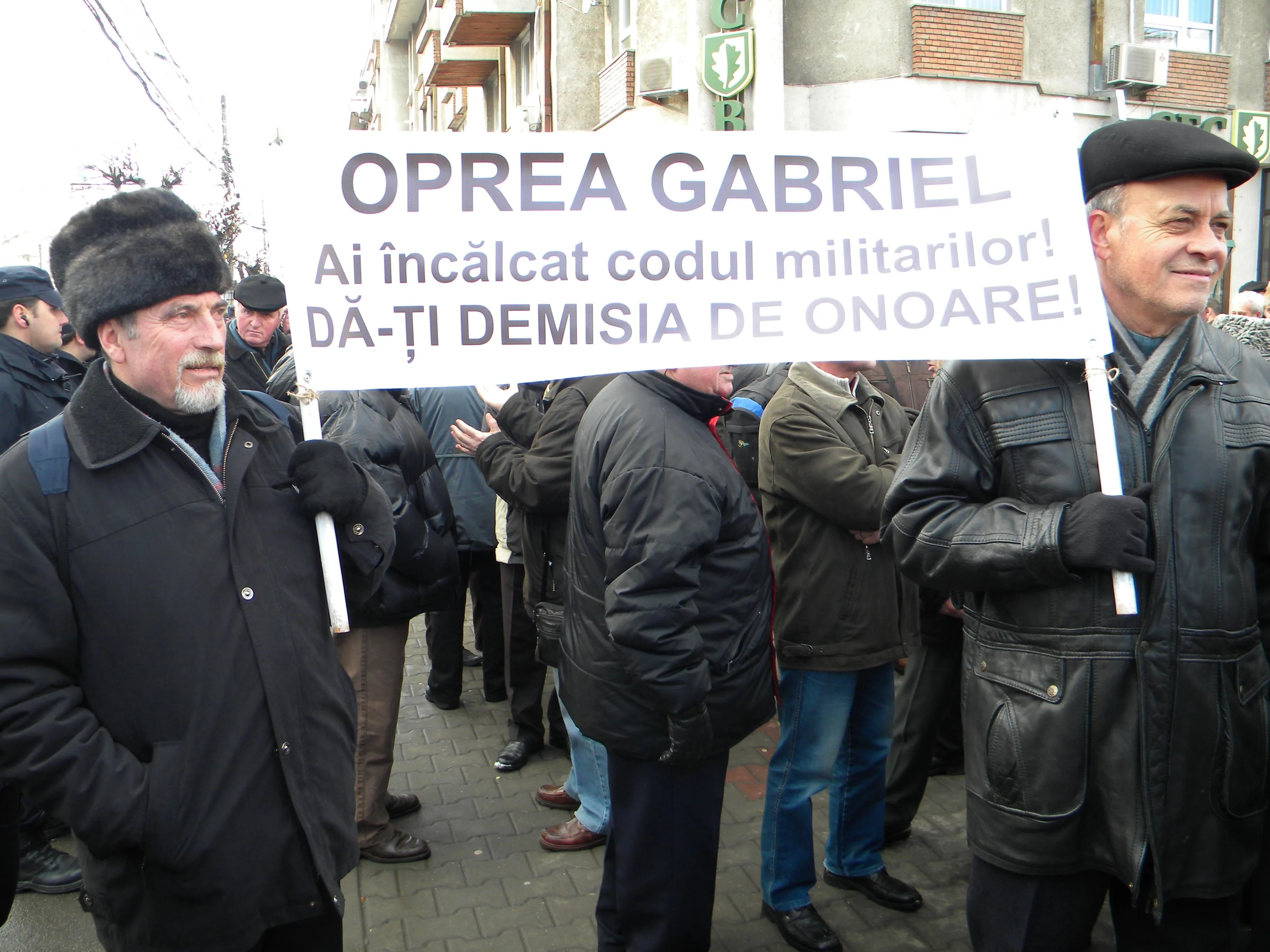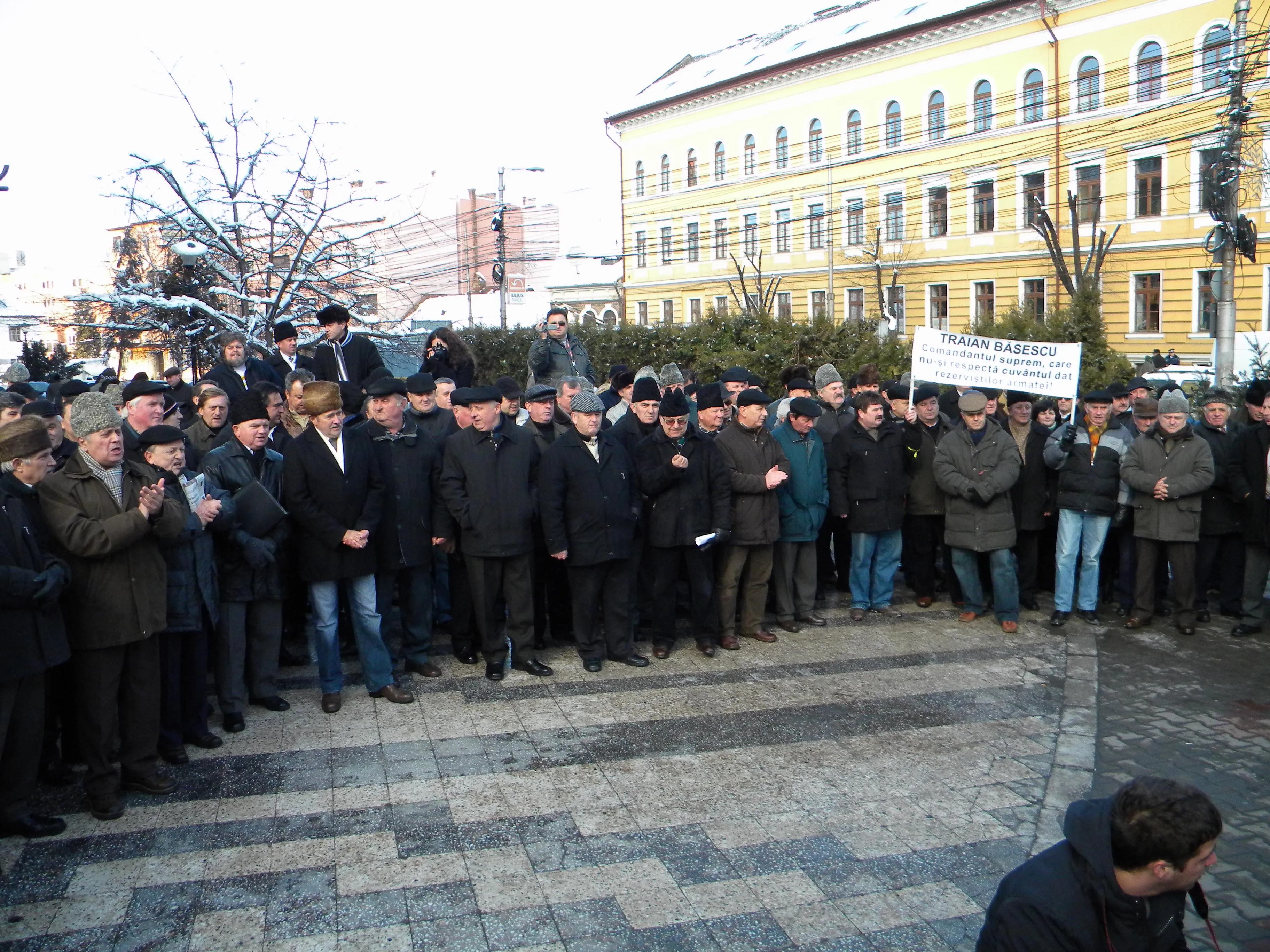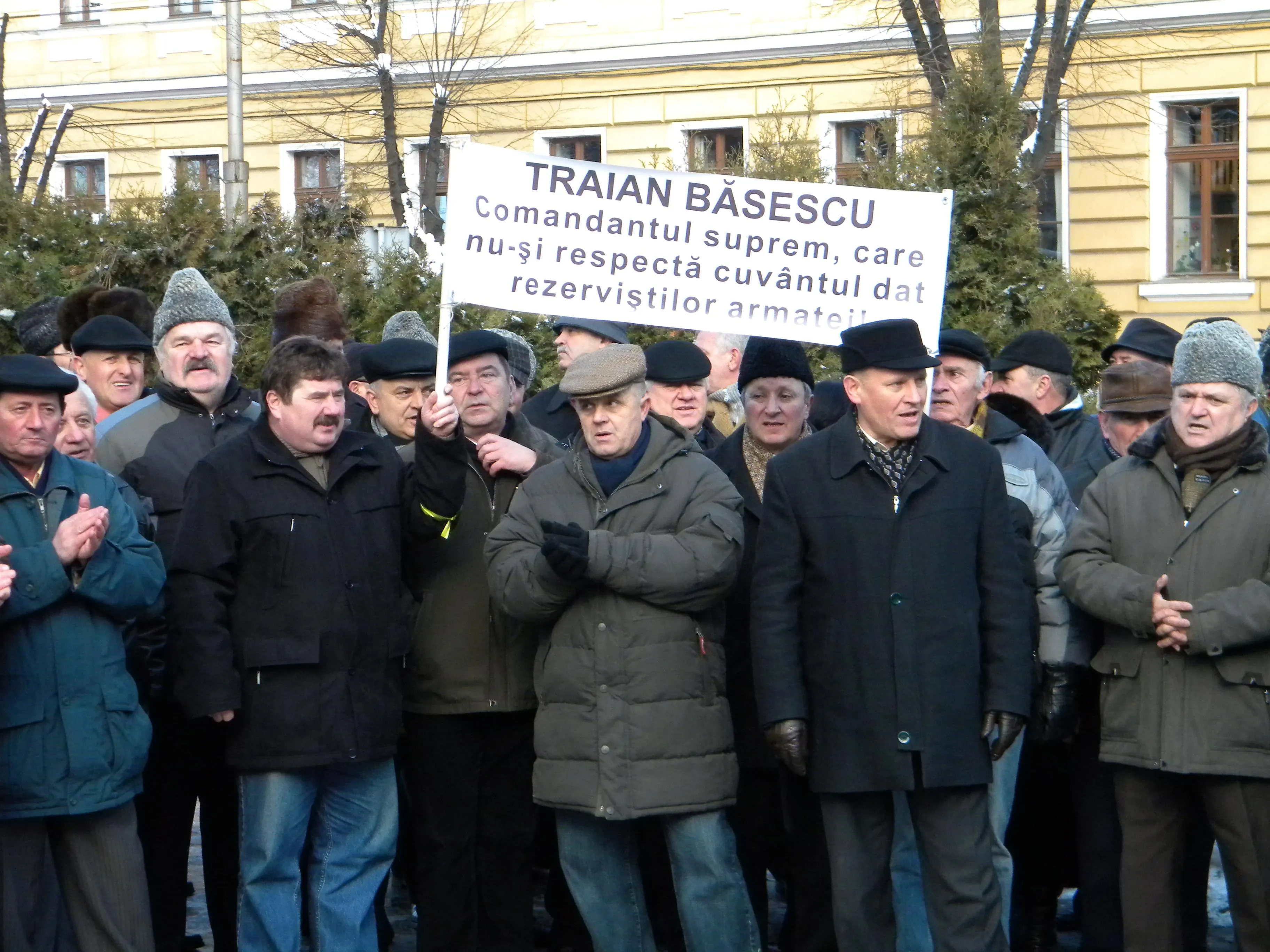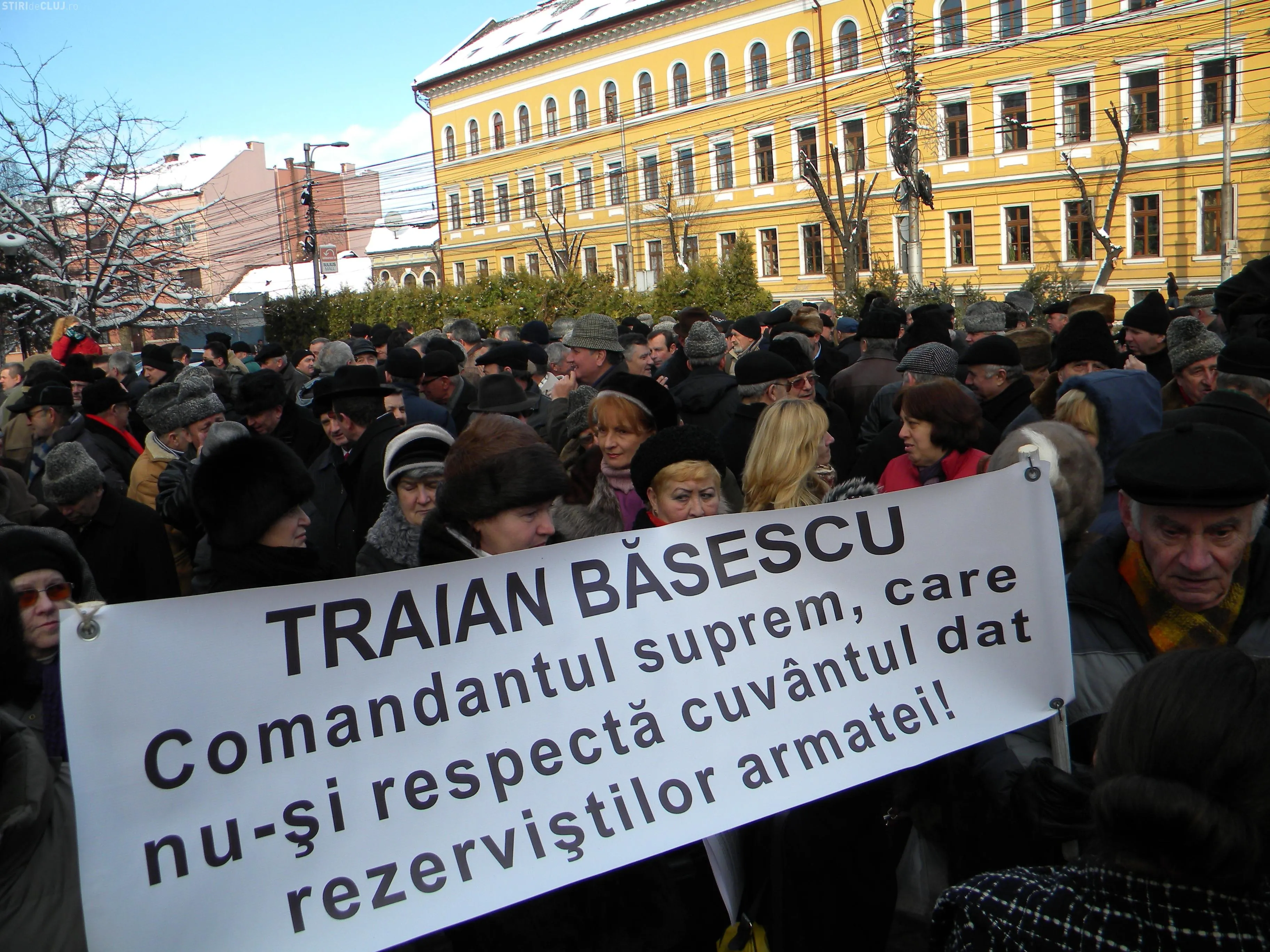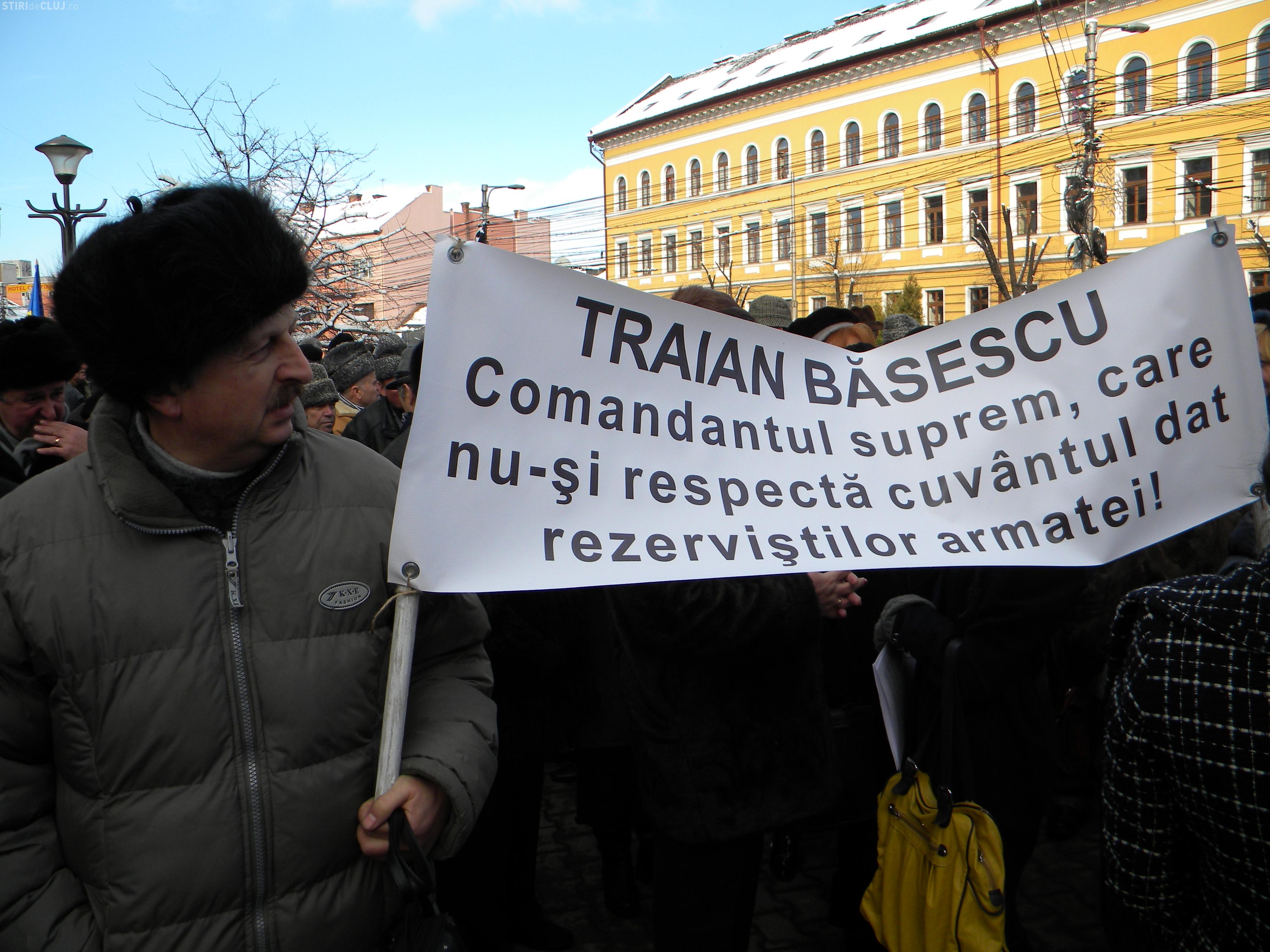 Protestul militarilor in rezerva din Cluj Napoca a fost dominat de scandari impotriva presedintelui Traian Basescu, a premierului Emil Boc si a ministrului Apararii, Gabriel Oprea.