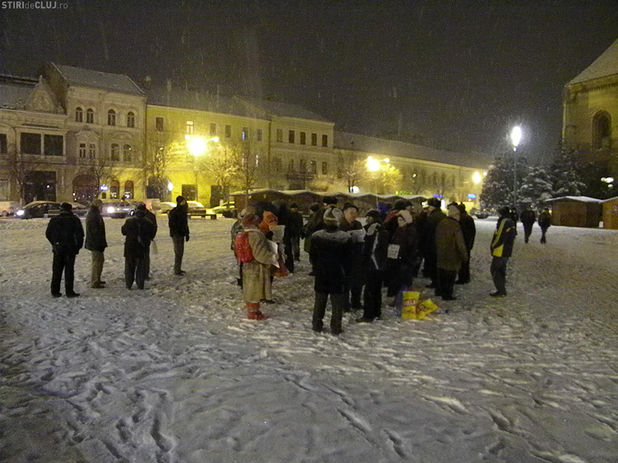 Protestele continua in Piata Unirii si circa 30 de oameni s-au strans duminica, 5 februarie, in jurul orei 18.00, pentru a cere demisia presedintelui Traian Basescu.