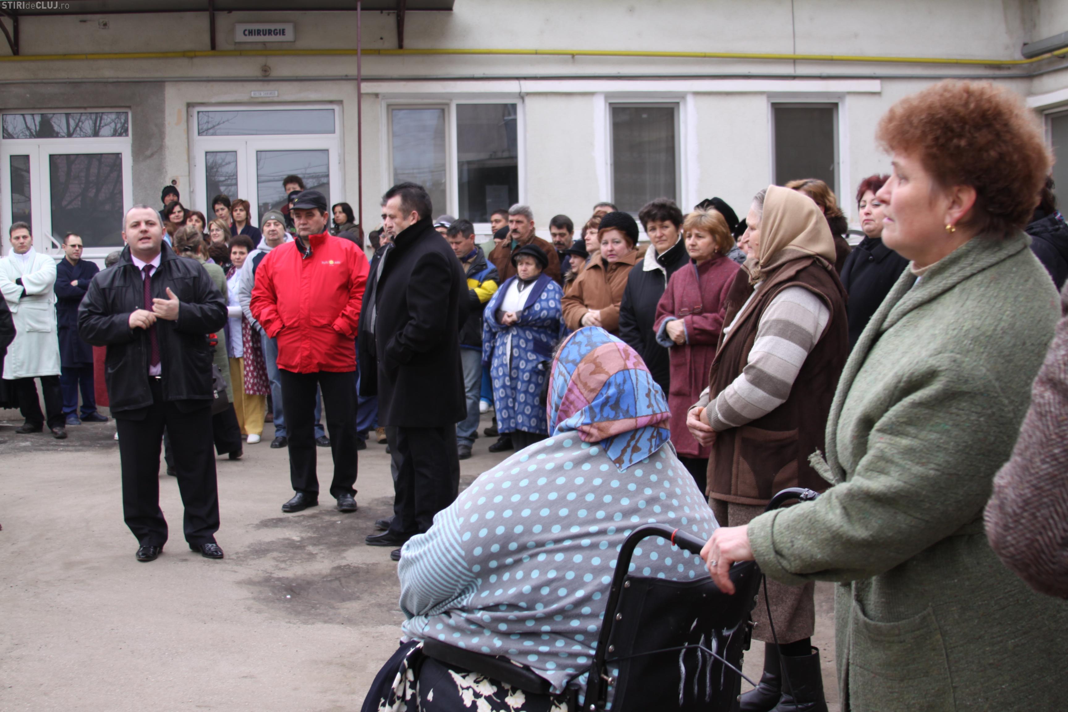Angajatii de la Spitalul din Campia Turzii au protestat in curtea unitatii de la ora 8.30. Pe langa cadrele medicale, la actiune au luat parte si pacientii si apartinatorii, care nu doresc comasarea spitalului cu cel din Turda.