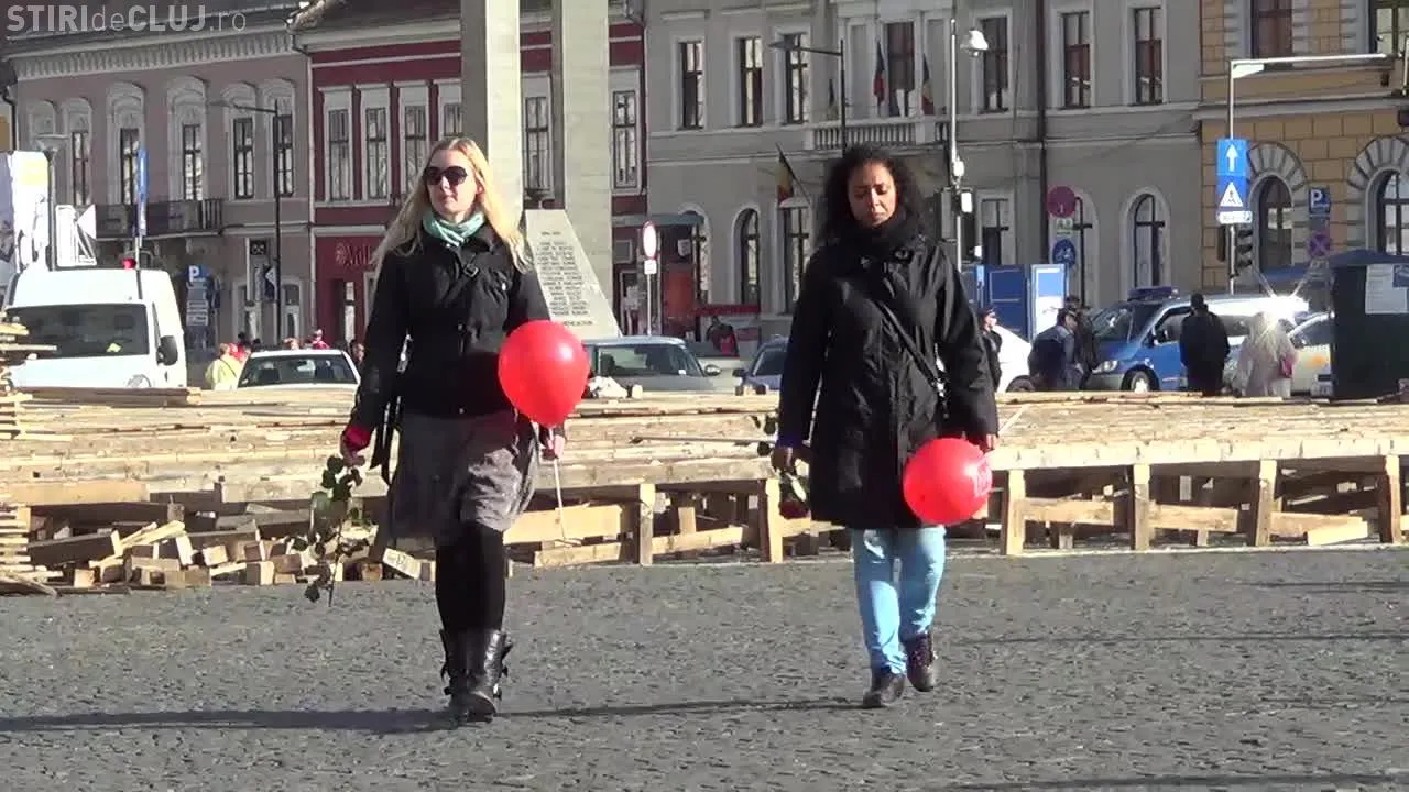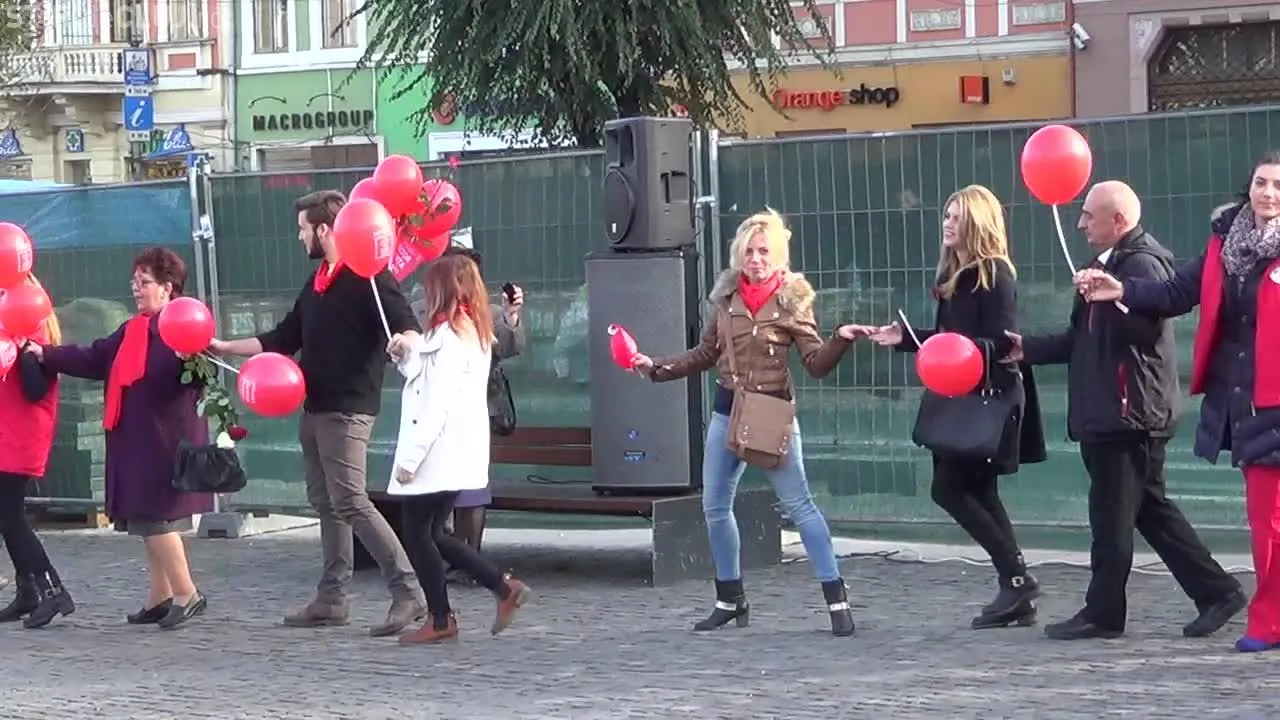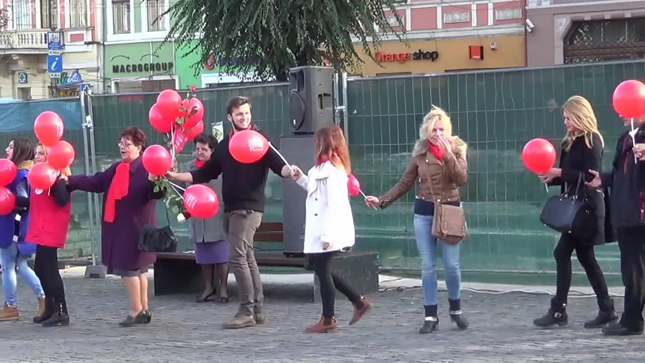 Tinerii au dat muzica la maxim, au dansat și au împărțit 1.000 de trandafiri tinerelor și doamnelor care treceau prin Piața Unirii.