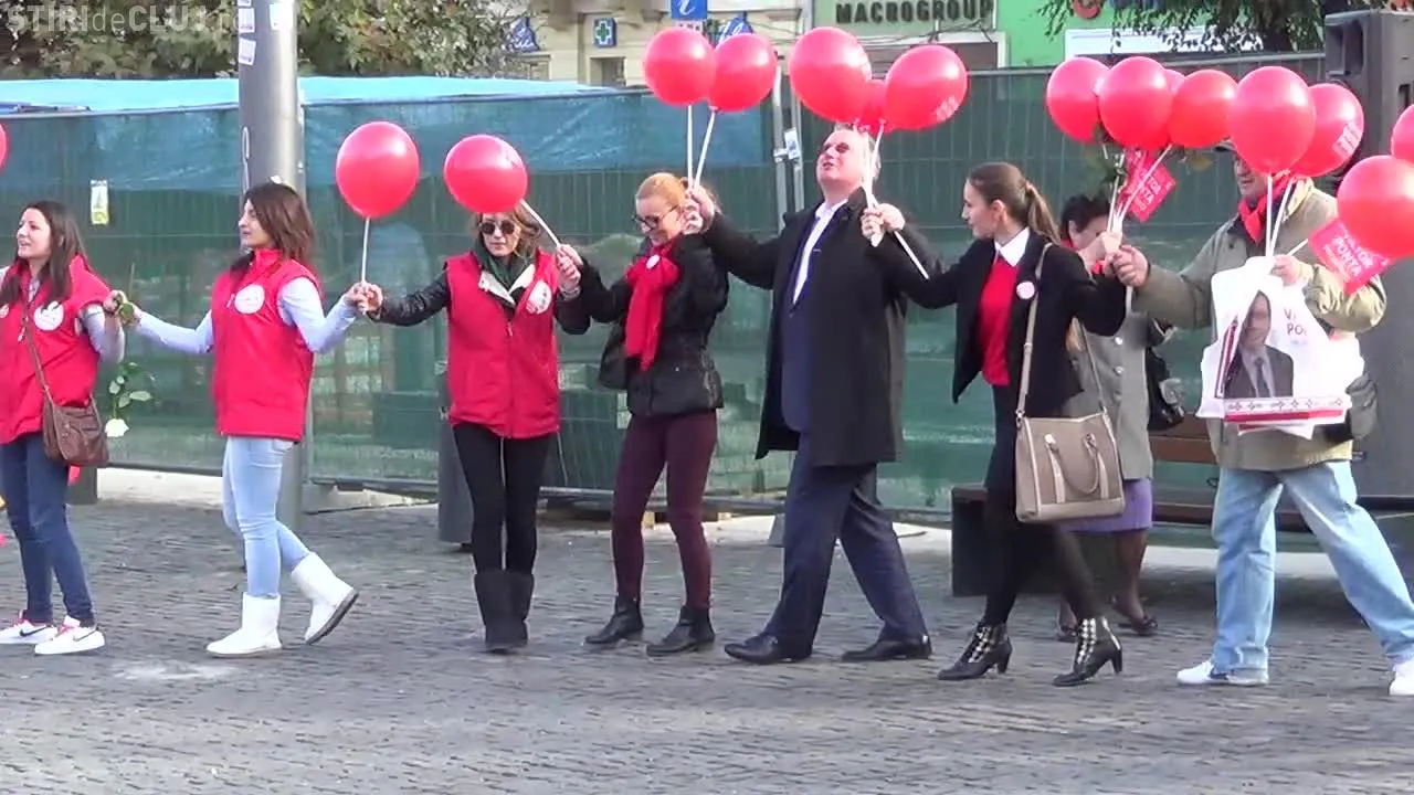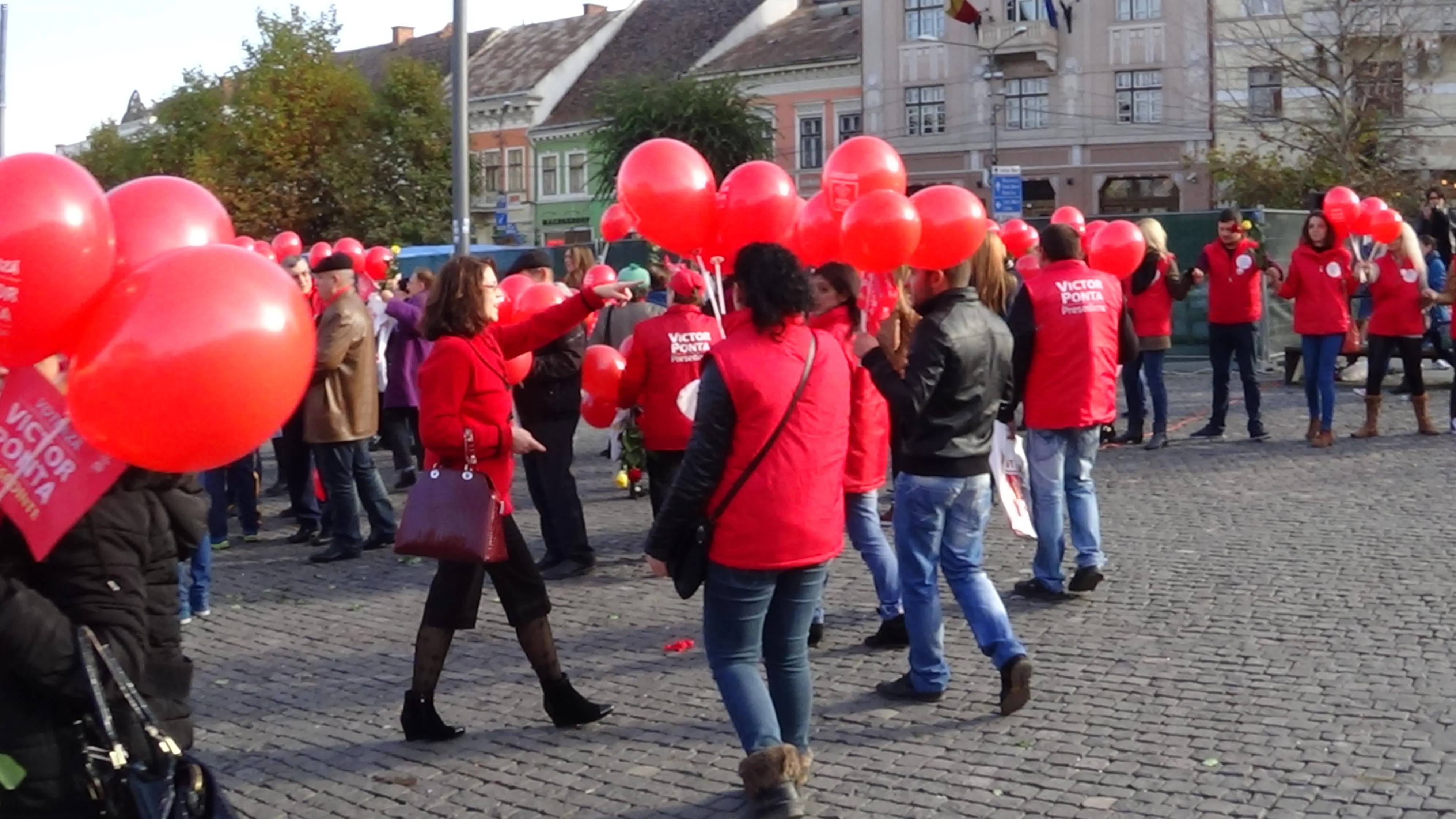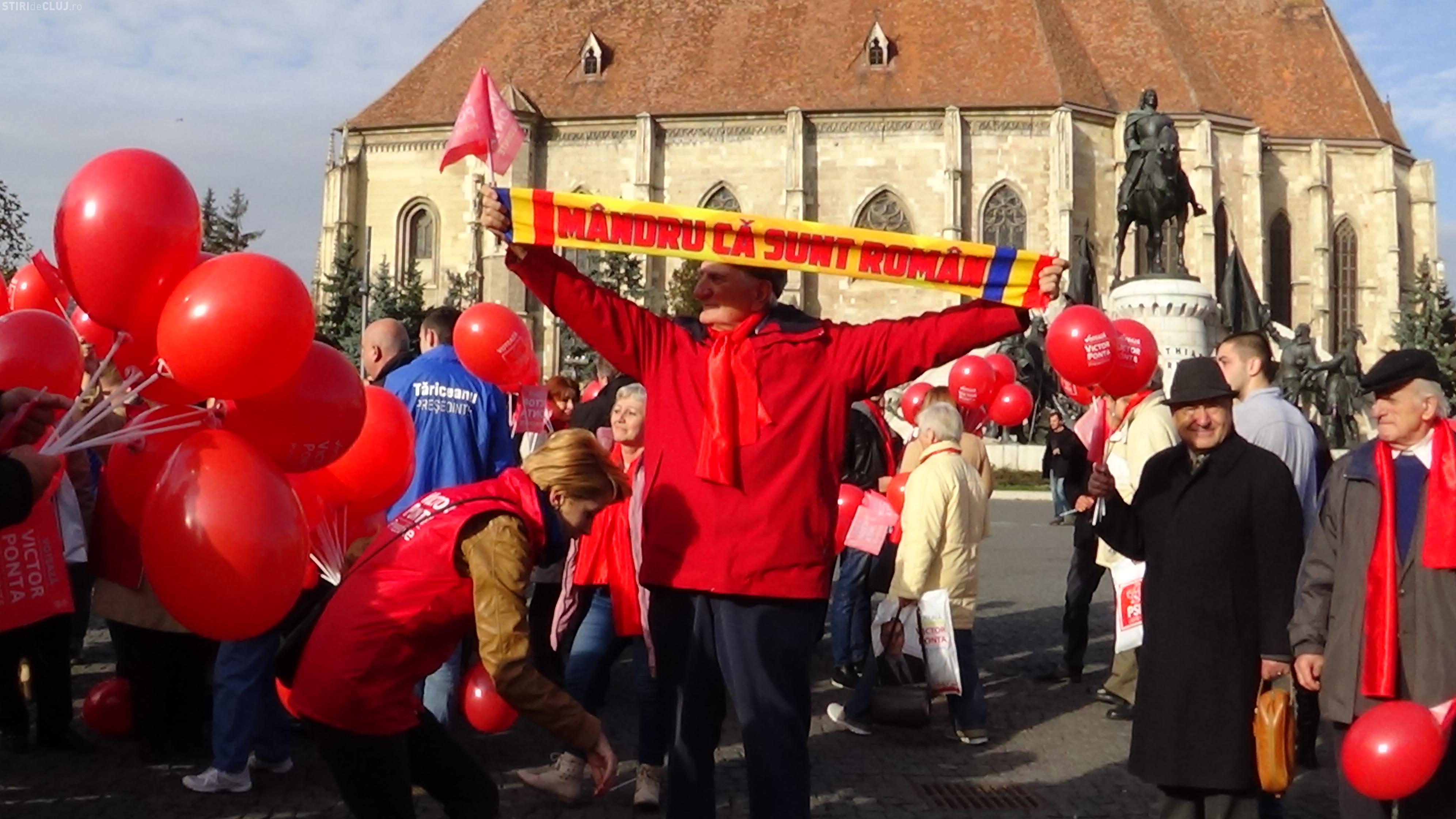Câteva sute de tineri de la PSD Cluj s-au adunat, vineri, la ora 13.00, în Piața Unirii din Cluj-Napoca pentru a-l susține pe Victor Ponta.