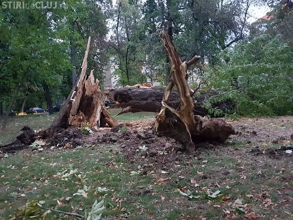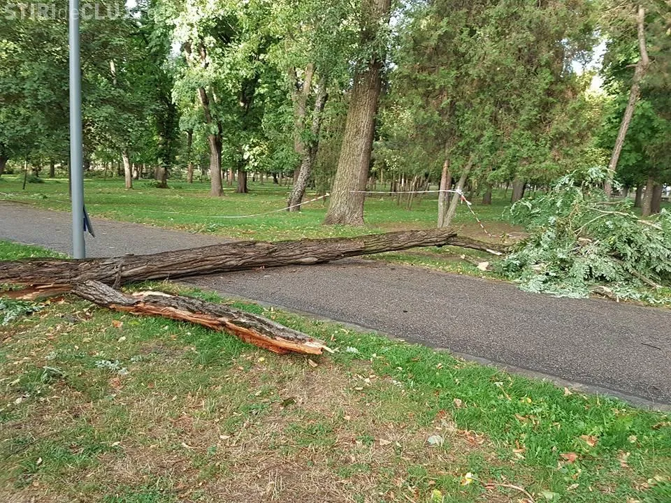 Puteau muri clujeni azi în Parcul Central. Mulți copaci bătrâni au fost rupți ca scobitorile de vijelie - FOTO