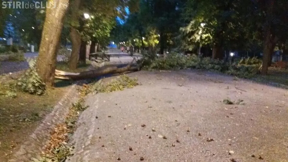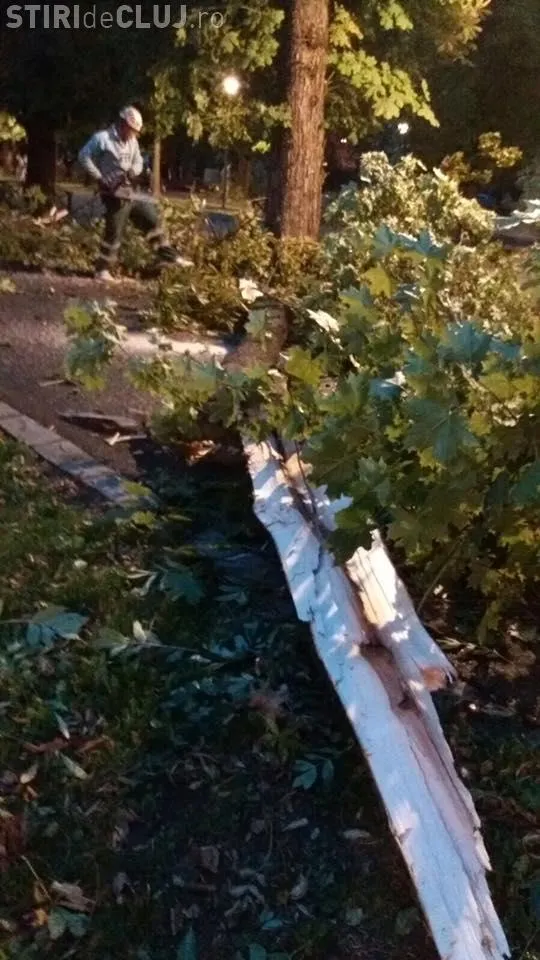 Peste 20 de copaci (au fost și ramuri groase) au fost rupți în Parcul Central din Cluj-Napoca, de vijelia care a lovit orașul în jurul orei 17:30.
