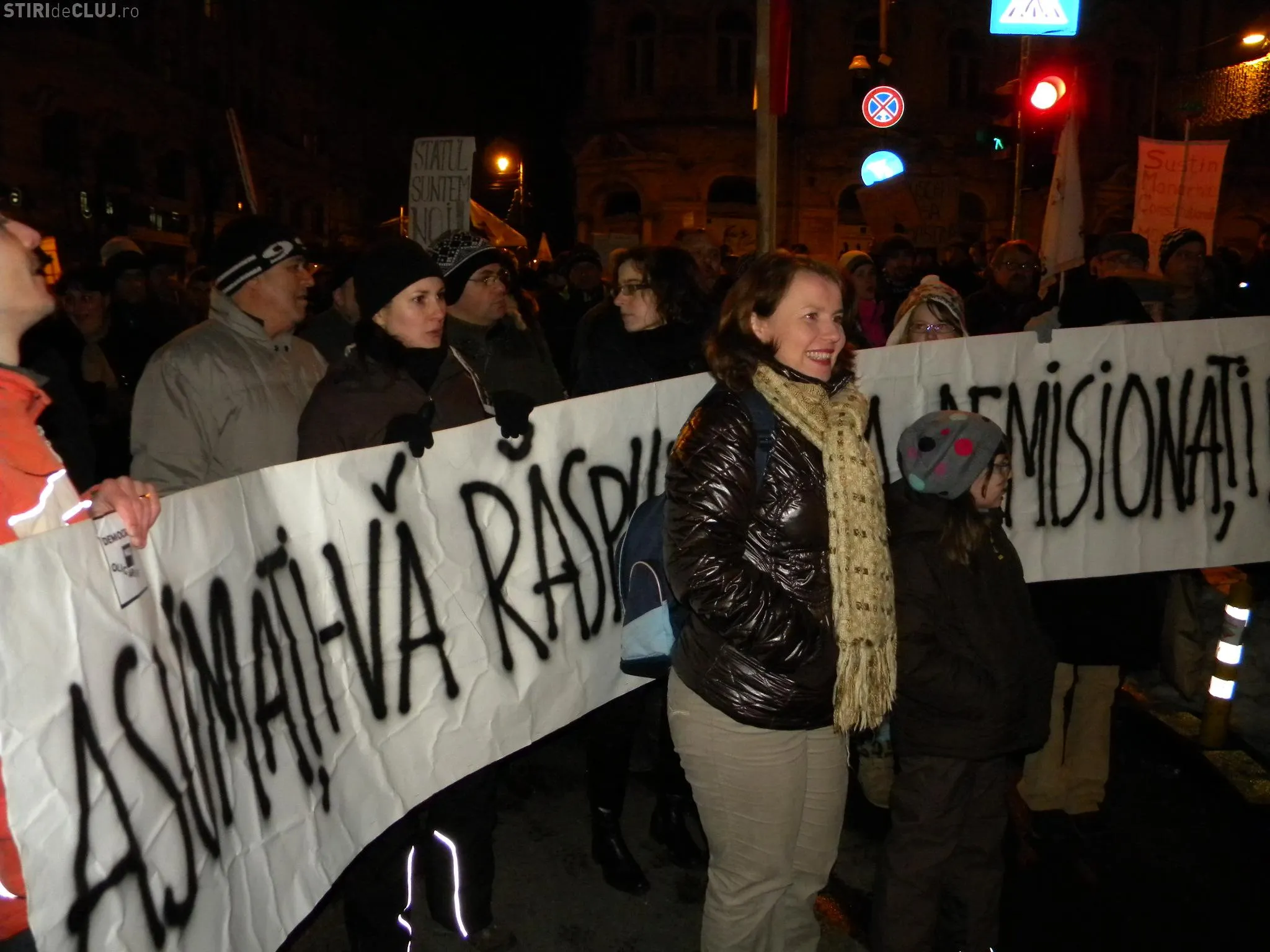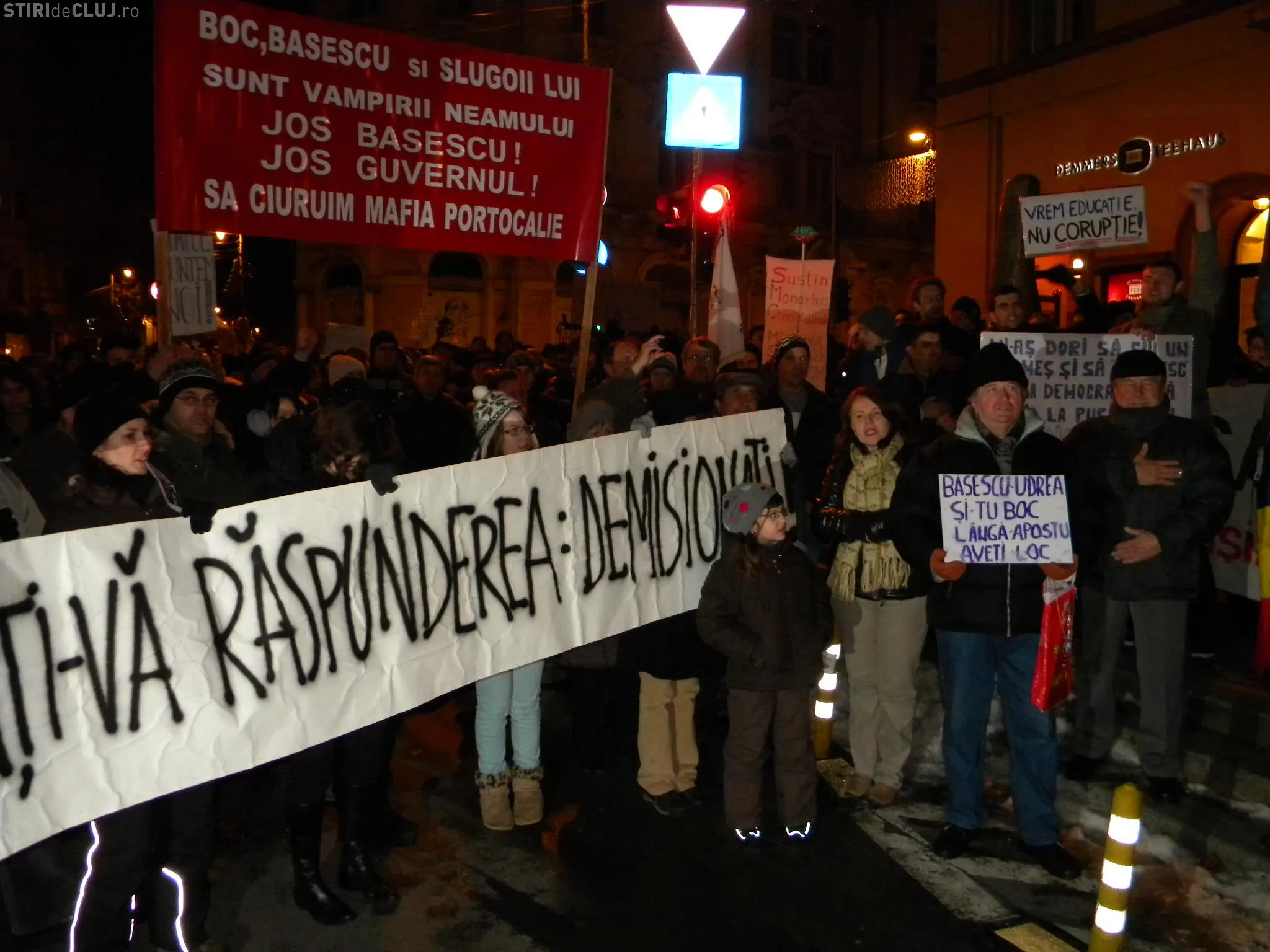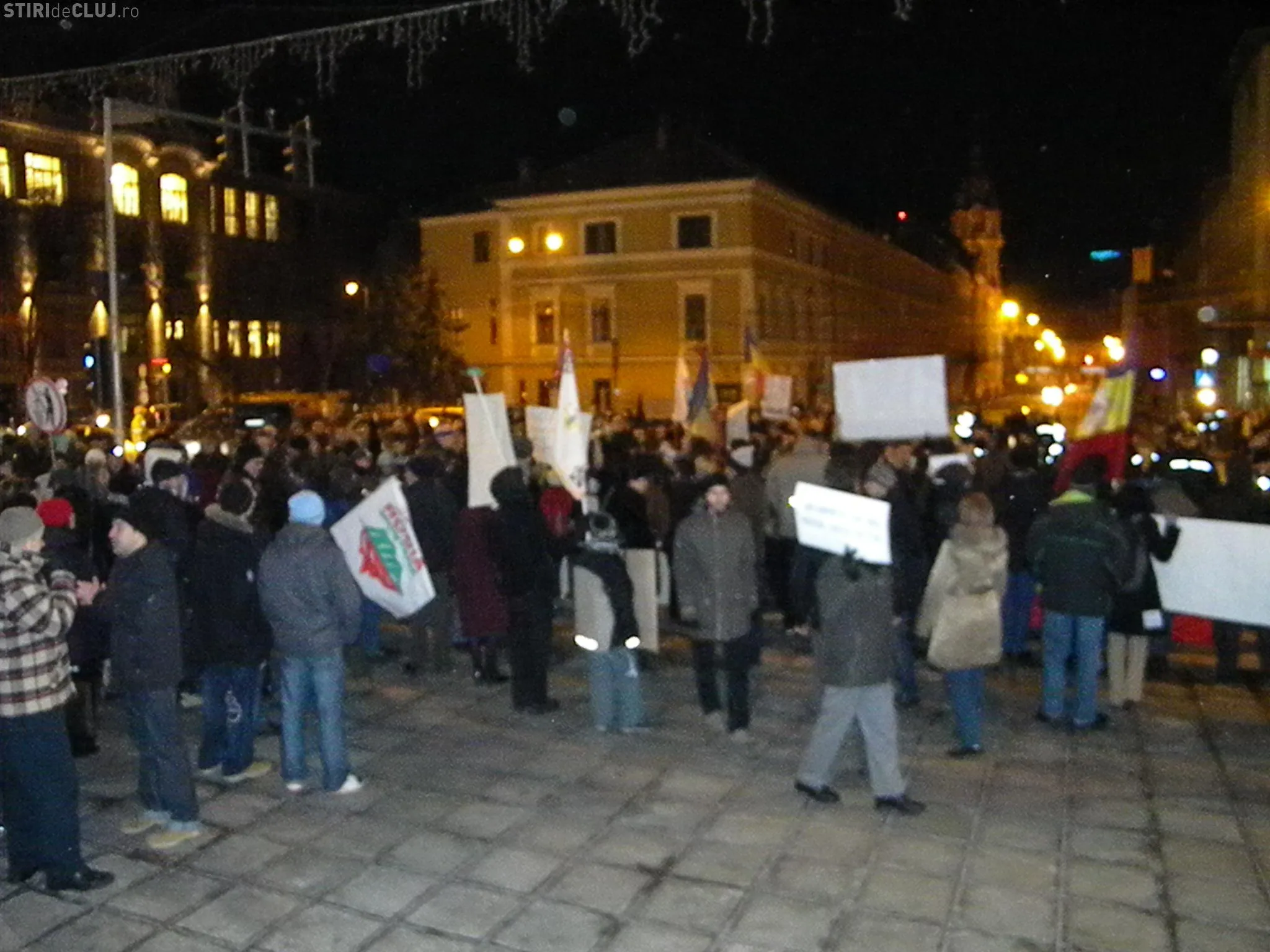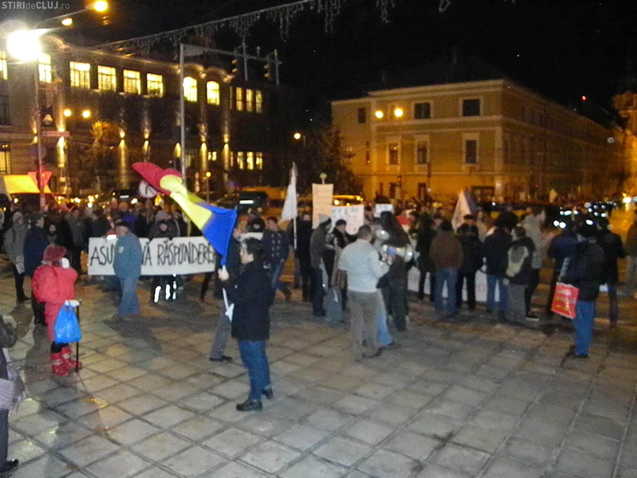 Protestul din Piata Unirii a continuat in forta si in a noua zi, chiar daca numarul clujenilor care au participat a scazut.