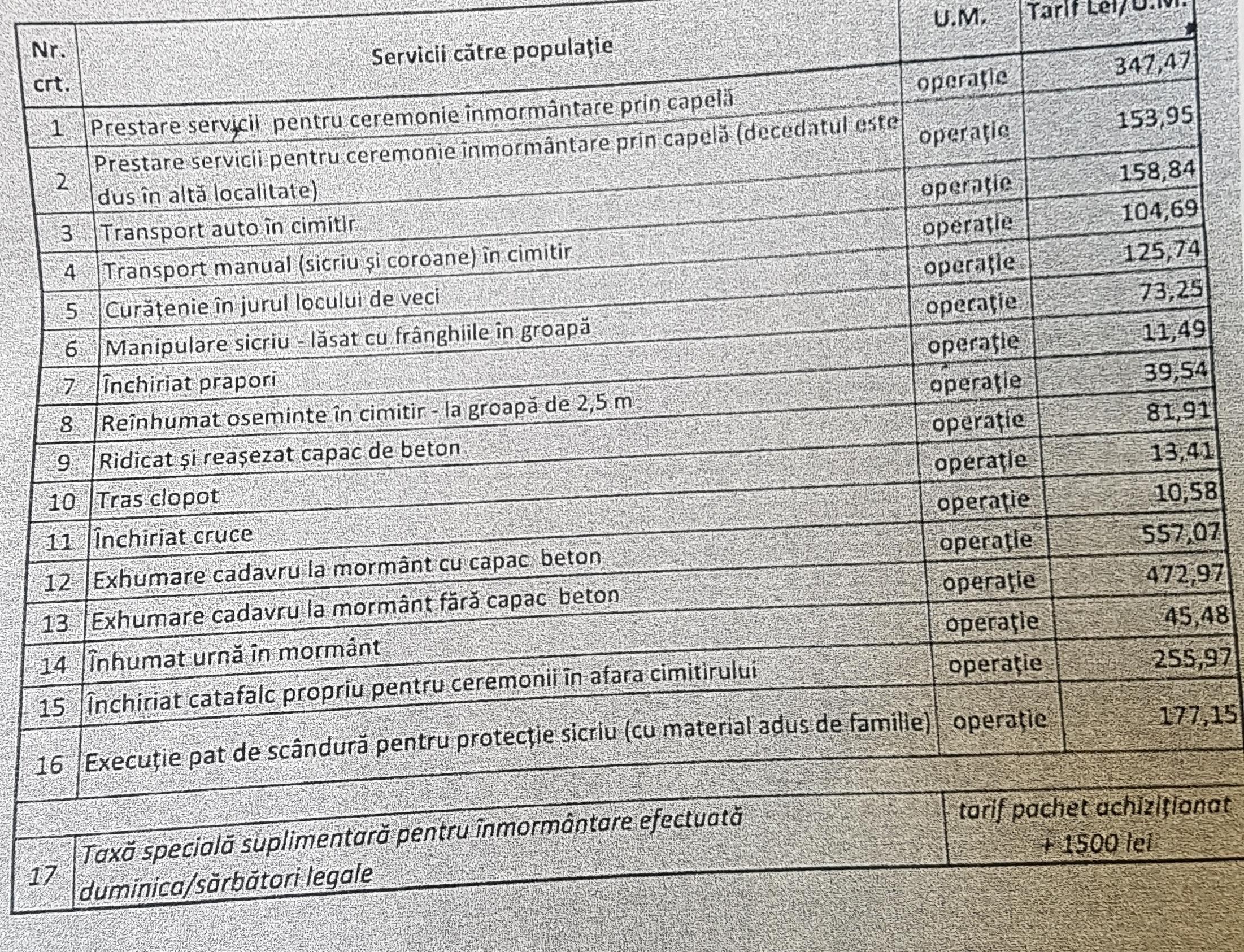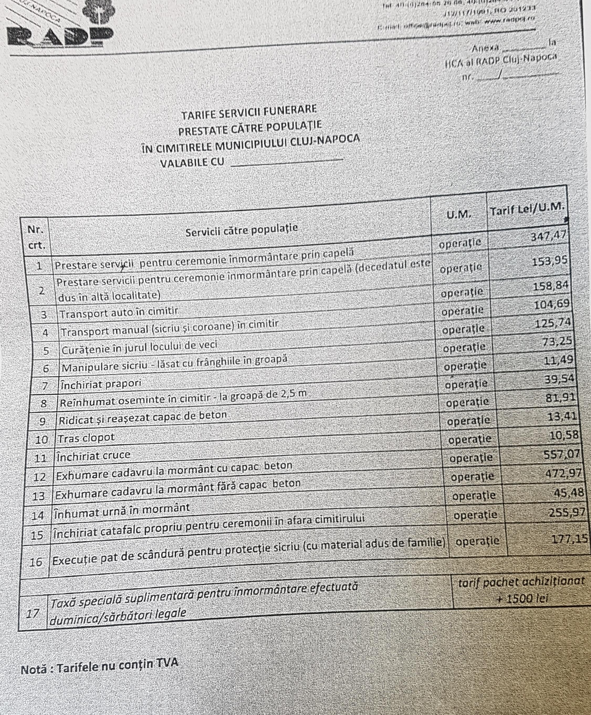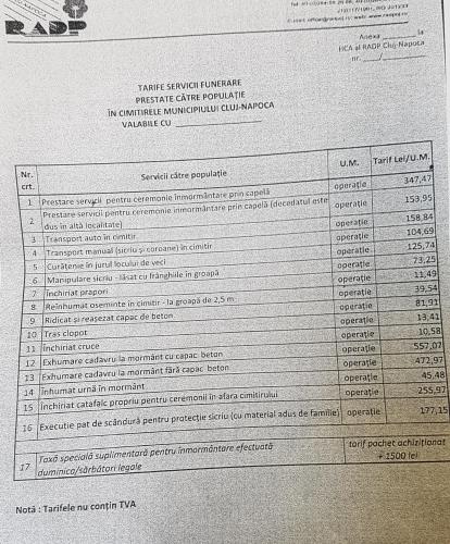 RADP mai practică și o serie de alte servicii în cimitirele clujene, care nu mai sunt gratuite și care au niște prețuri absolut incredibile. Vezi mai jos lista.