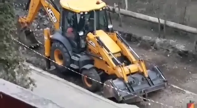 Probabil, șoferul a suspendat utilajul și a început să ruleze din greșeală. În excavator nu părea să fie nimeni, oamenii fiind la o țigară, în timp ce utilajul consumă carburant degeaba.