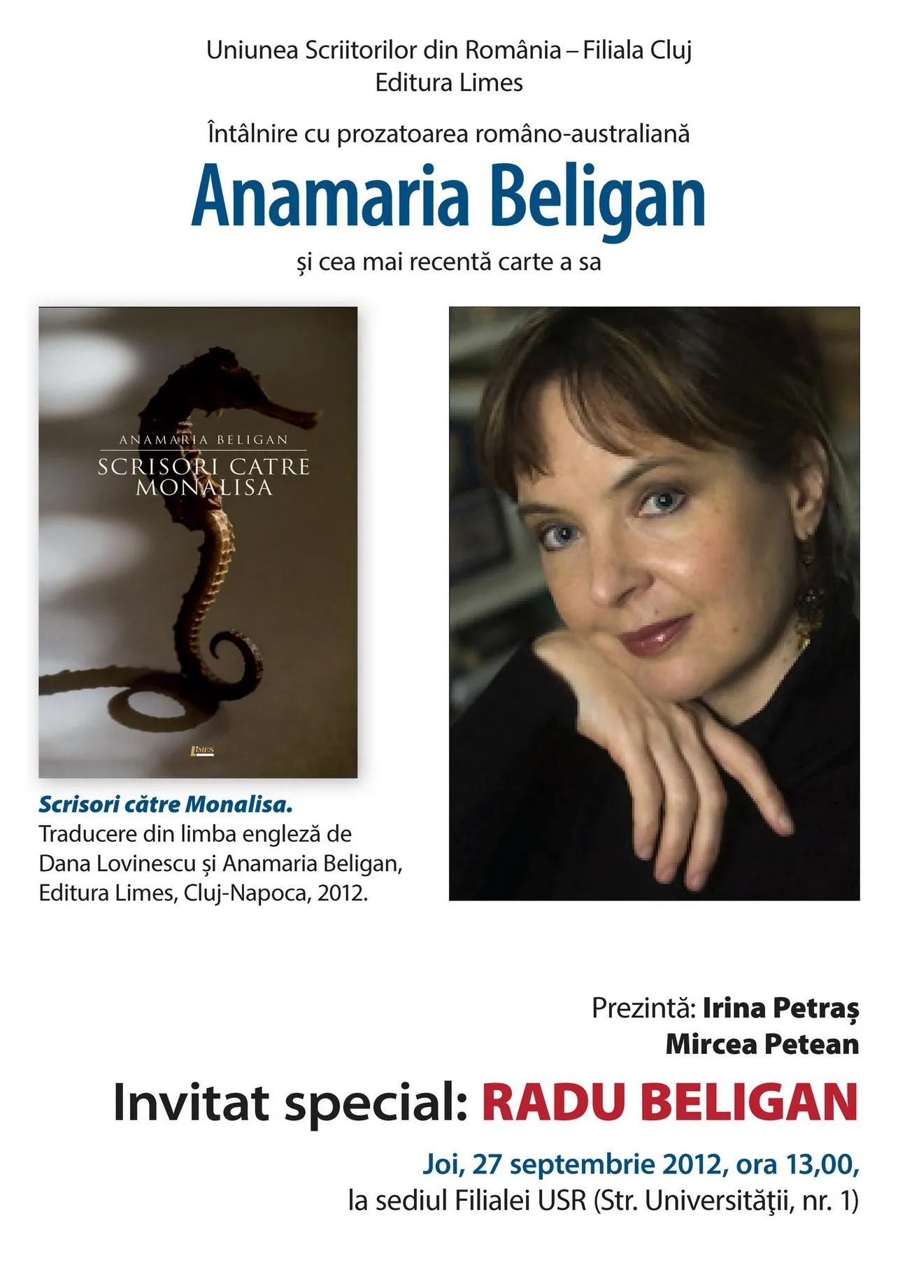 - joi, 27 septembrie, ora 13, fiica sa, Anamaria Beligan, va lansa o noua editie a Scrisorilor către Monalisa (Editura Limes).
