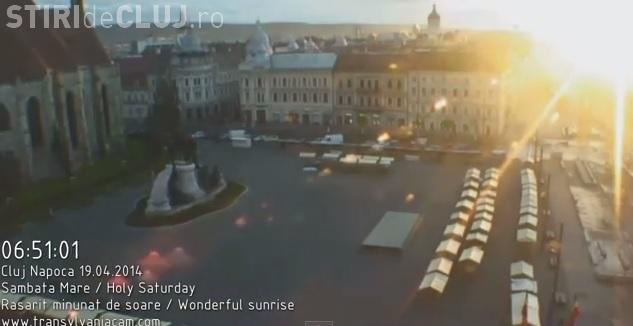 Răsărit de soare minunat la Cluj susprins de camera din Piața Unirii - VIDEO