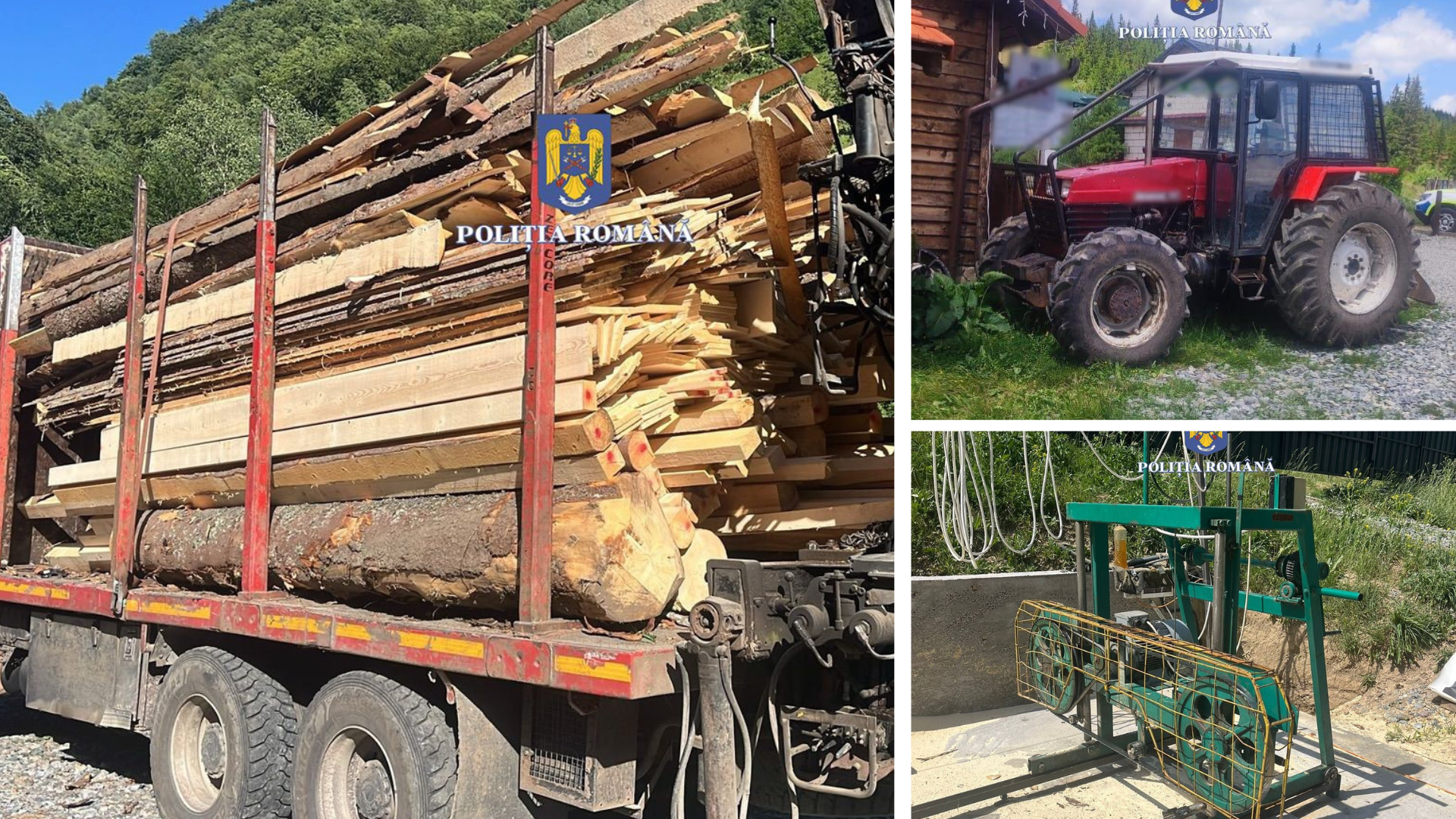 Război împotriva mafiei lemnului în Cluj: Polițiștii au găsit lemn furat și unelte de prelucrare în percheziții fulger VIDEO