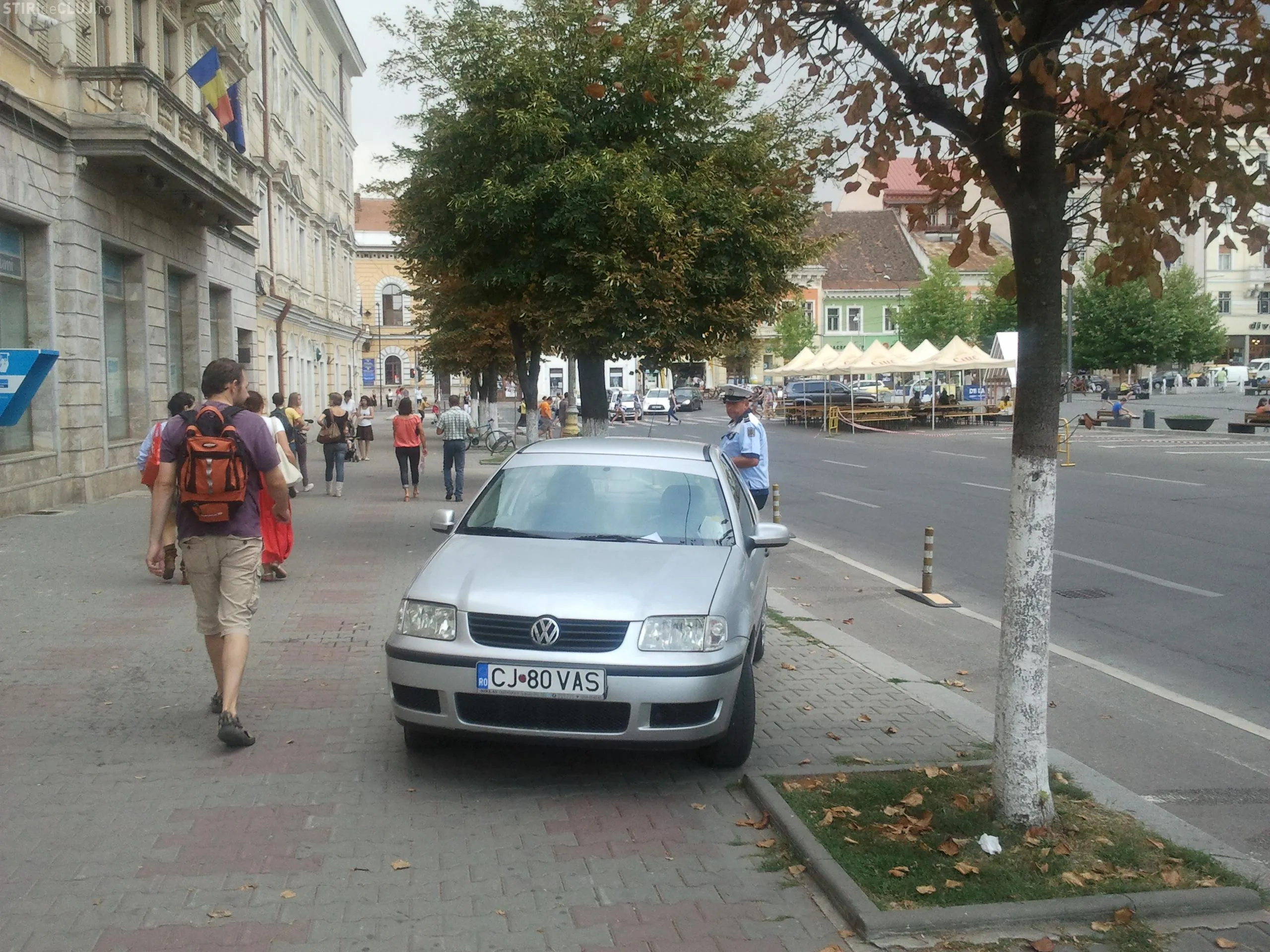 Un astfel de caz a fost surprins în fața sediului BRD, din Piața Unirii, unde un șofer a urcat pe bordura de 20 de centimetri. Un polițist local nu l-a iertat și i-a aplicat o amendă de 400 de lei.