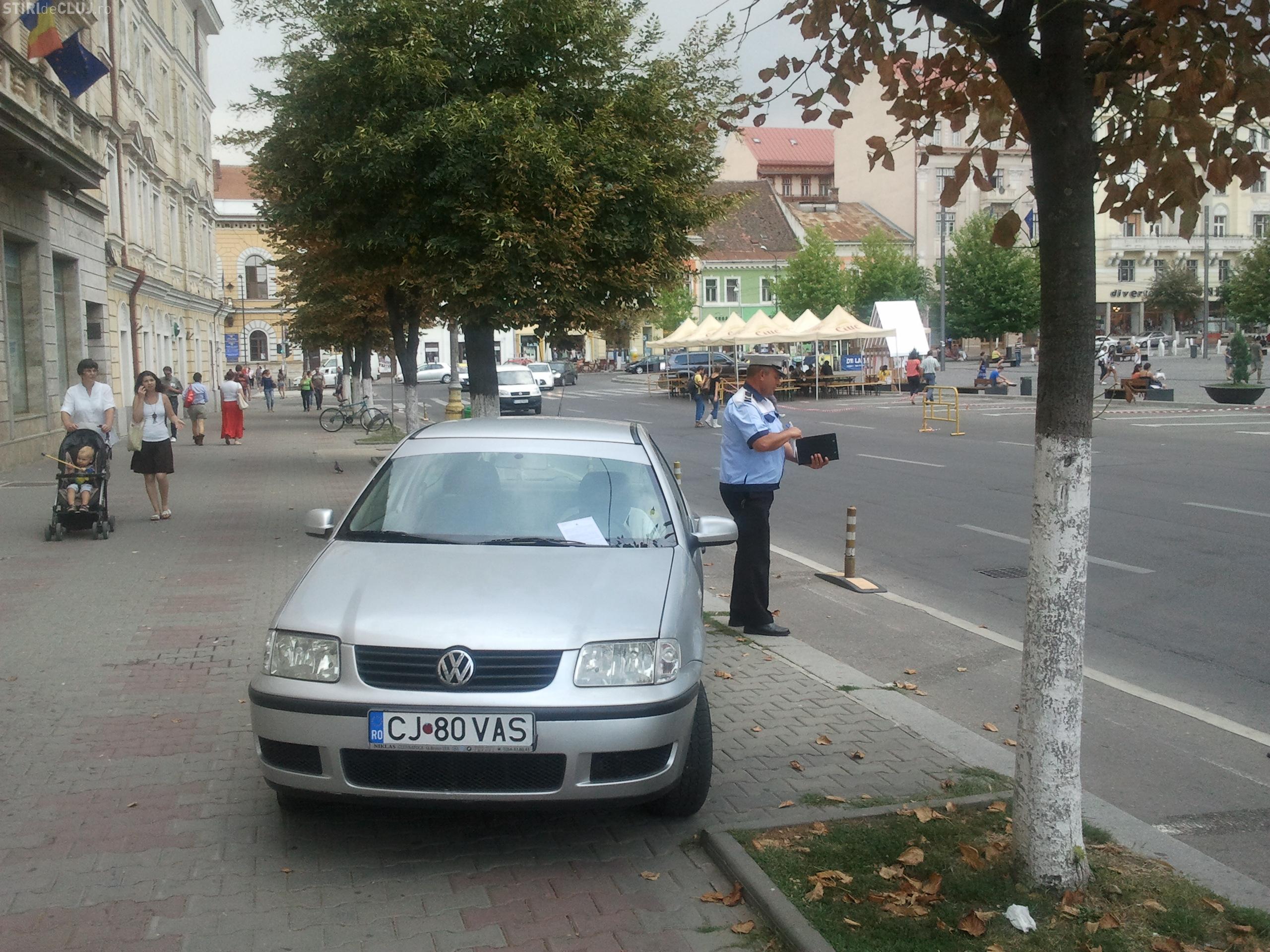 Razie la parcări în centrul Clujului! Vezi ce a pățit un șofer care a exagerat - FOTO