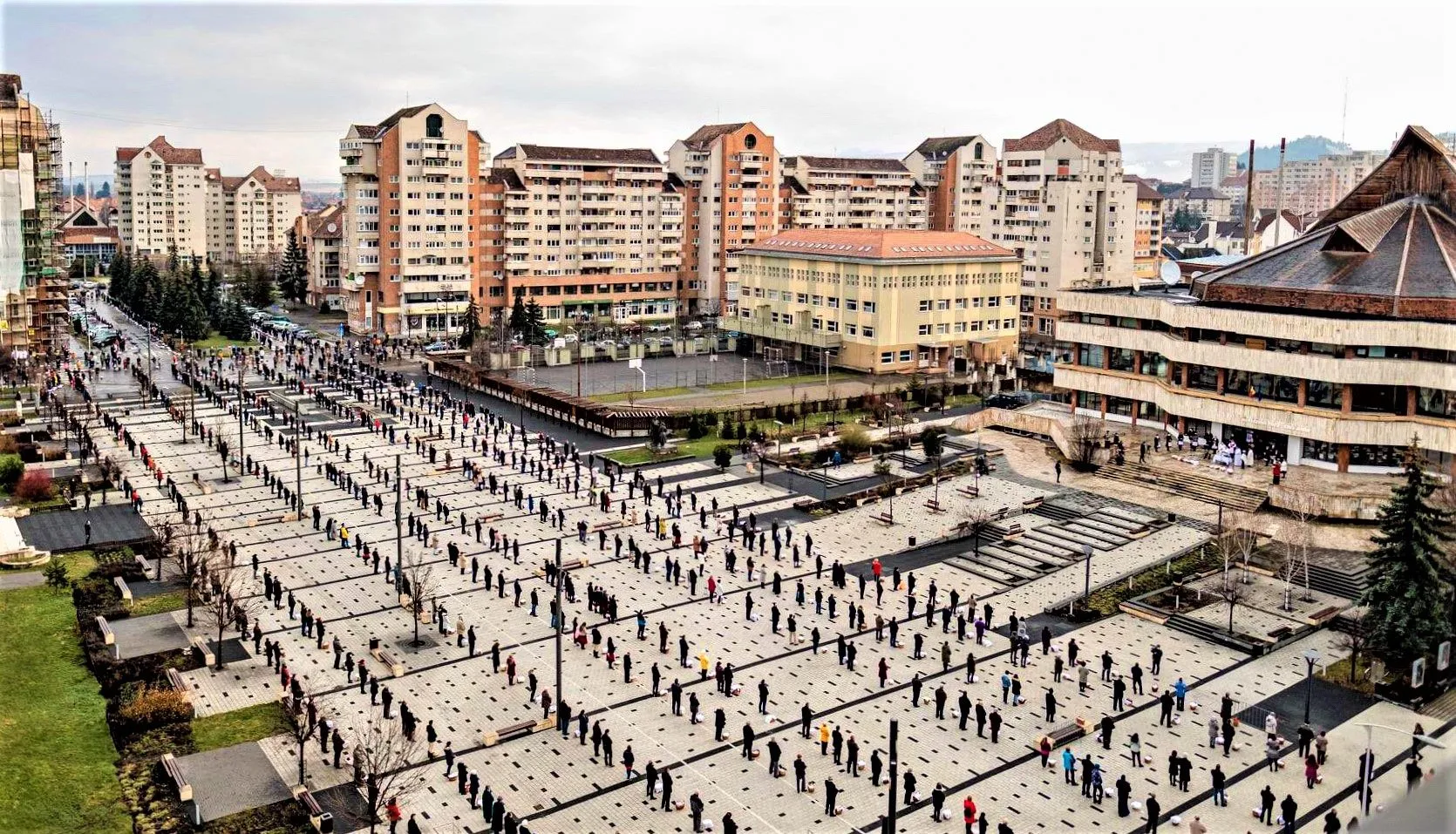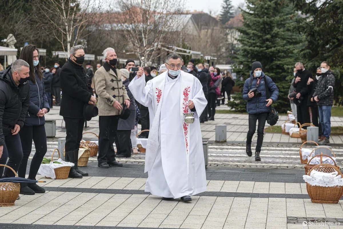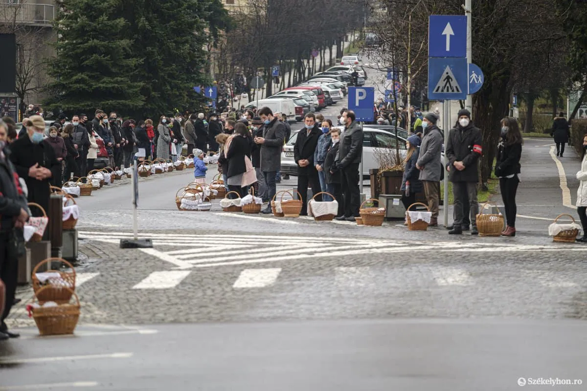 Dacă în alţi ani ceremonialul se desfăşura doar pe platoul din faţa Palatului Administrativ din Miercurea Ciuc, autorităţile au decis, în acest an, să extindă zona, pentru păstrarea distanţei fizice, scrie Agerpres. A fost blocată circulaţia pe două bulevarde din centrul oraşului, iar oamenii, purtând coşuri în care se aflau bucate de Paşti, s-au aşezat în ordine într-o zonă în formă de cruce.