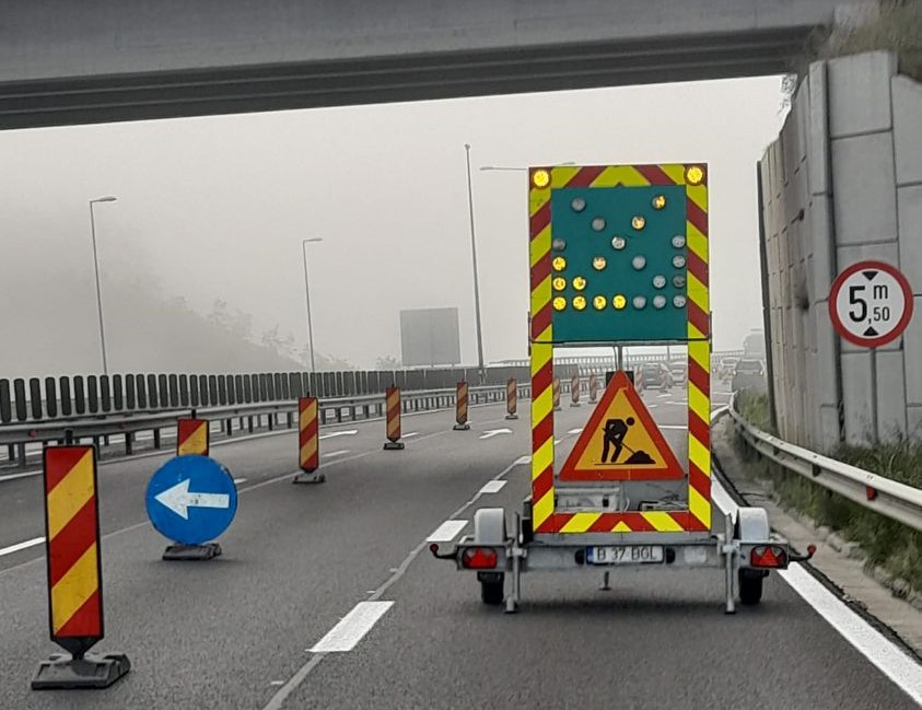 Circulația se va desfășura pe banda II, cu restricție de viteză.
