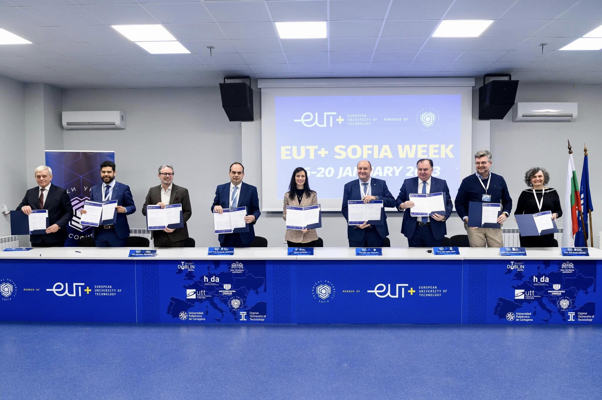 Anul 2023 a debutat pentru Universitatea Europeană de Tehnologie/European University of Technology EUt+, cu întâlnirea găzduită de Universitatea Tehnică din Sofia, unde s-au reunit peste 80 de participanți ai celor opt universități partenere EUt+. Delegația Universității Tehnice din Cluj-Napoca a fost condusă de Rector Prof.dr.ing. Vasile Țopa și din ea au făcut parte Prorector Prof.dr.ing. Daniela Popescu, Director Erasmus+ Prof.dr.ing. Cristina Câmpian, Prof.dr.ing. Marius Purcar și reprezentanți ai pachetelor de lucru implicate în această întâlnire.