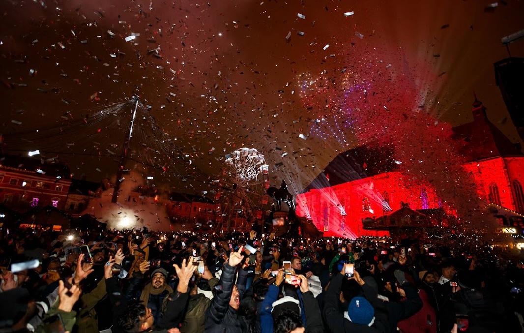 Mii de clujeni au petrecut noaptea dintre ani în Piața Unirii! Show-ul de lumini și drone care a înlocuit anul acesta artificiile a fost spectaculos iar atmosfera a fost întreținută de concerte fabuloase.