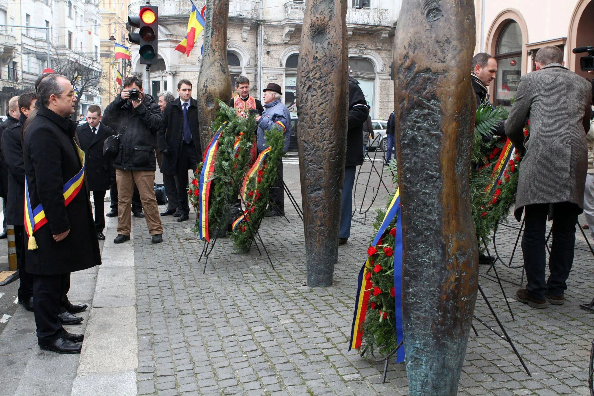 Participanții la marș au ajuns în cele din urmă la Cimitirul Eroilor, unde au depus coroane de flori și a fost oficiată o slujbă de pomenire.
