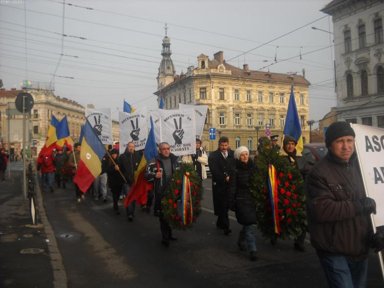La marsul comemorativ au participat aproximativ 50 de persoane, iar din Piata Unirii acestia au marsaluit spre Piata Stefan cel Mare, de unde au urcat pe Calea Turzii la cimitirul eroilor.
