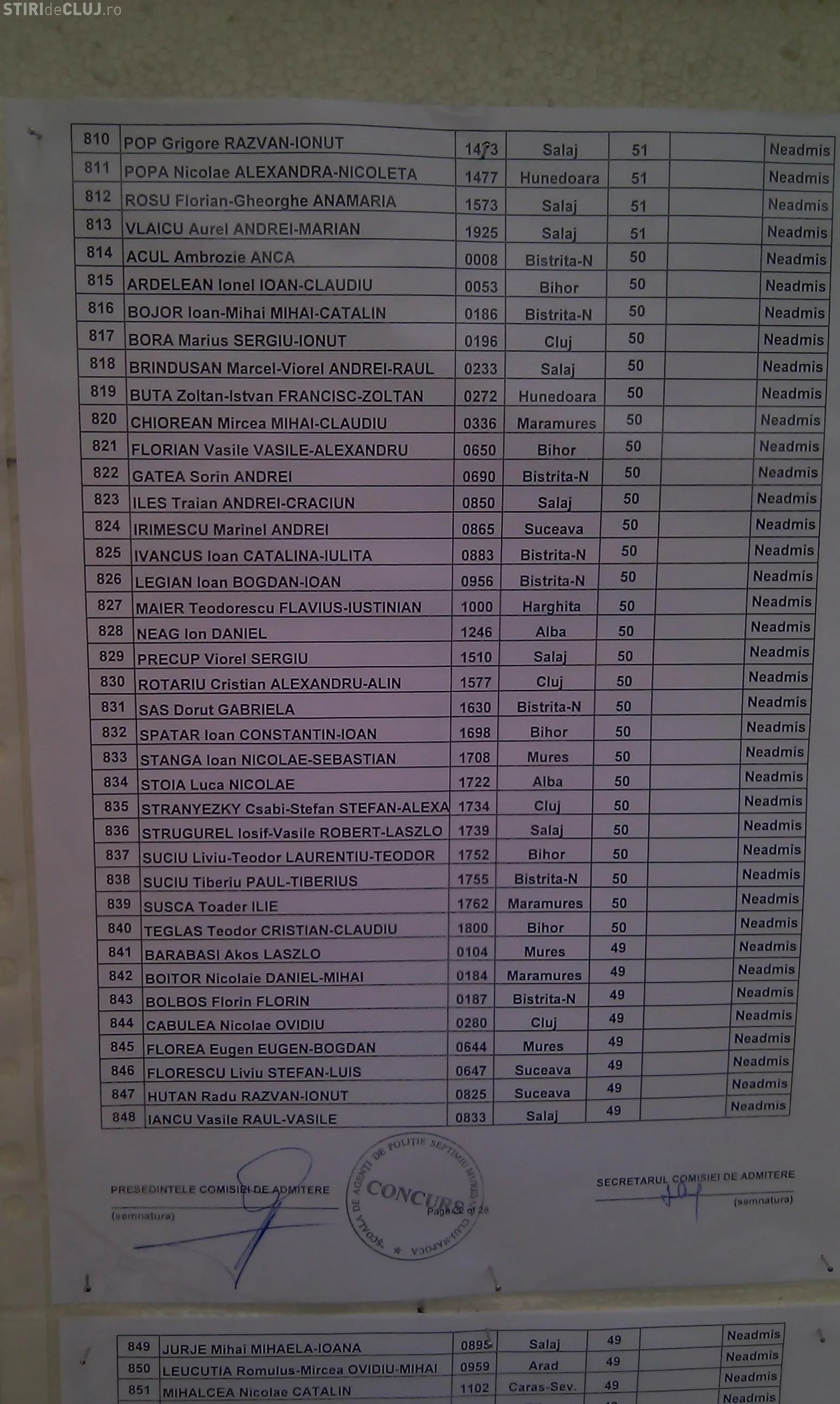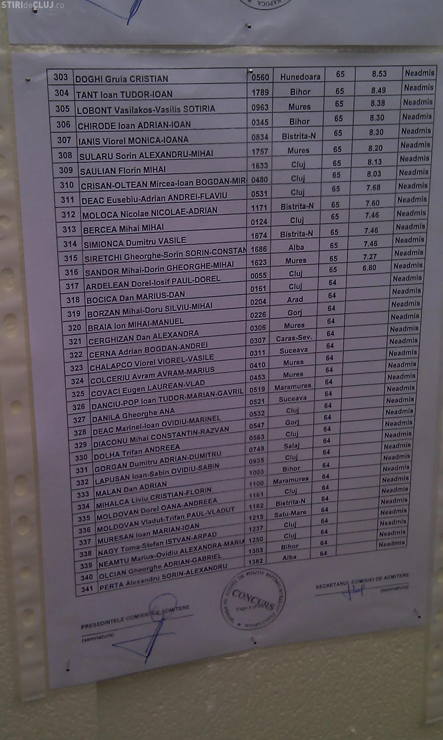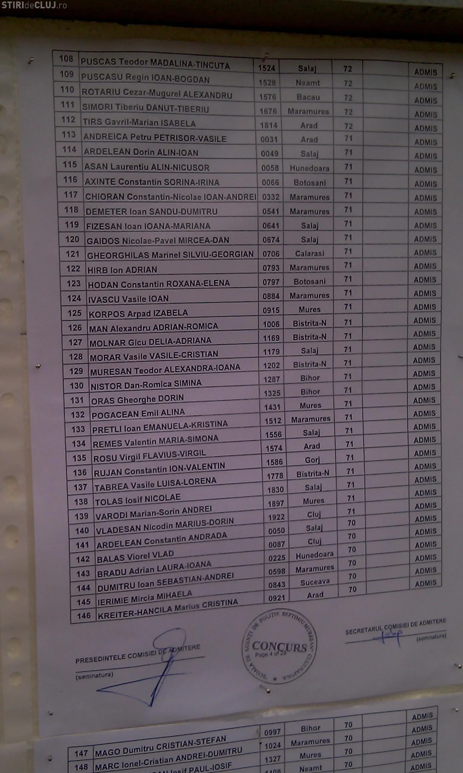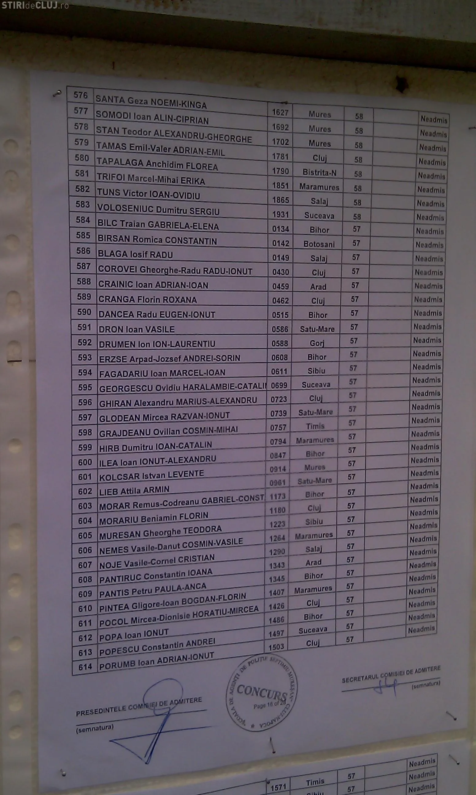 Rezultate admitere Scoala de Agenti de Politie "Septimiu Muresan" Cluj! VEZI AICI daca ai fost admis!
