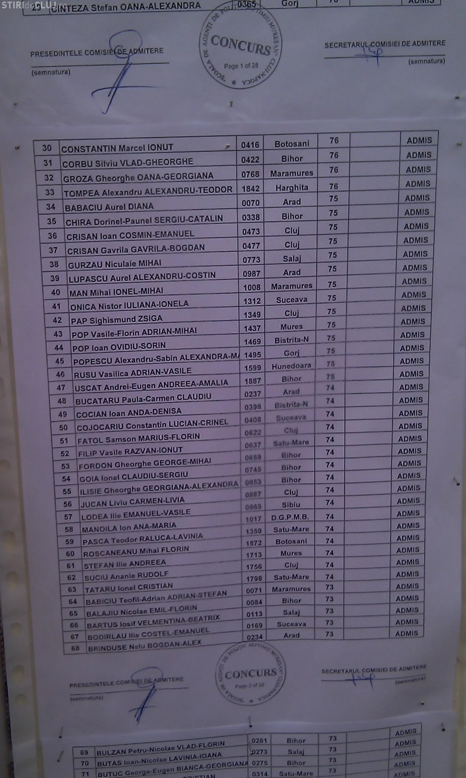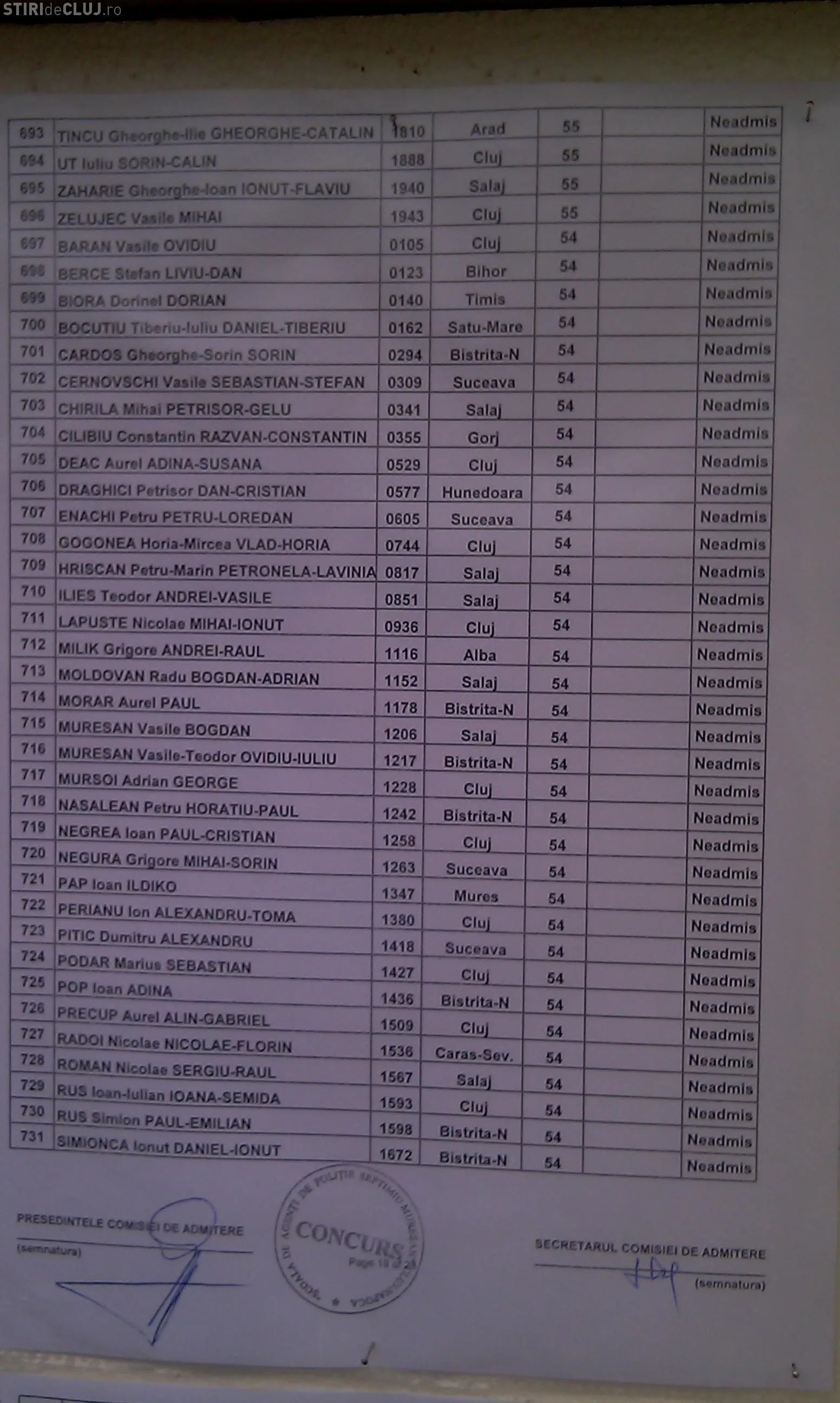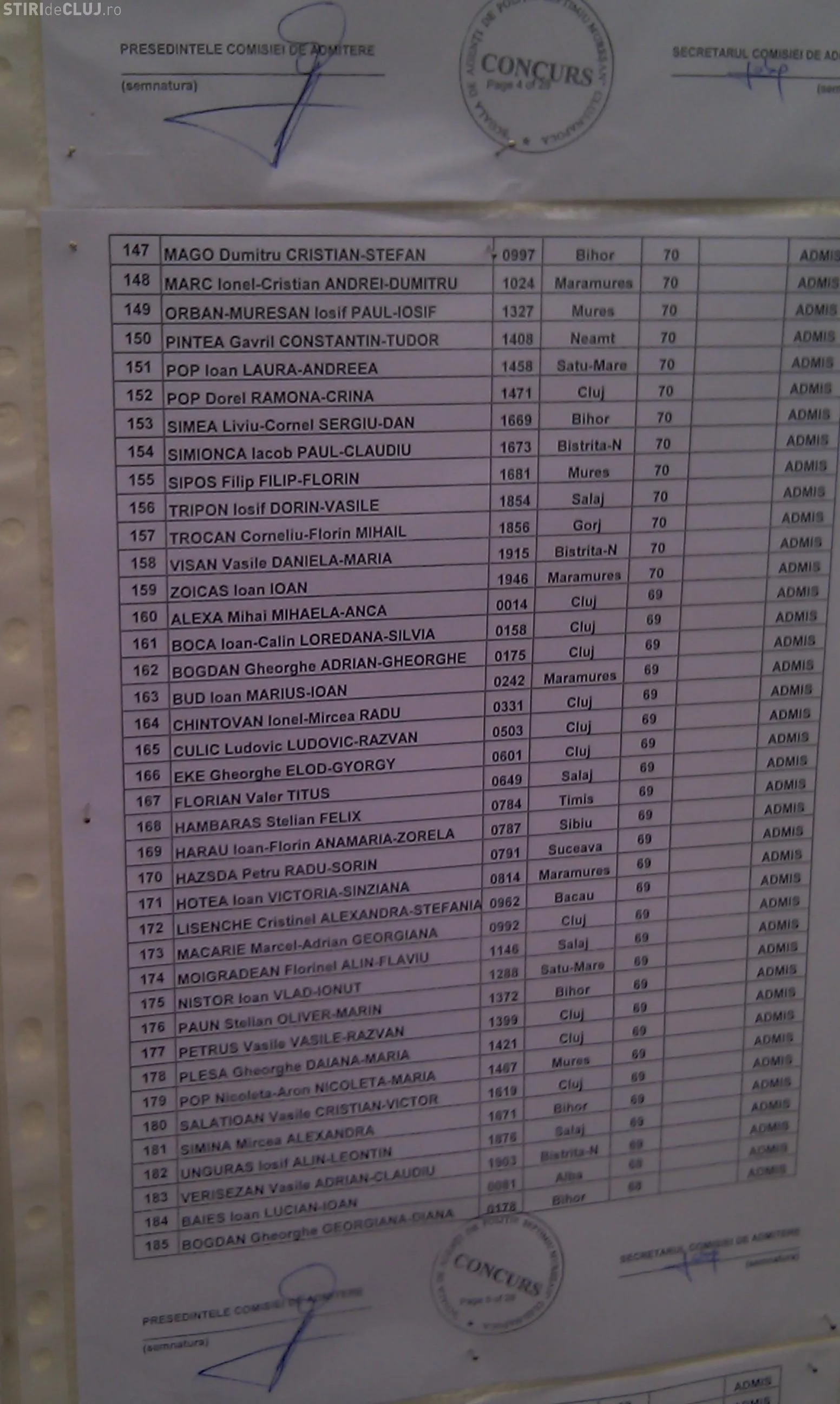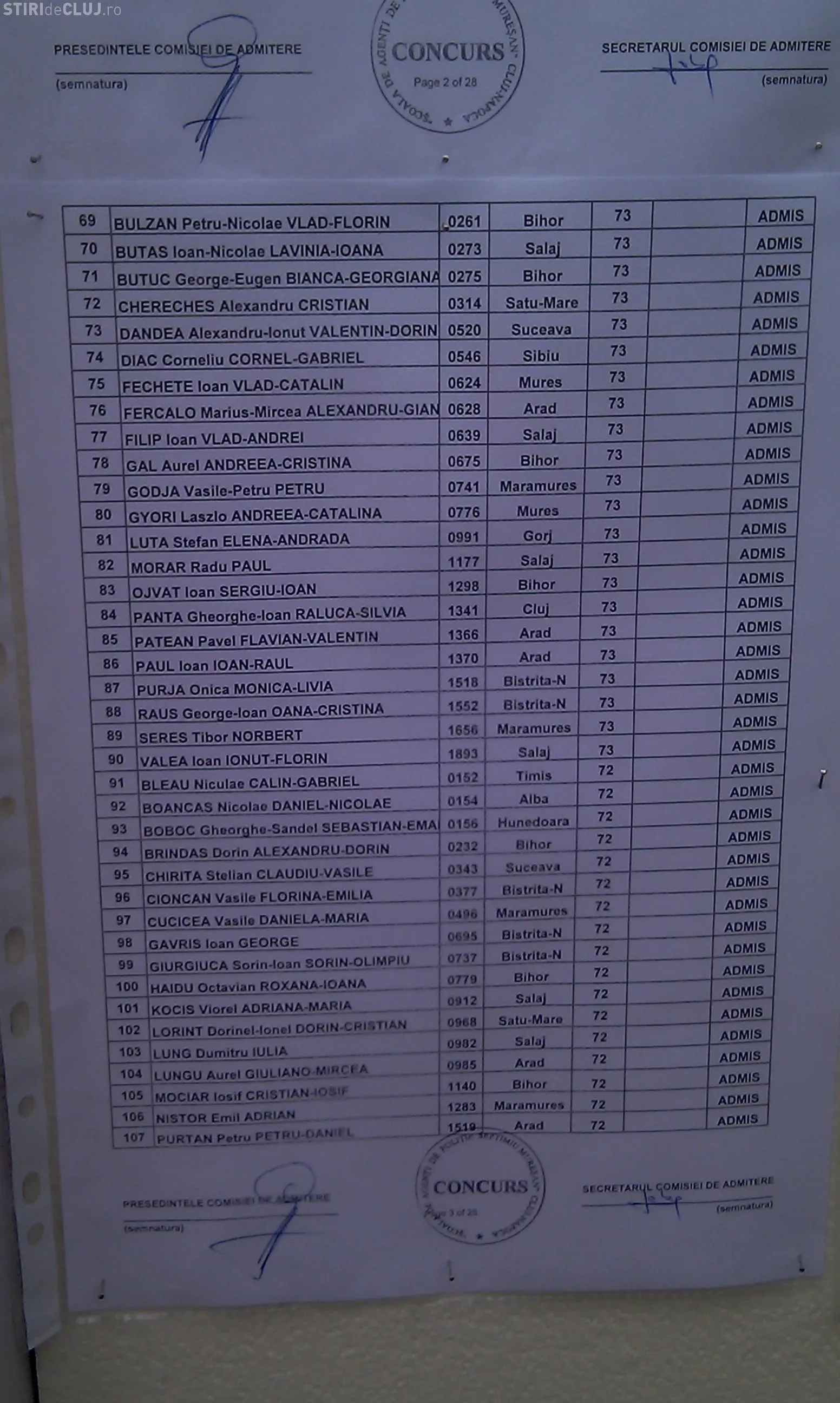 Rezultate admitere Scoala de Agenti de Politie "Septimiu Muresan" Cluj! VEZI AICI daca ai fost admis!