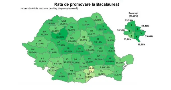 Județul Cluj are cea mai mare rată de promovare, de 84,1% la Bacalaureat 2021. La polul opus, cu cea mai mică rată de promovabilitate se află județul Ilfov, cu 41,6%.