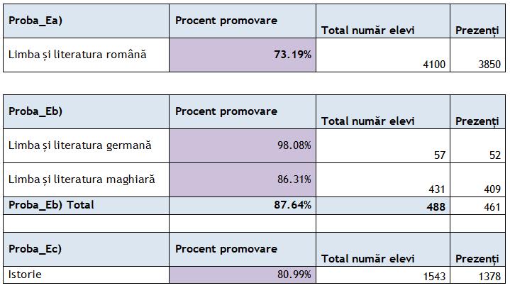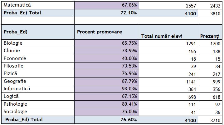 Rata de promovare a simulării examenului național de Bacalaureat în județul Cluj, în cadrul probelor scrise, pe discipline, este următoarea: