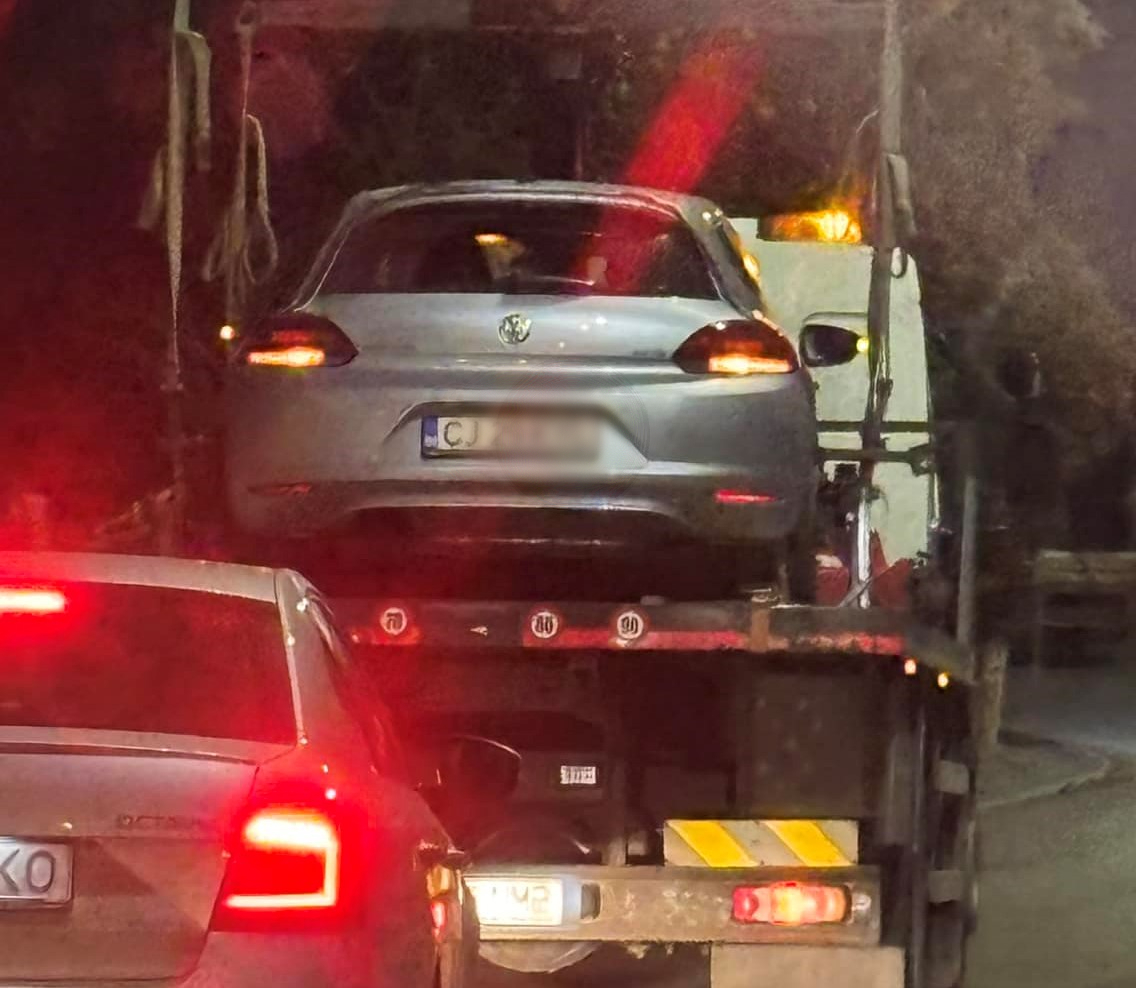 Un participant în trafic a postat pe rețelele sociale o fotografie în care un echipaj de ridicări auto transporta un autoturism către centrul special de depozitare din Someșeni.