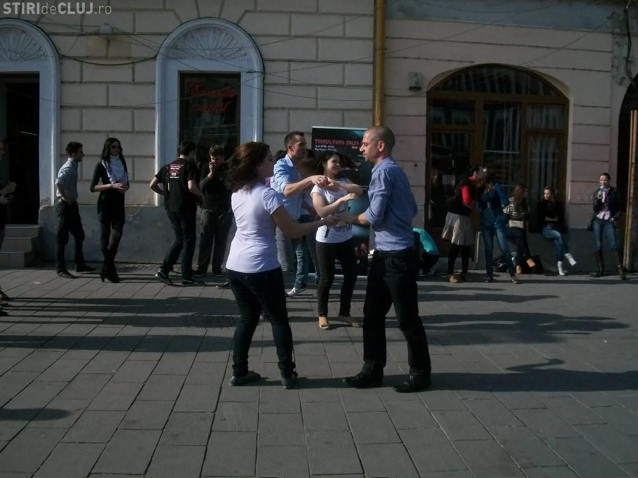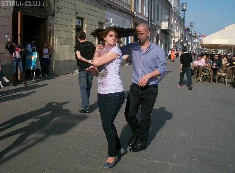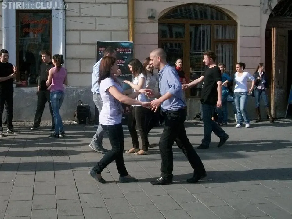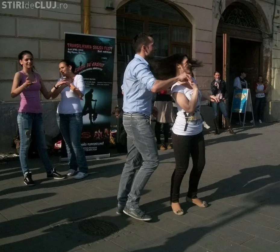 Mai multi iubitori ai ritmurilor salsa au impresionat trecatorii pe Bulevardul Eroilor din Cluj-Napoca.