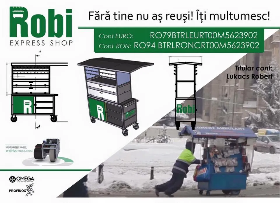 Banii care vor fi adunați vor fi folosiți pentru a-i cumpăra lui Robi o nouă gheretă din care să își vândă produsele.