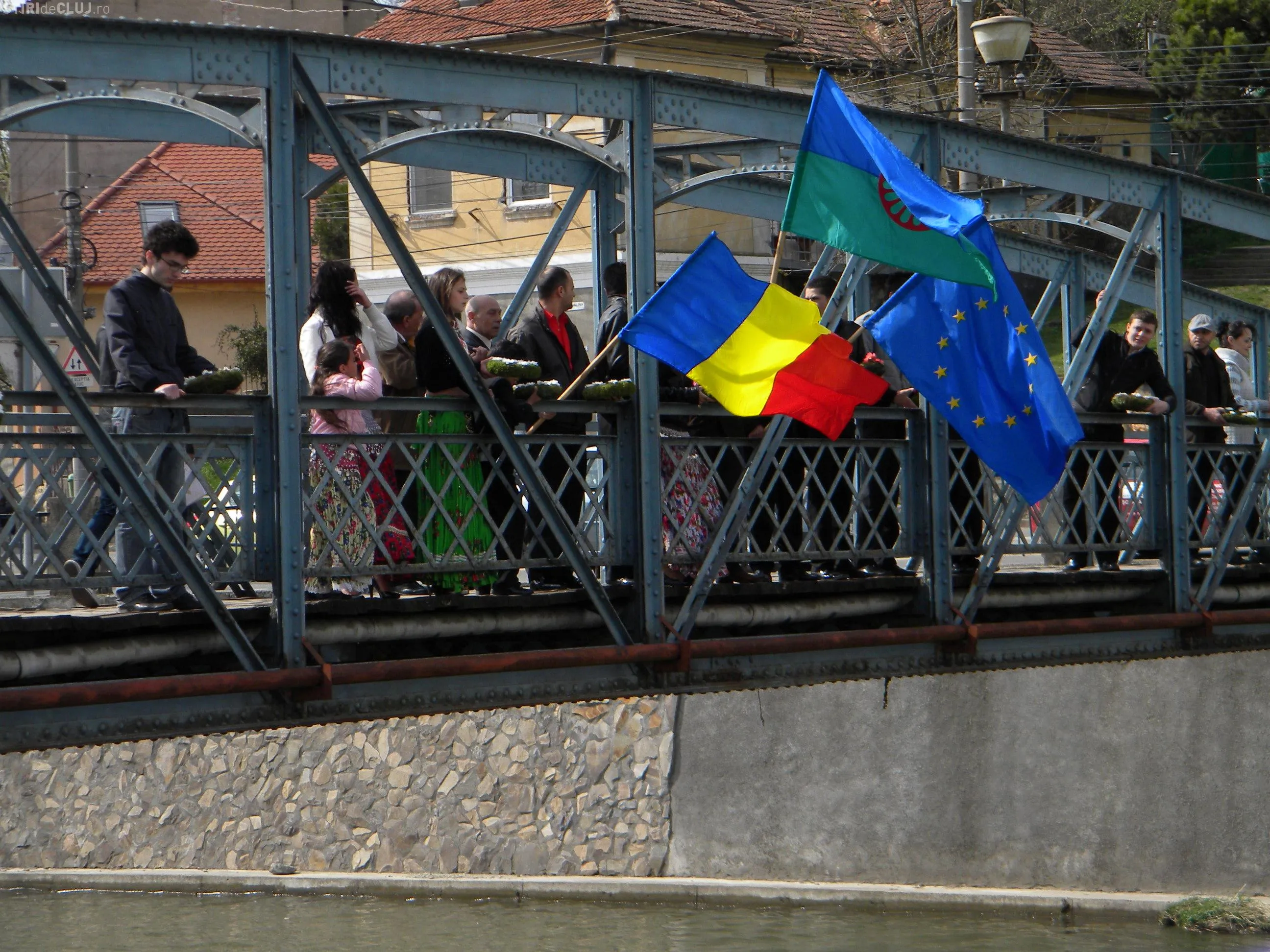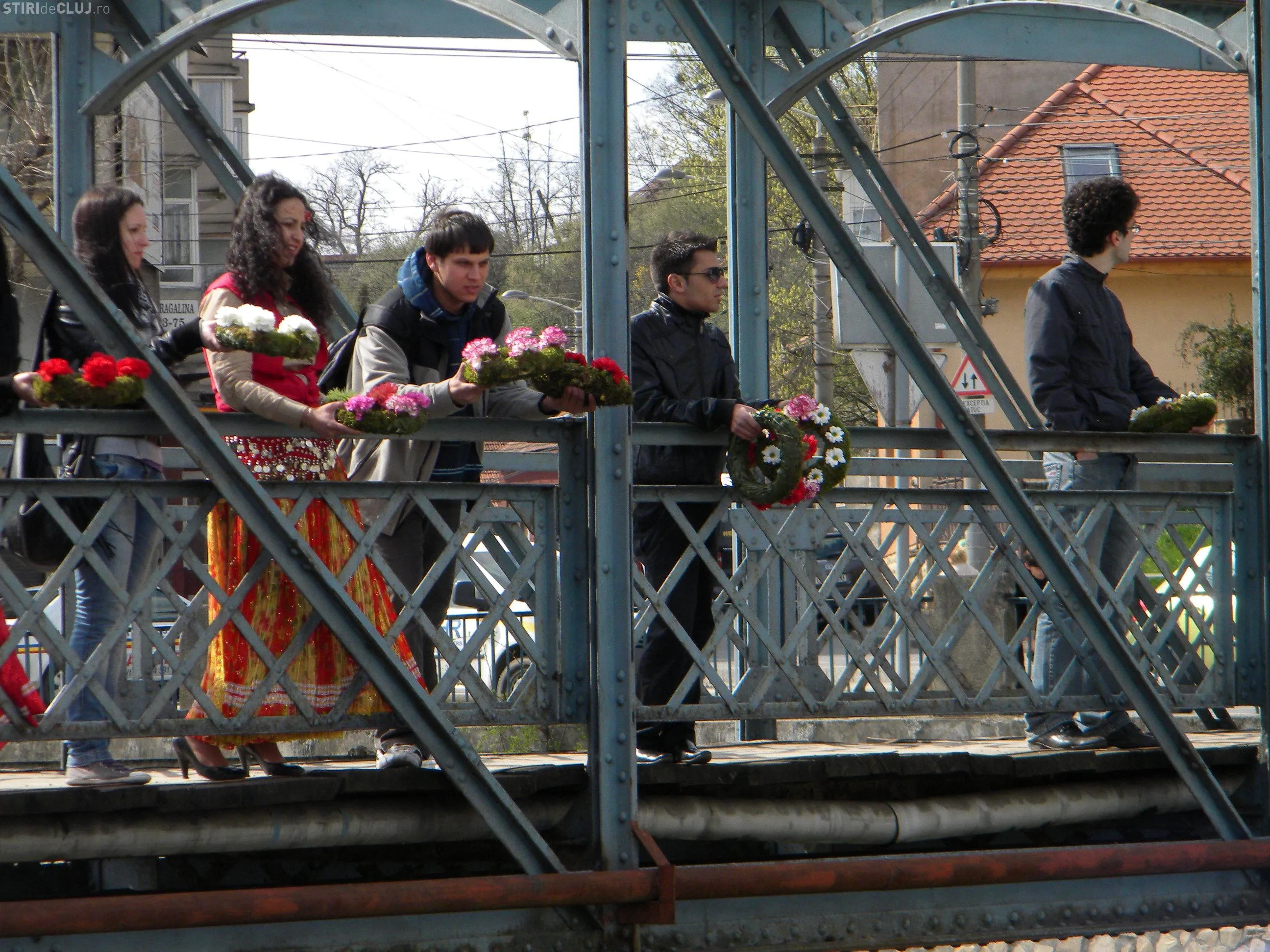 Romii din Cluj Napoca au aruncat coroane de flori in Somes in memoria tiganilor deportati in Transnistria.