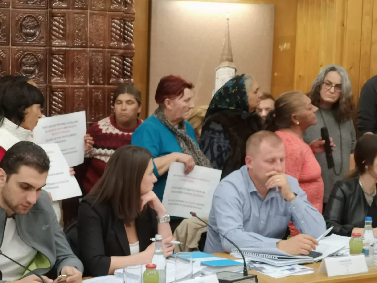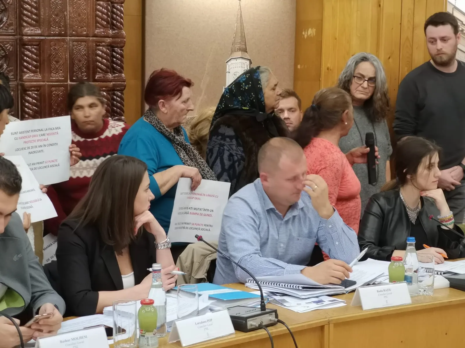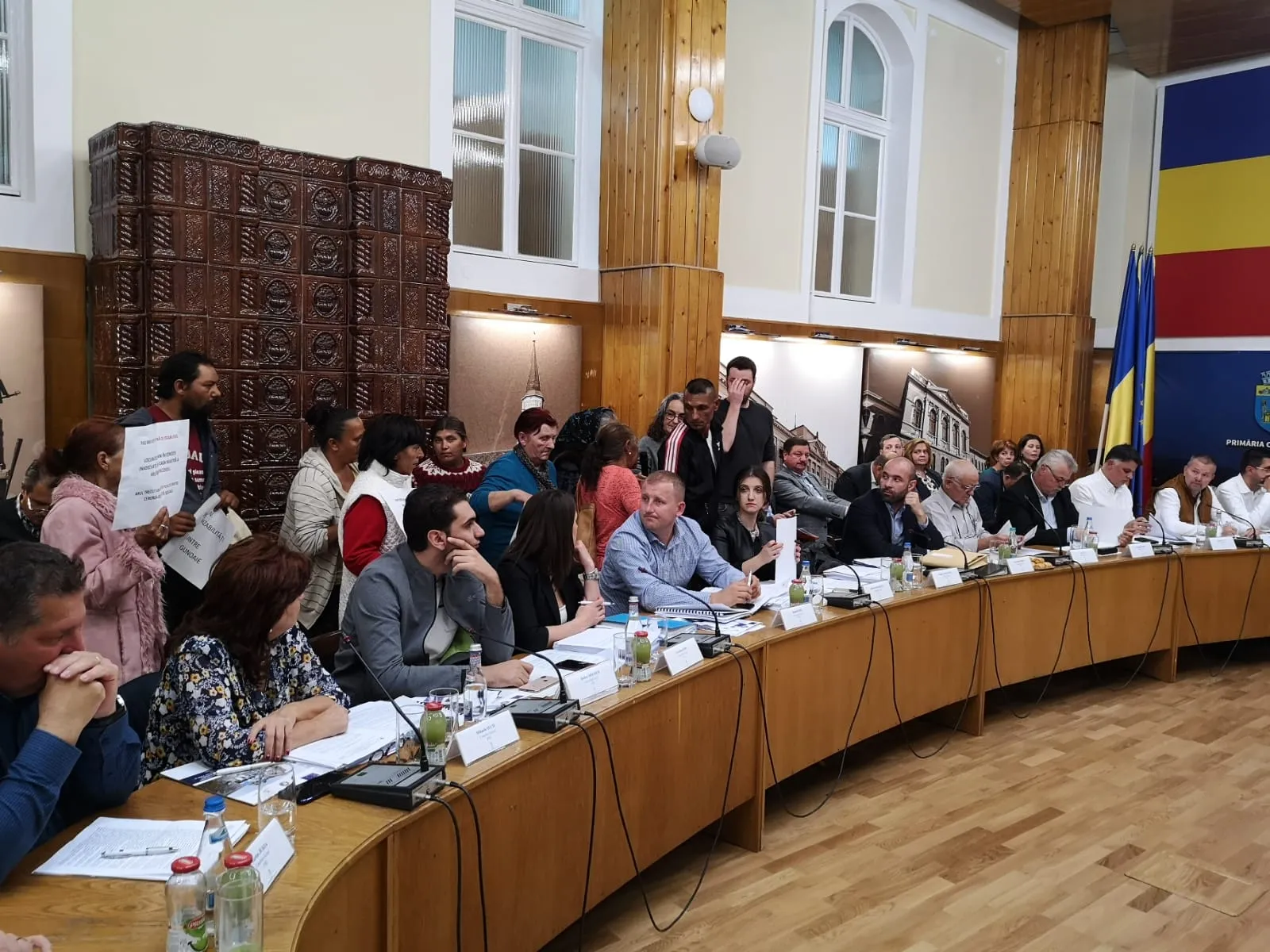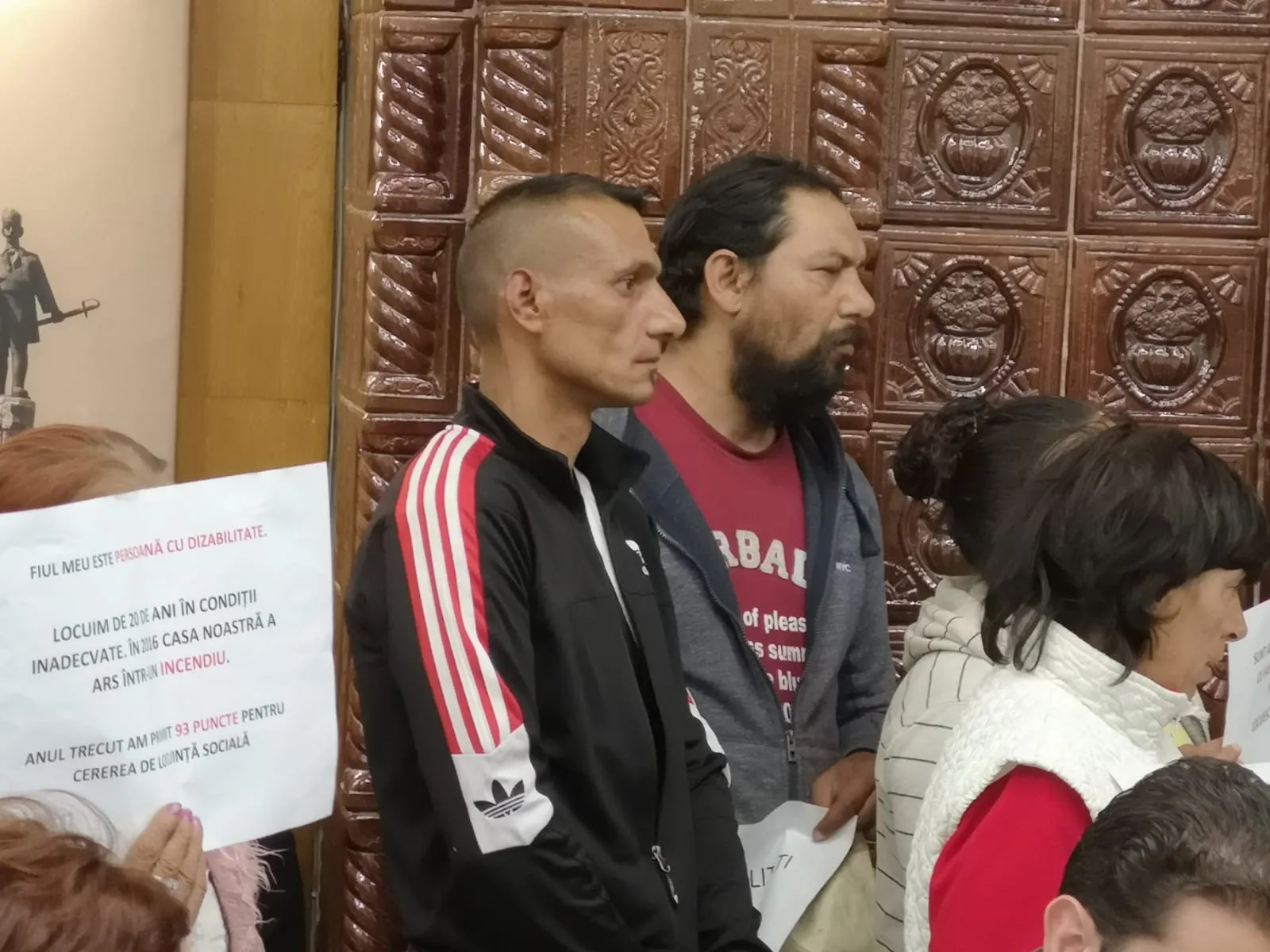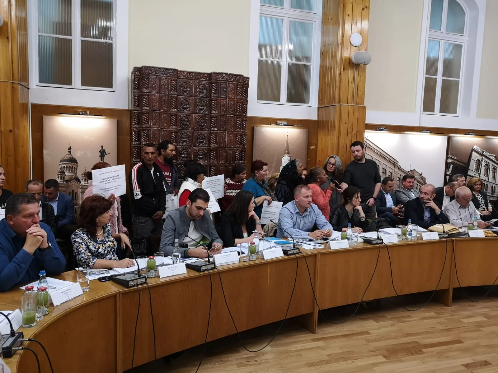 O parte dintre reprezentanții romilor de la Pata Rât s-au prezentat la ședința Consiliului Local Cluj-Napoca de miercuri, 16 octombrie, pentru a cere locuințe.