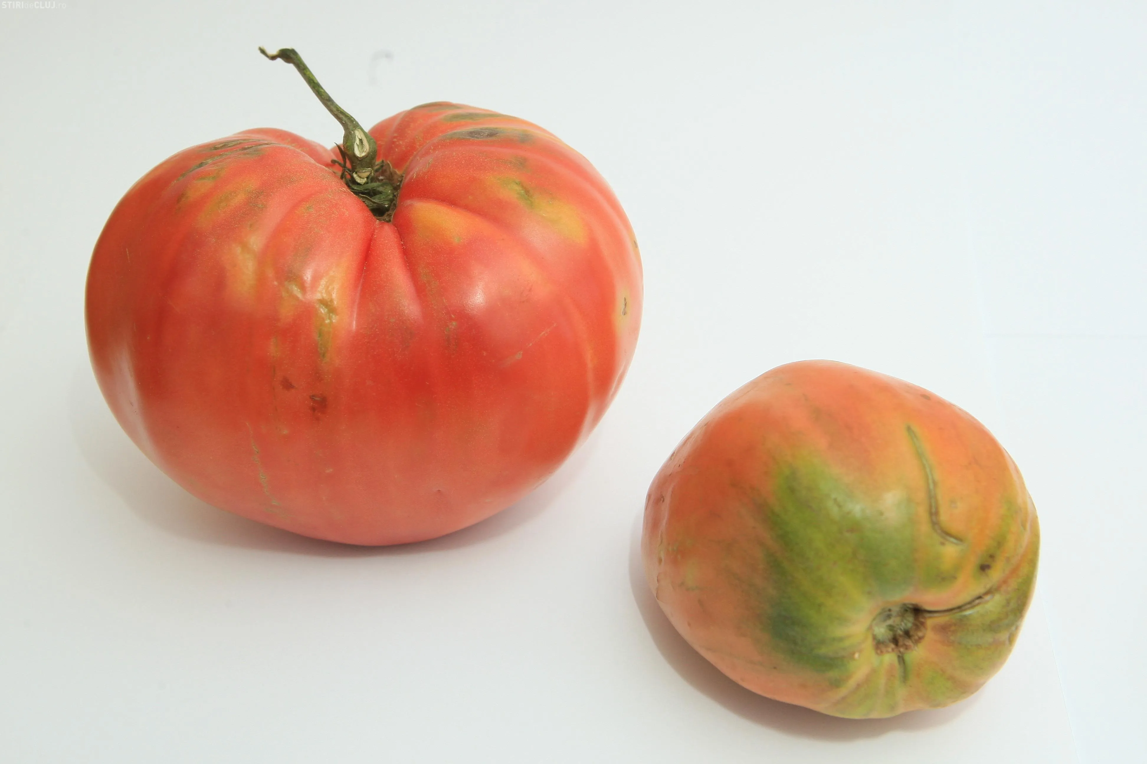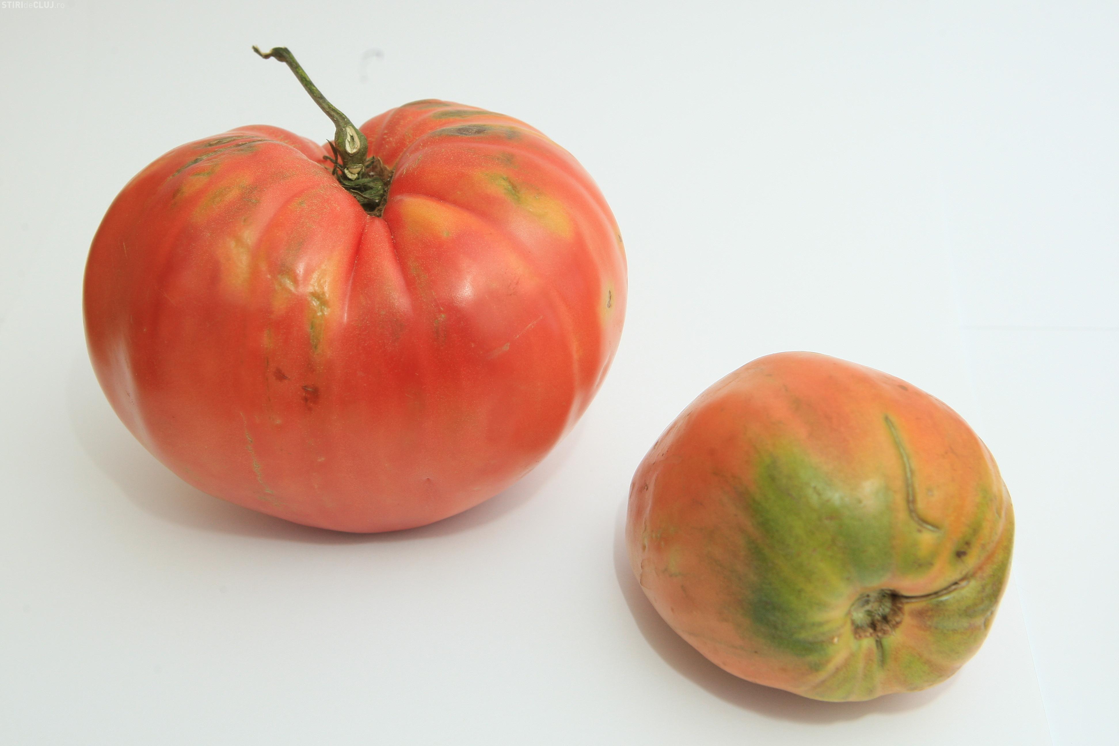 Rosia din soiul cunoscut in limbaj popular ca "Inima de bou" culeasa de la USAMV Cluj-Napoca cantareste 758 de grame, o greutate mult mai mare fata de valorile obisnuite ale acestui soi, care se situeaza in jur de 300-350 de grame.